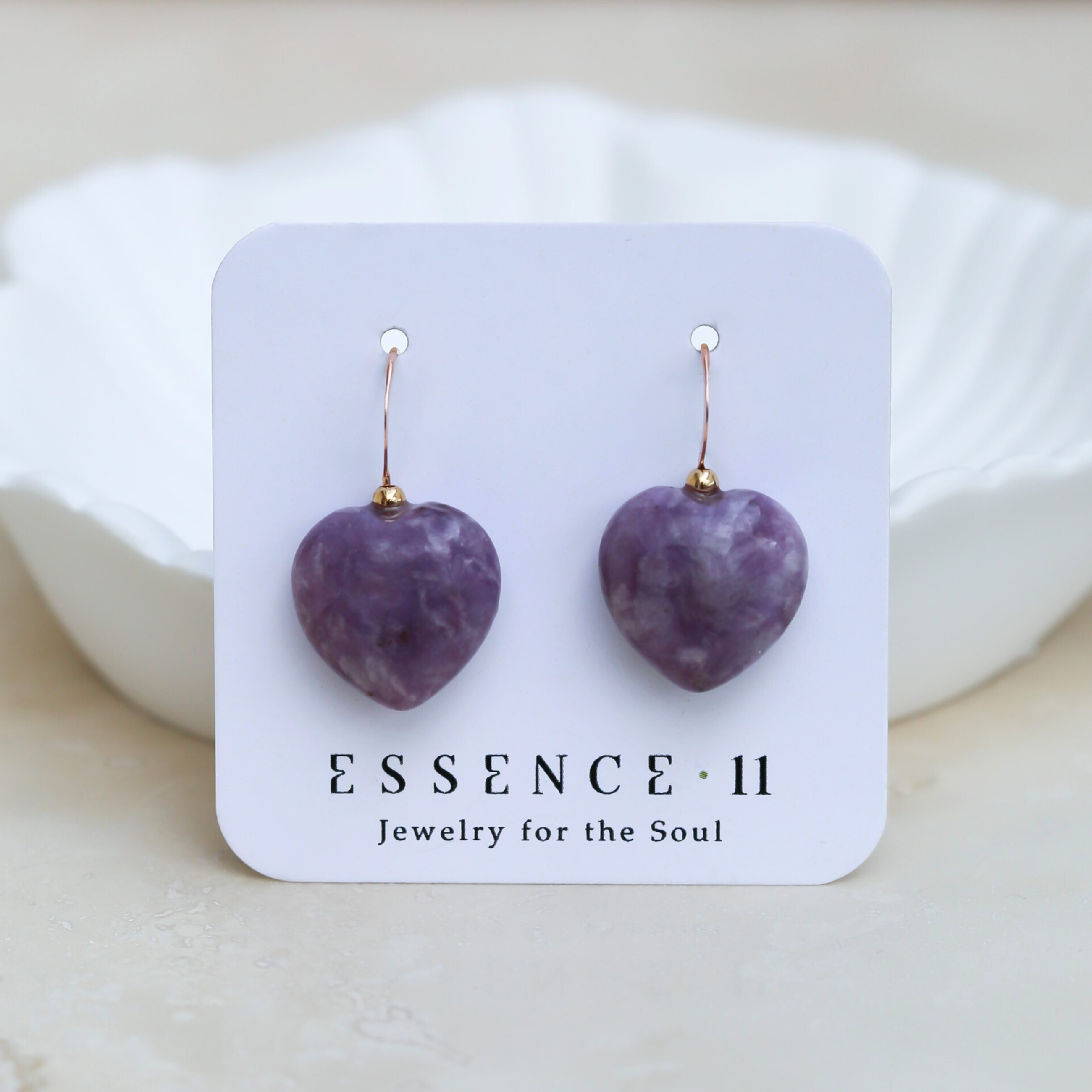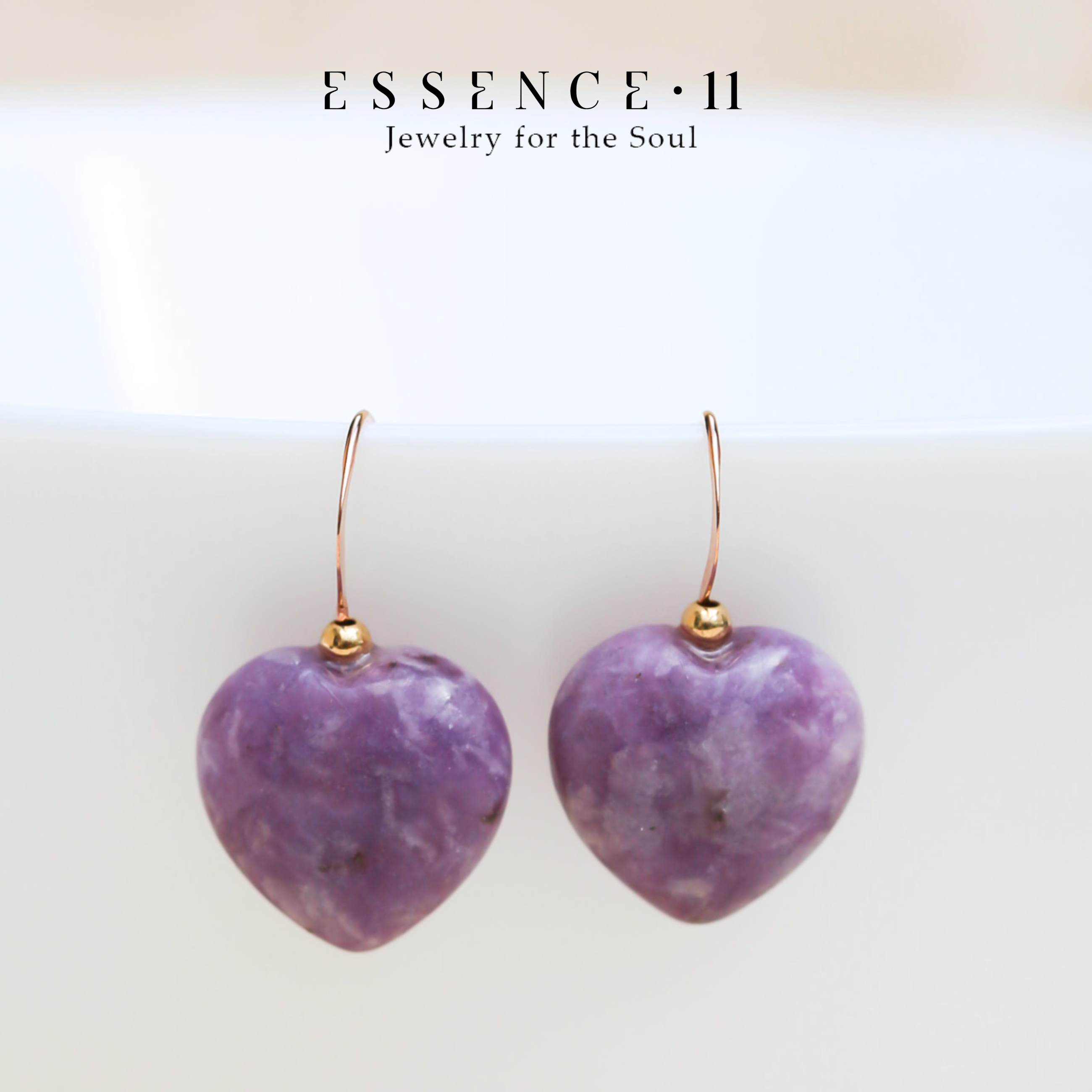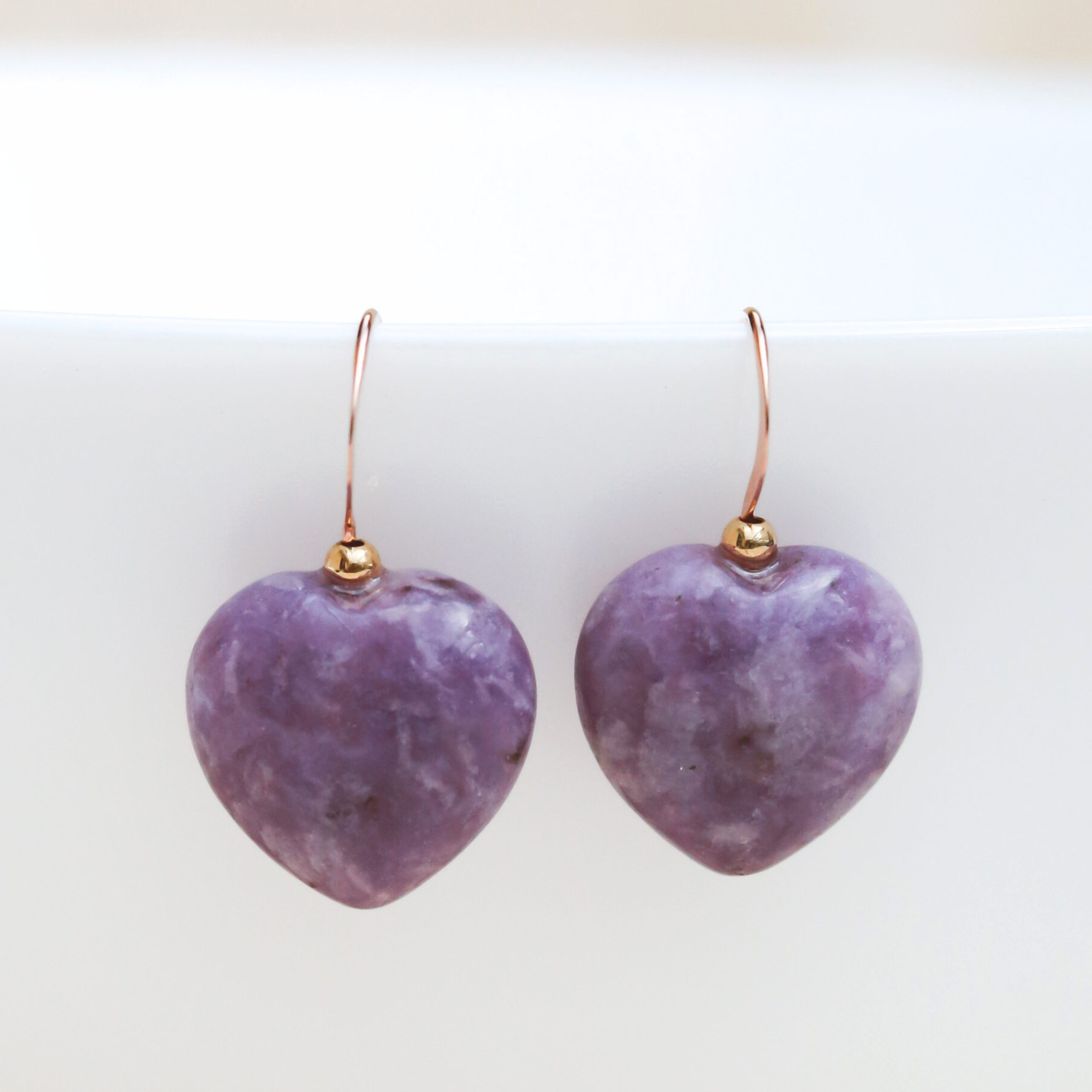 Lepidolit fülbevaló, arany bevonat – Hearts Lavender