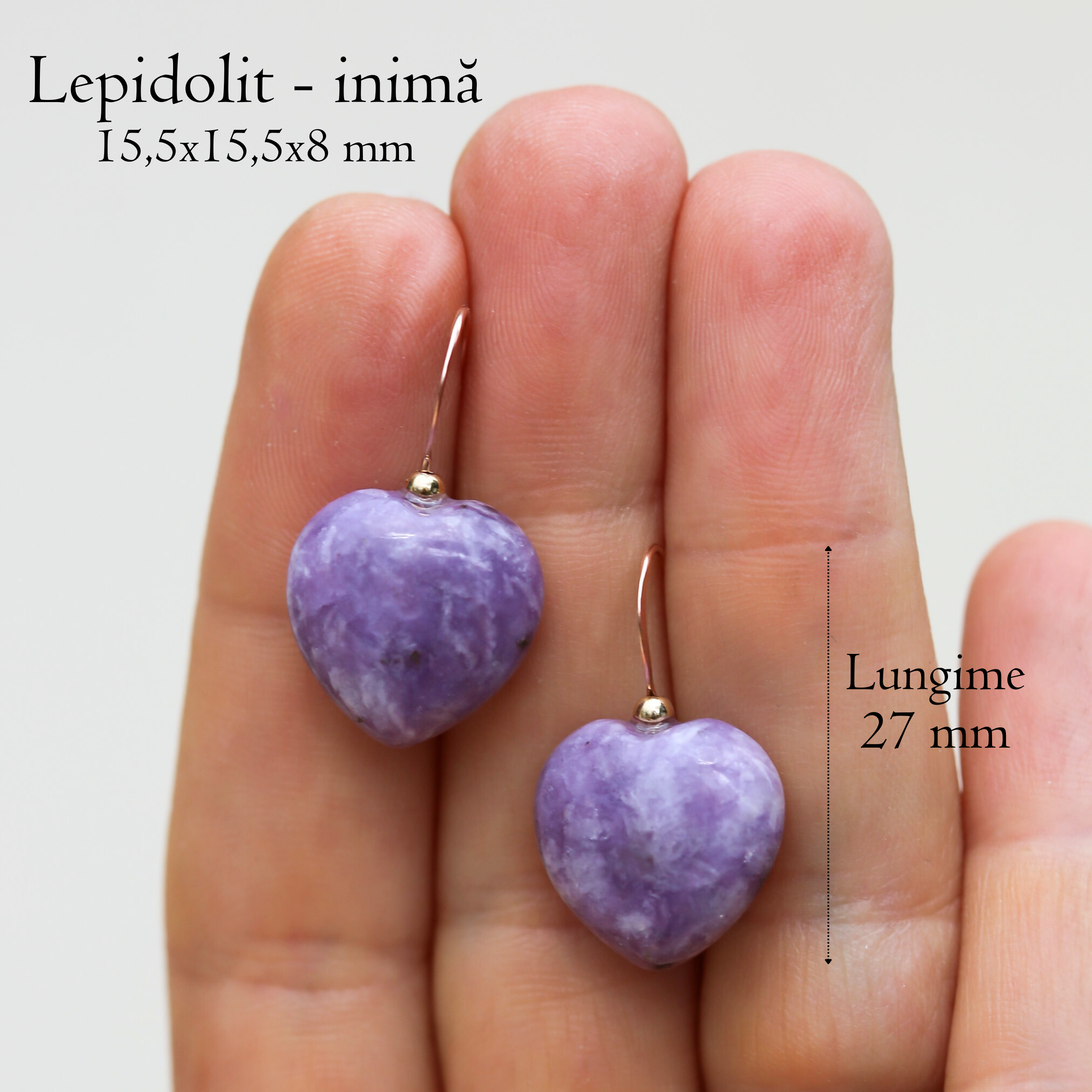 Descriere - Lepidolit fülbevaló, arany bevonat – Hearts Lavender