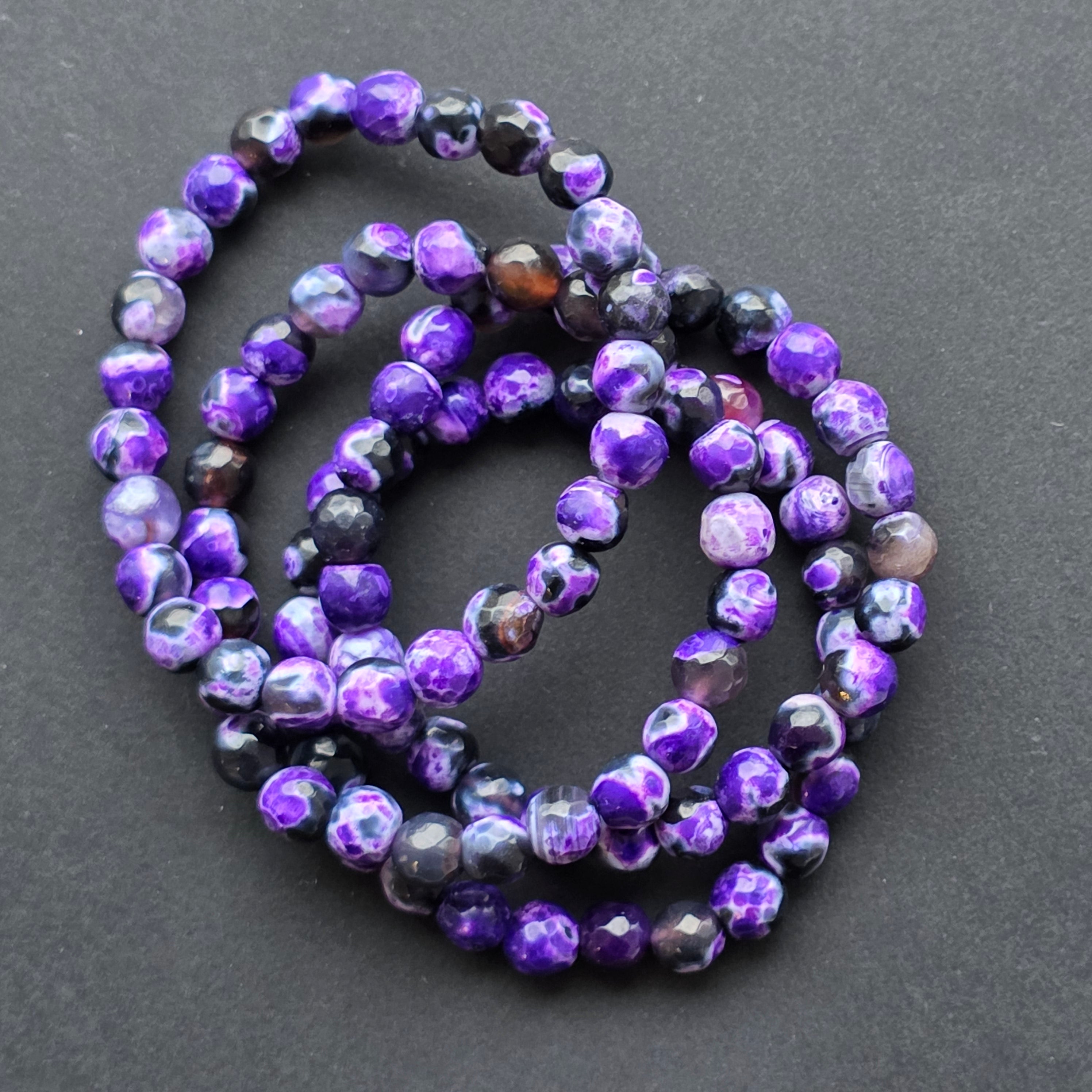 • Kő: lila achát (színes tűachát) – 6 mm-es, gömb alakú, csiszolt gyöngyök