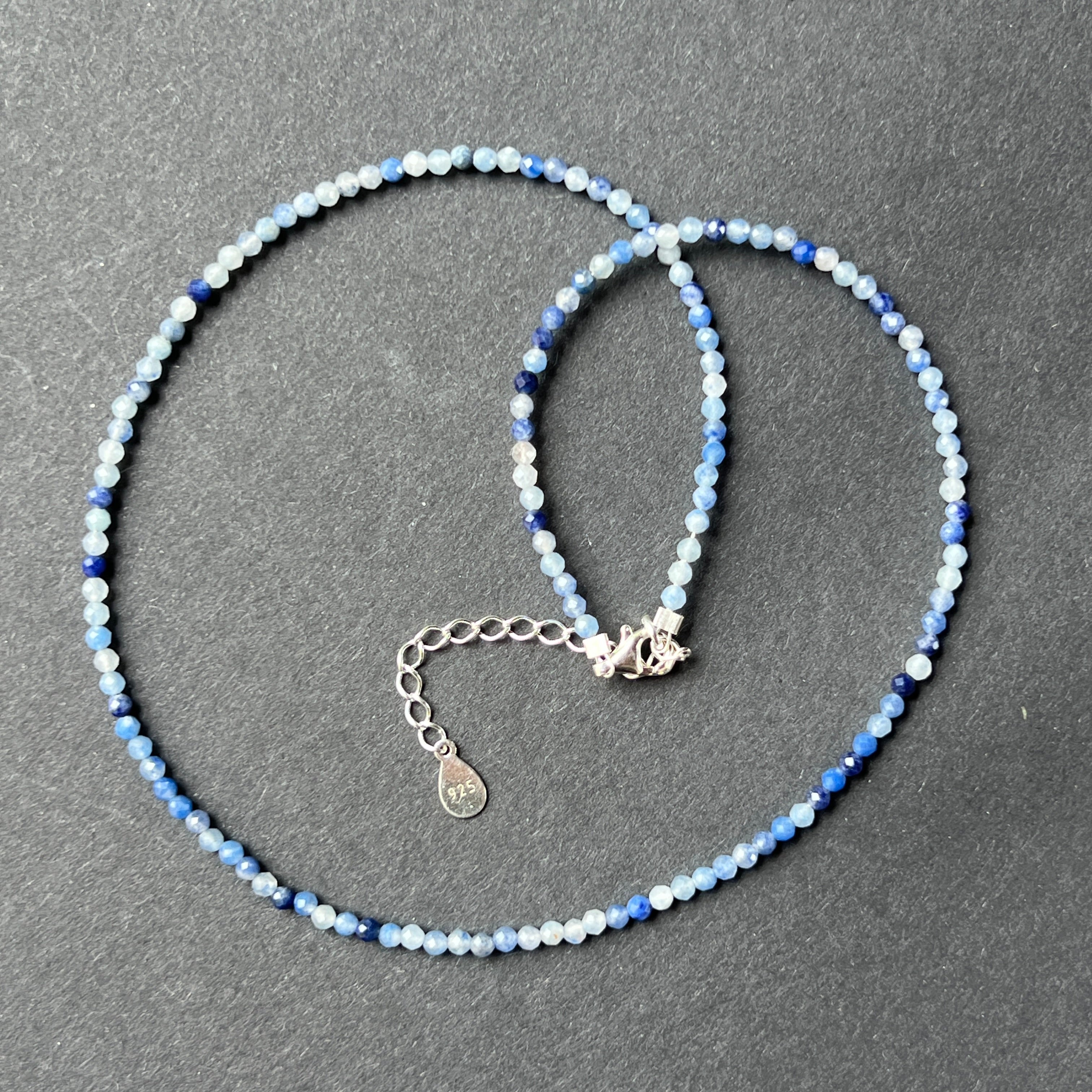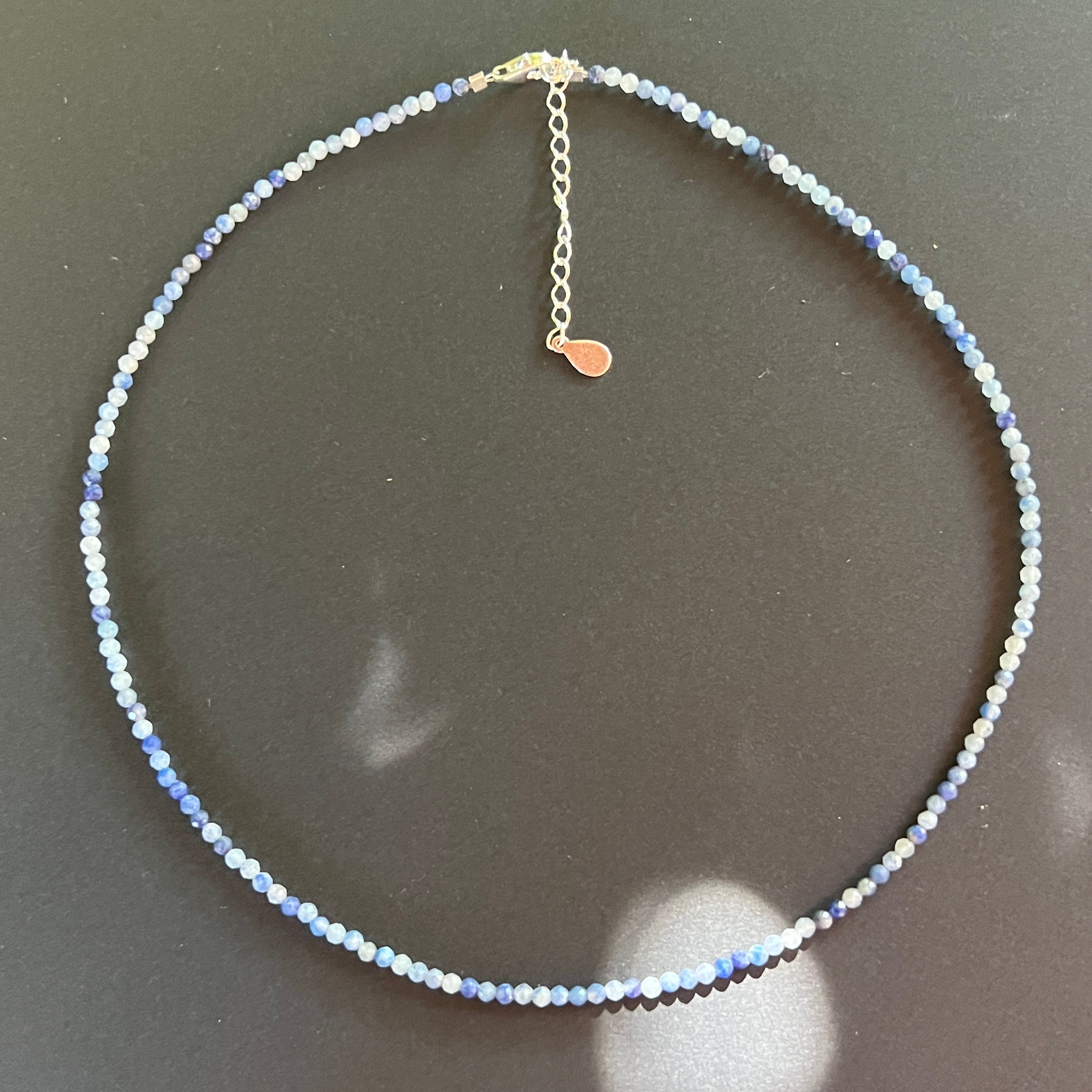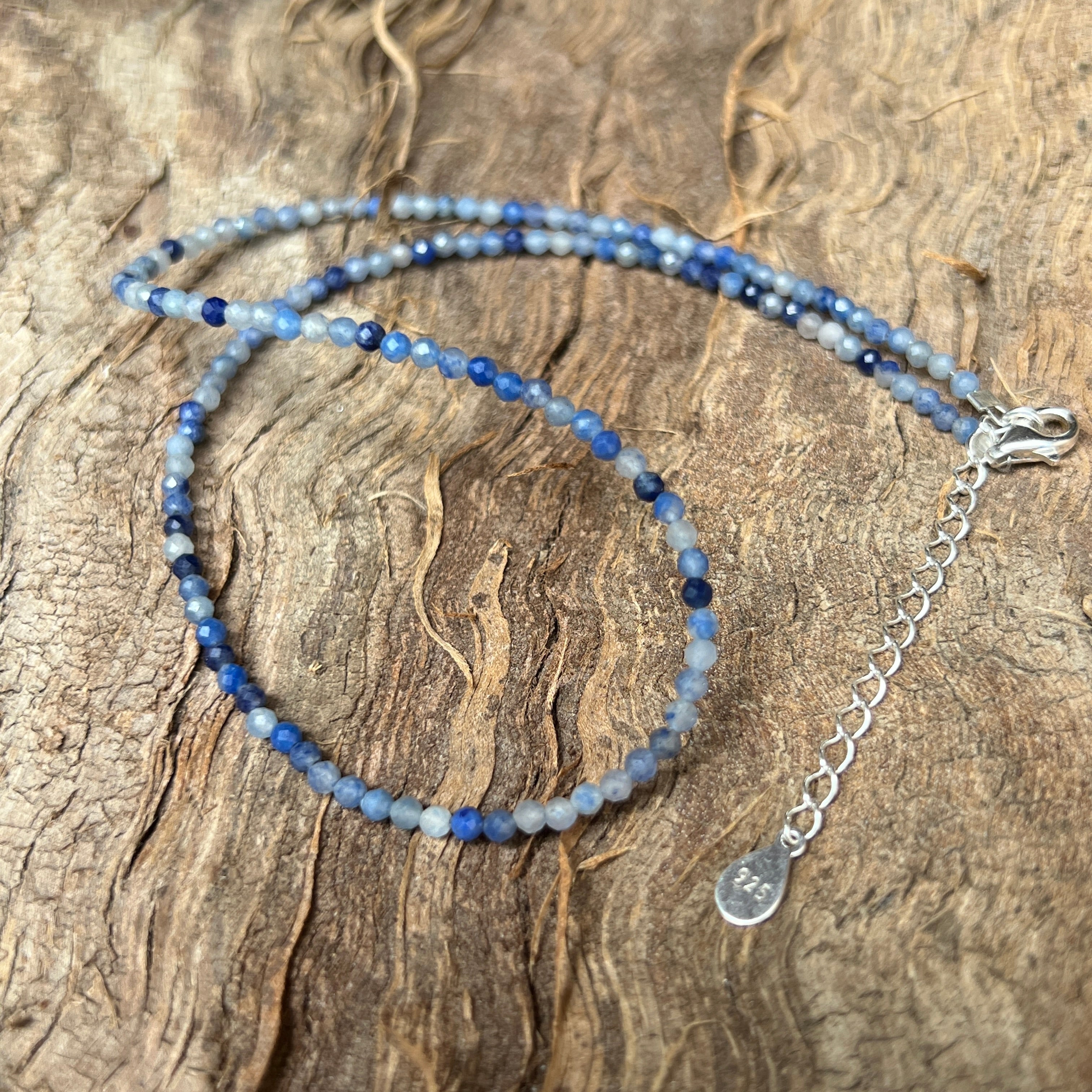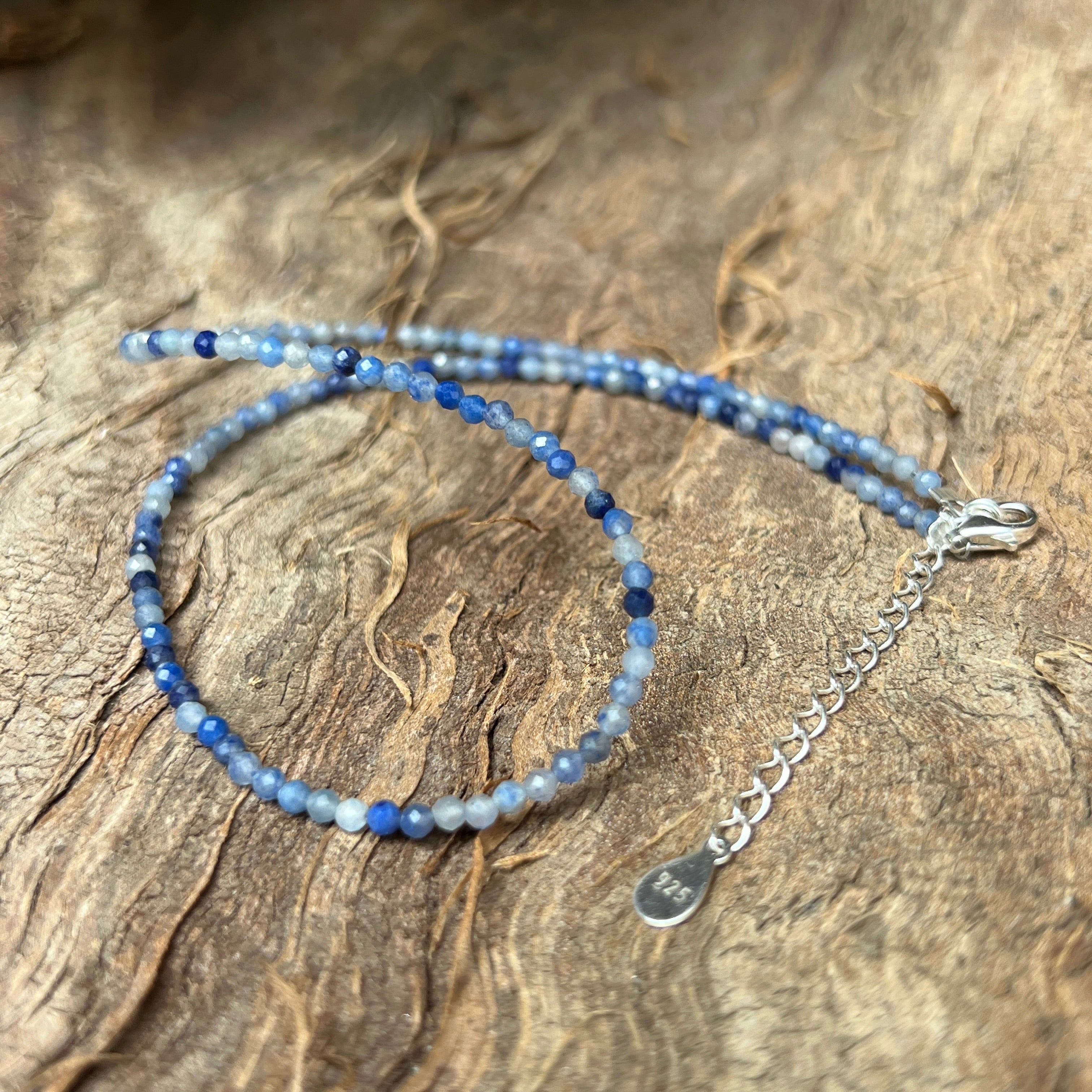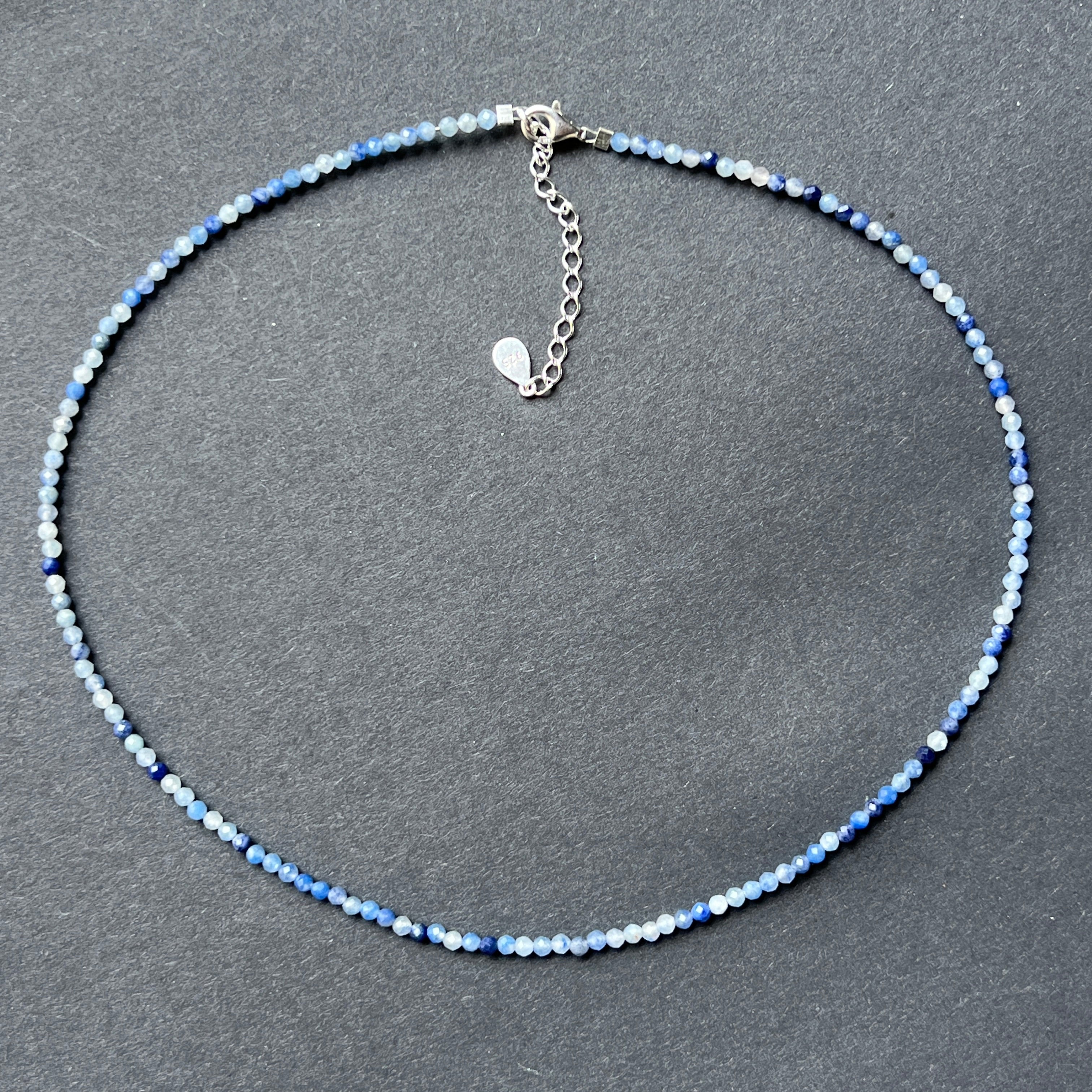 Egy nyaklánc, mint a finom fény, amely a mélységben születik – elegáns, visszafogott és mágneses. A 2 mm-es csiszolt kék aventurin gyöngyök felkapják és visszaverik a fényt apró szikrákban, mint egy derült éjszaka, tele halkan sugárzó ígéretekkel.