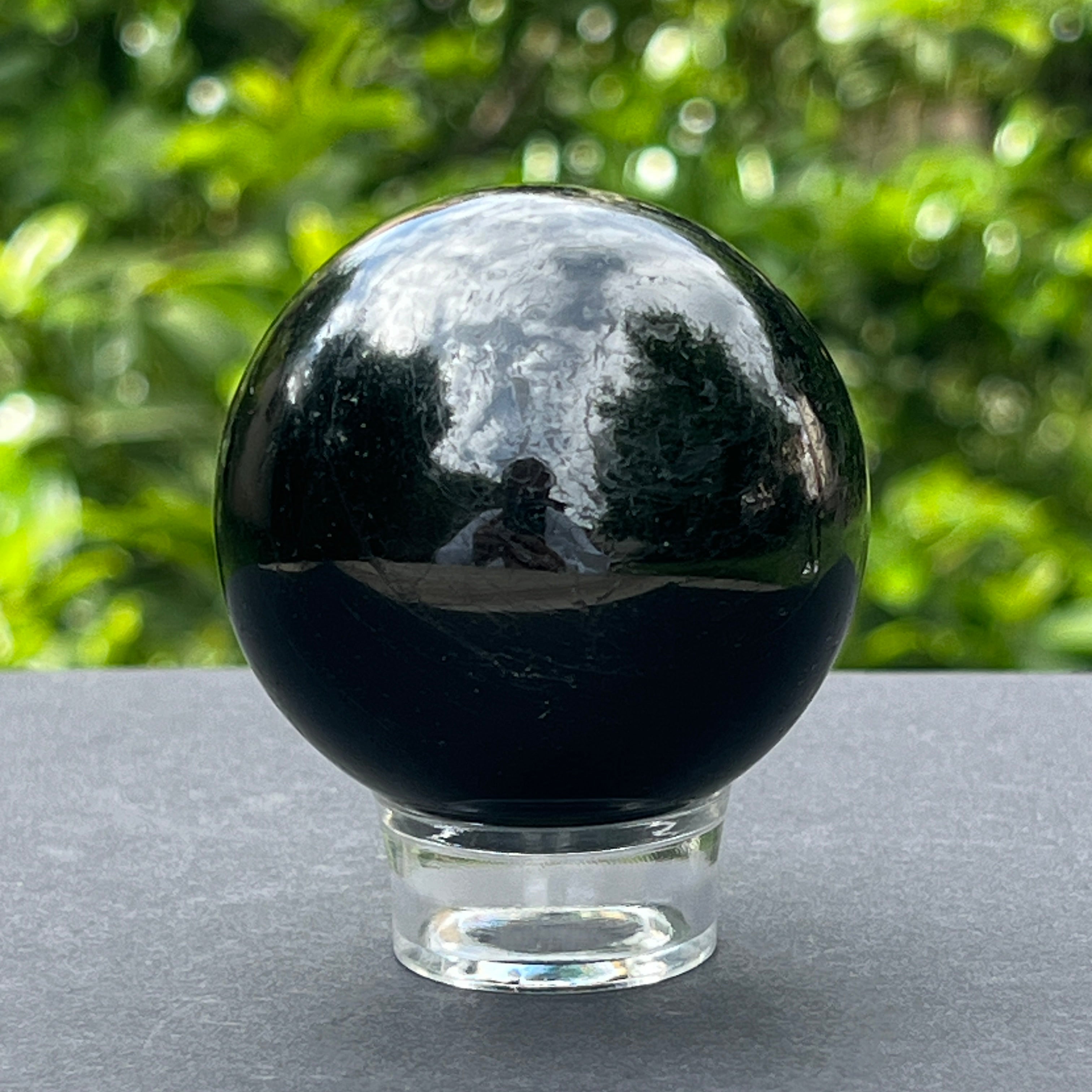 Fekete turmalin gömb, méretei 5,5-6,3 cm között. Kérjük, válassza ki a kívánt méretet.