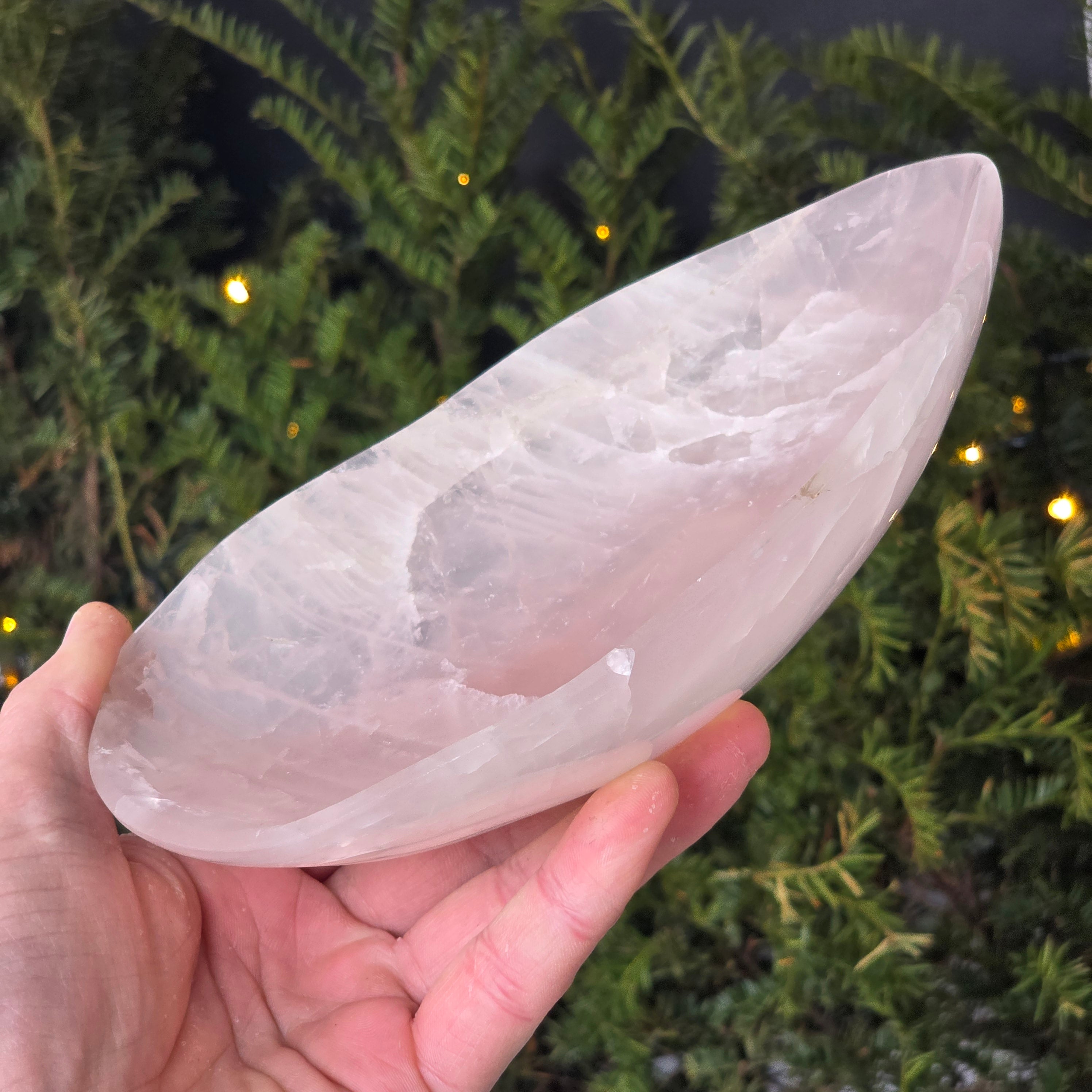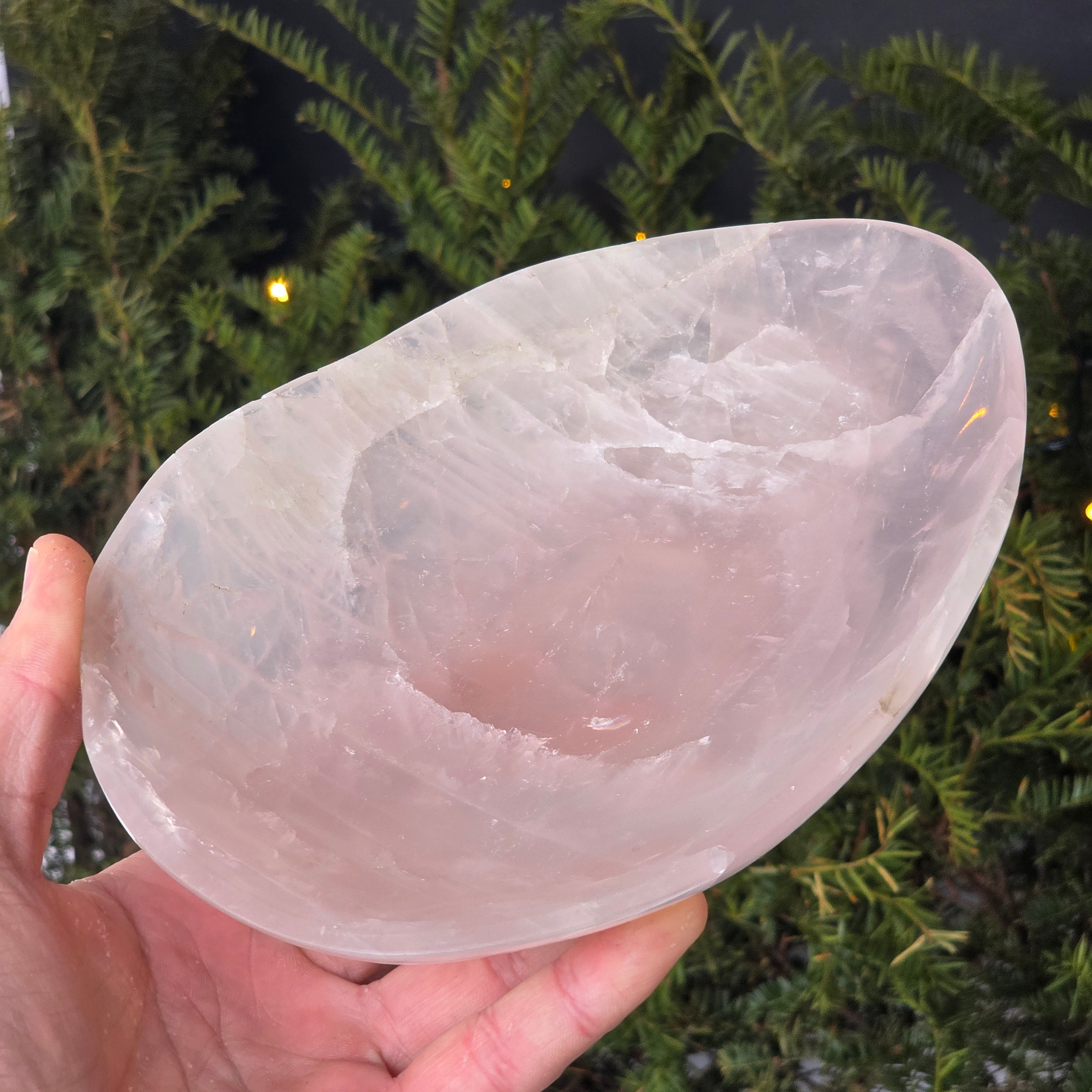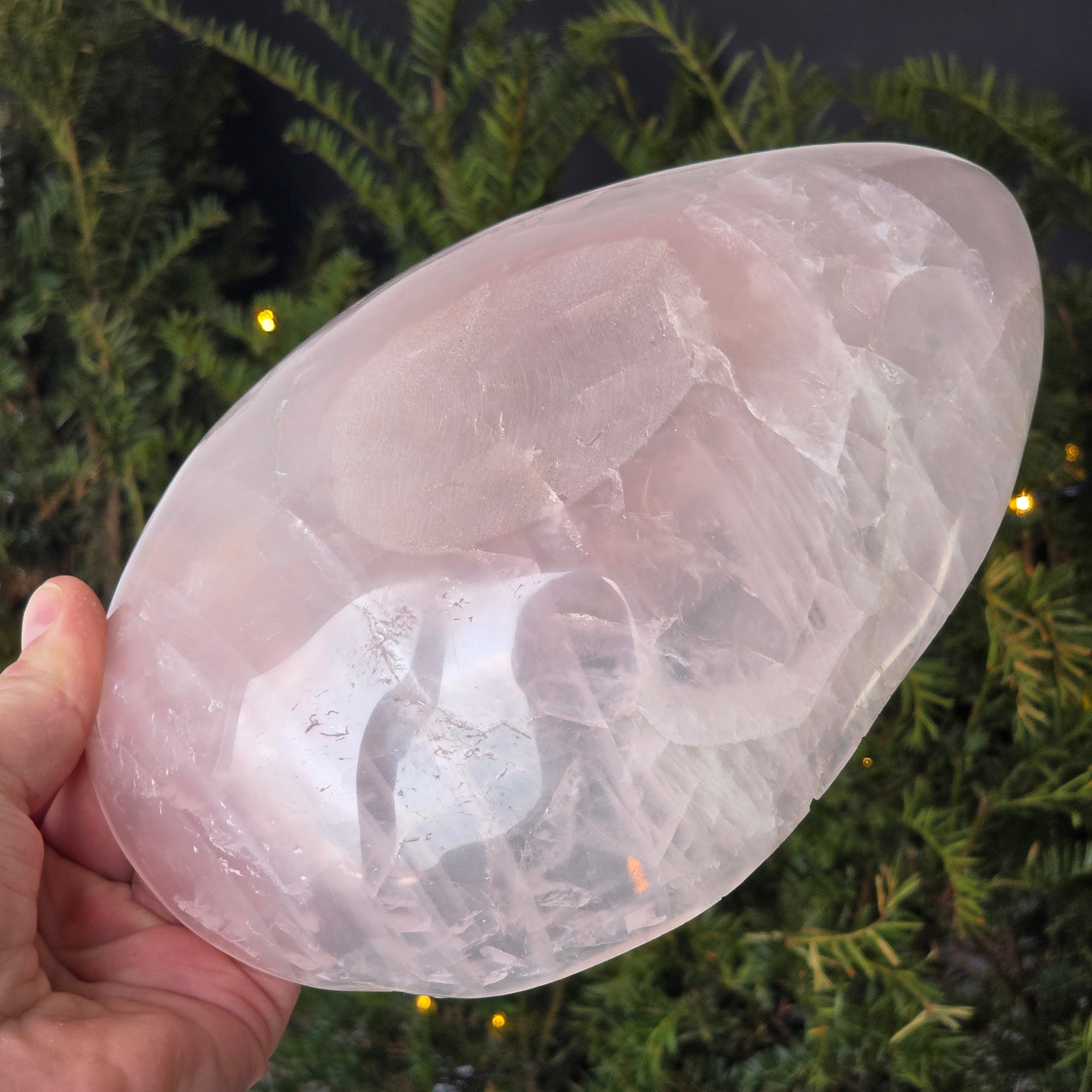 A rózsakvarc tál dekoratív darab, amely jól meghatározott kristályszerkezetű kvarc változatból készült, és finom tejszerű átlátszósága, valamint a titán- vagy mangánfinom zárványok által keltett természetes rózsaszín árnyalatai miatt értékelt. Ezt az ásványt tömegességéről ismerik el, ami lehetővé teszi kiegyensúlyozott szoborszerű alakok és magas színvonalú felületek megmunkálását.