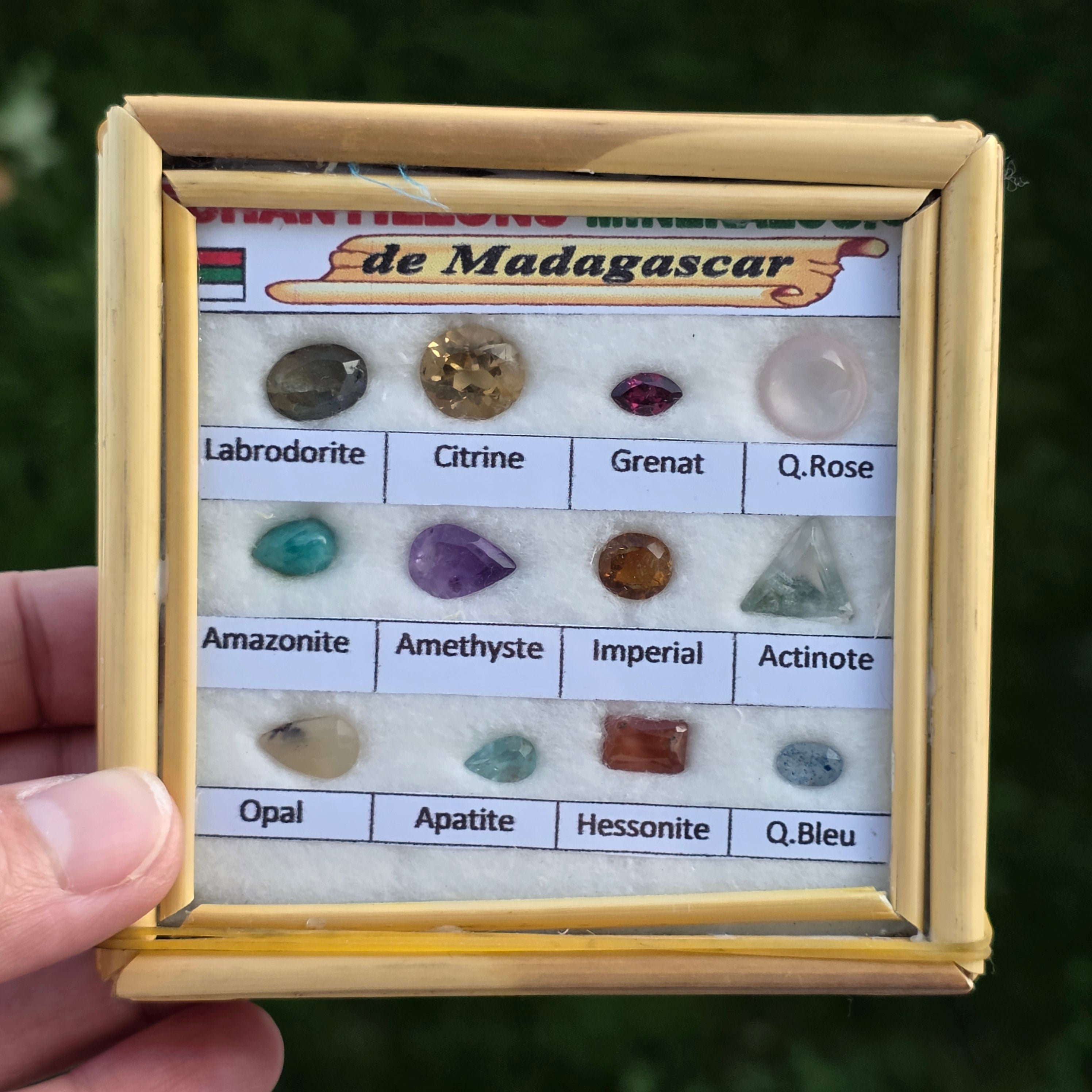 Egy autentikus mineralógiai készlet Madagaszkárról, tökéletes a természetes ásványok sokszínűségének és szépségének felfedezésére. Minden darabot gondosan válogattak, és külön-külön bemutatják, így a gyűjtemény emlékezetes ajándékká vagy igazán különleges gyűjteménykezdetté válik.