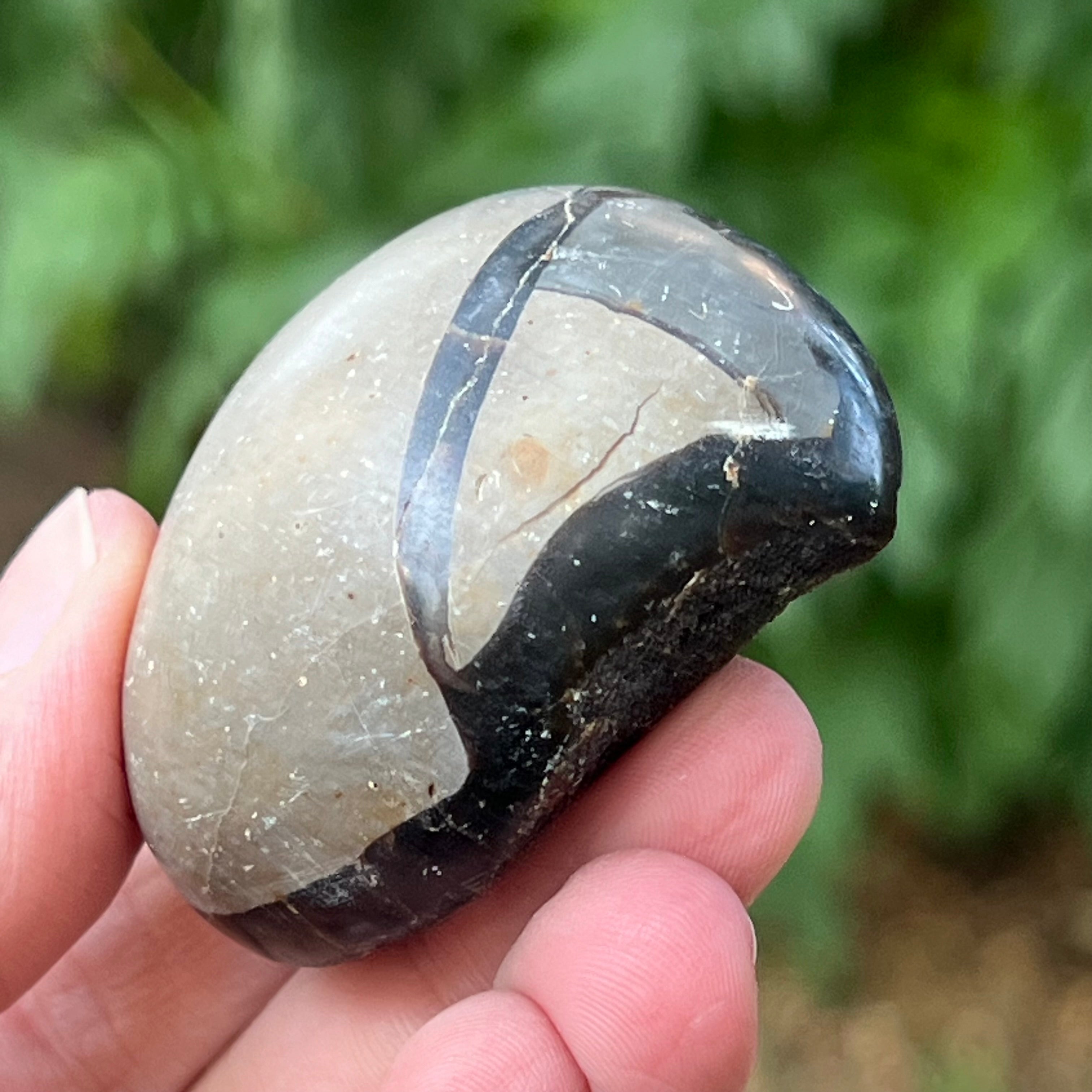 A septária kalcitból, limonitból, gipszből és baritból áll, olyan ásványokból, amelyek egyedülálló játékot hoznak létre ebben a kőben, és különleges megjelenést kölcsönöznek neki.
