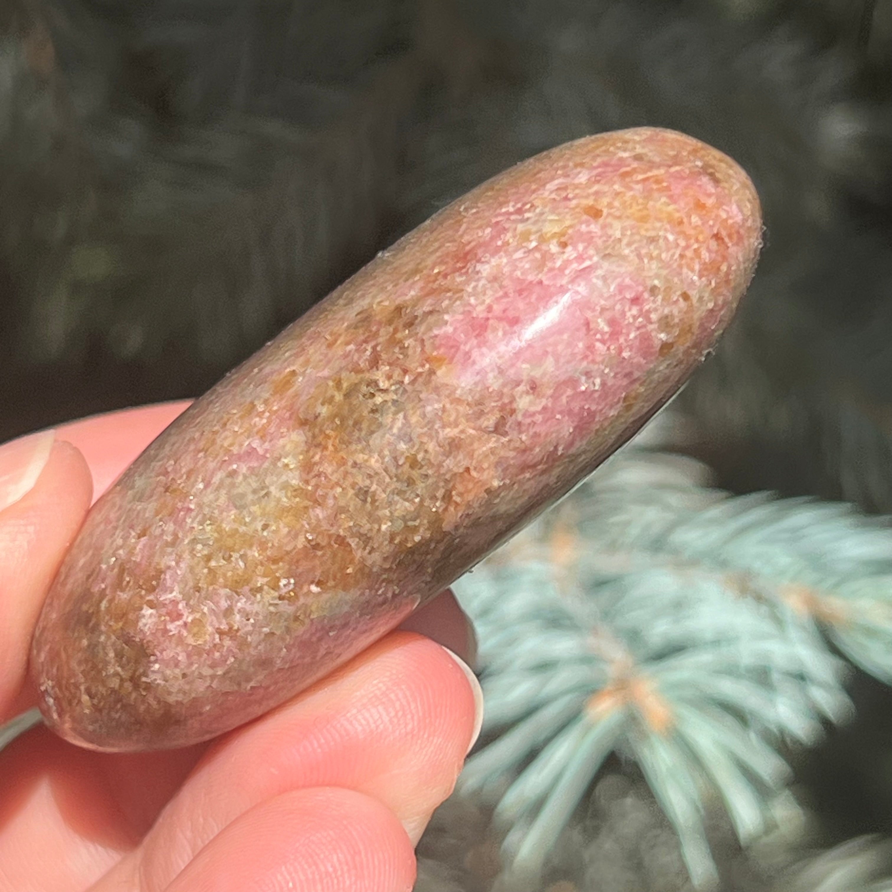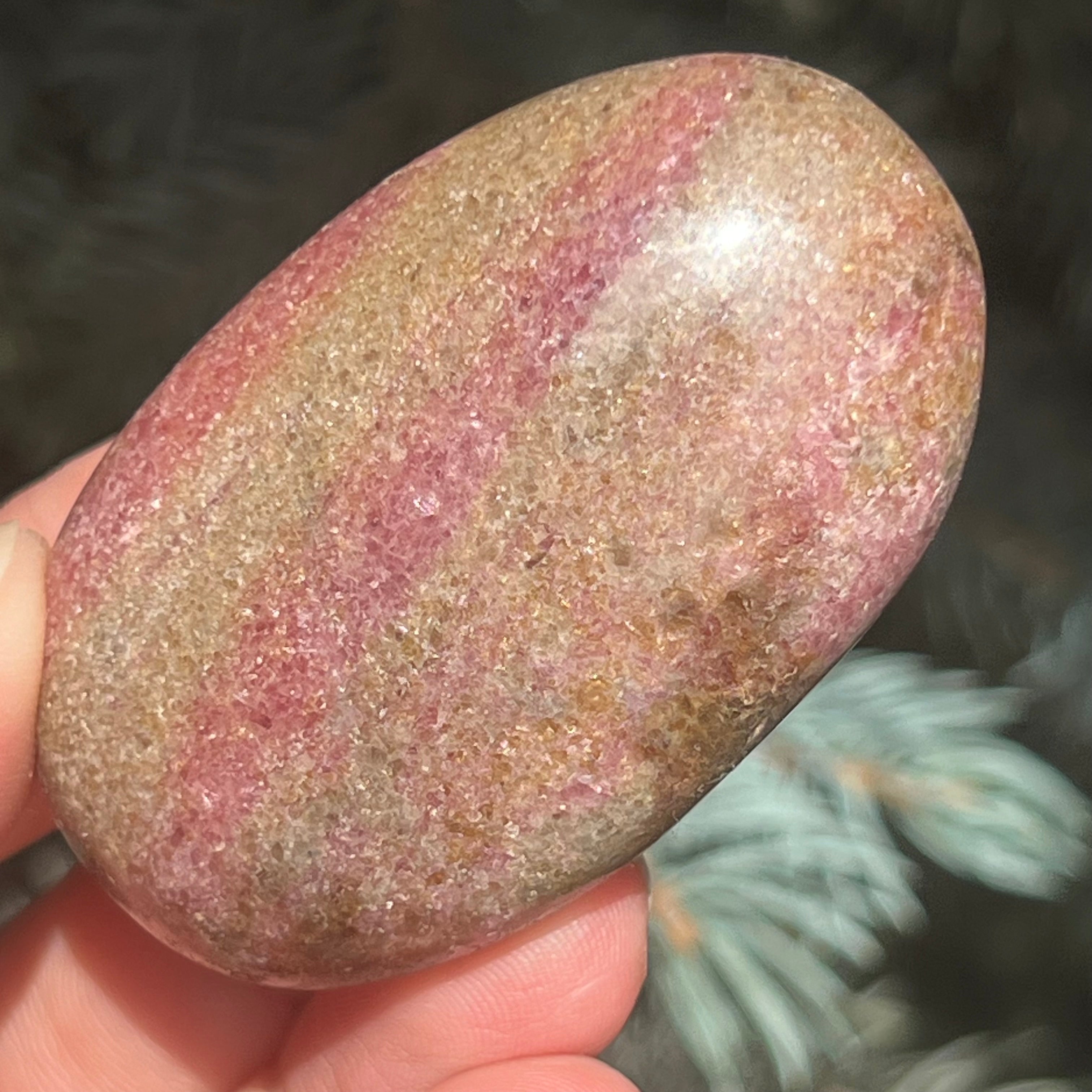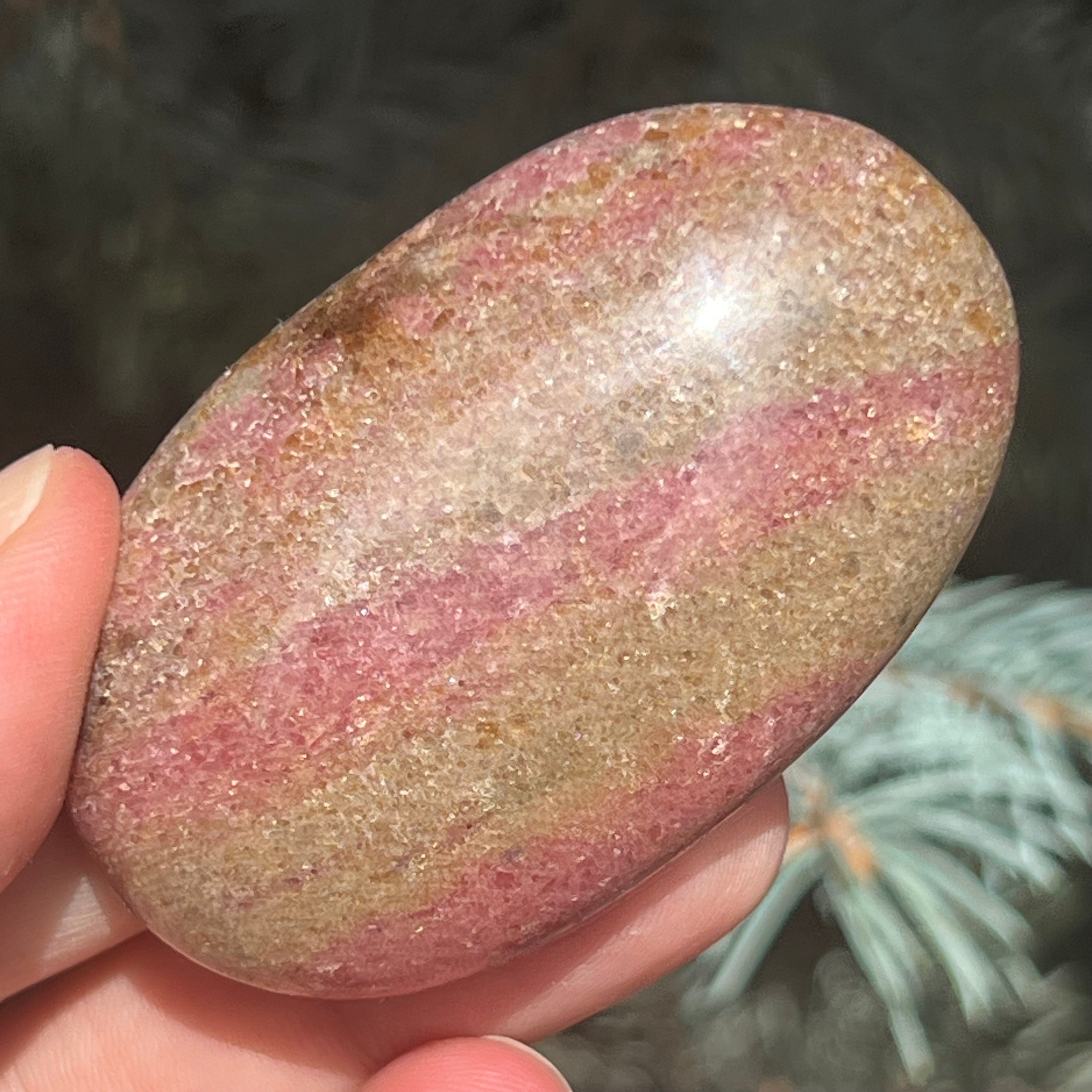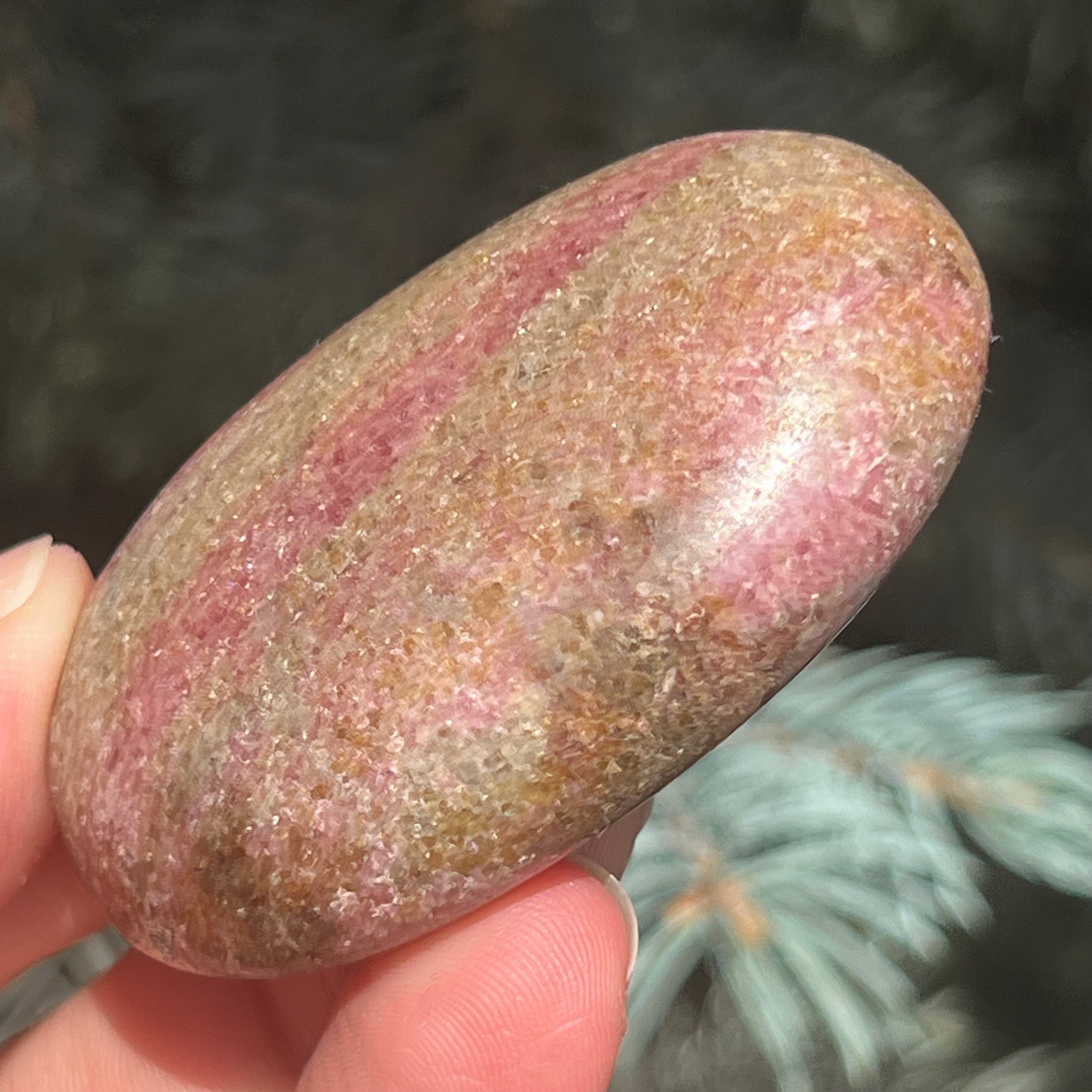 Madagaszkári m4 rodónit pálmakő, méret: 5,5*3,5*1,6 cm