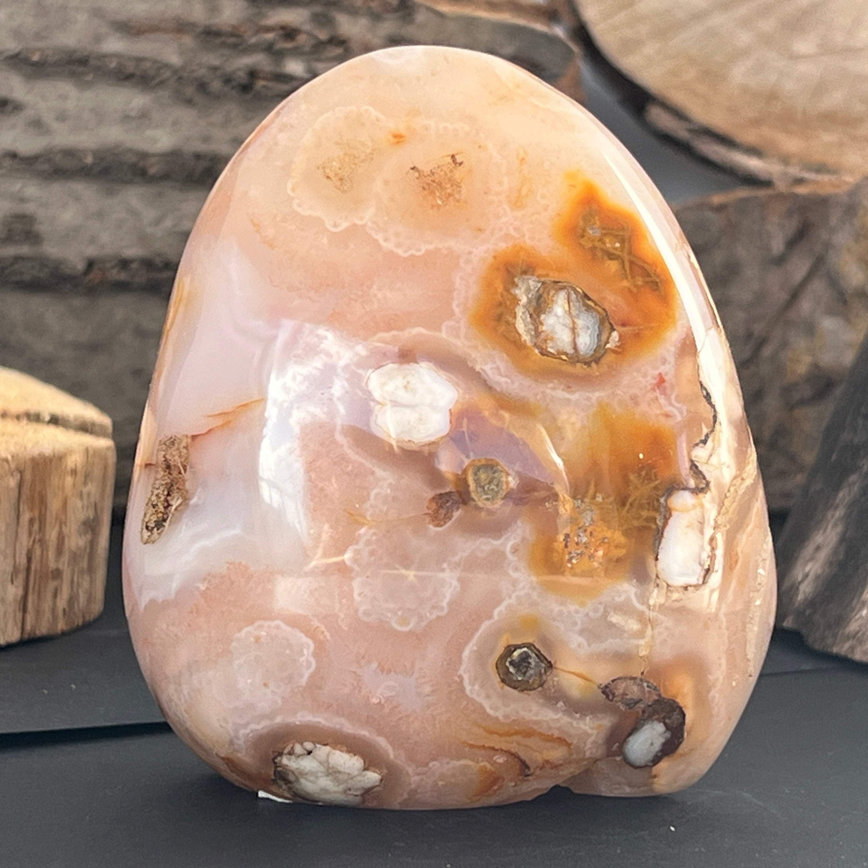 A virág achát használható meditációhoz, ékszerként vagy természetes megjelenést kölcsönözhet annak a térnek, amelyben elhelyezik.