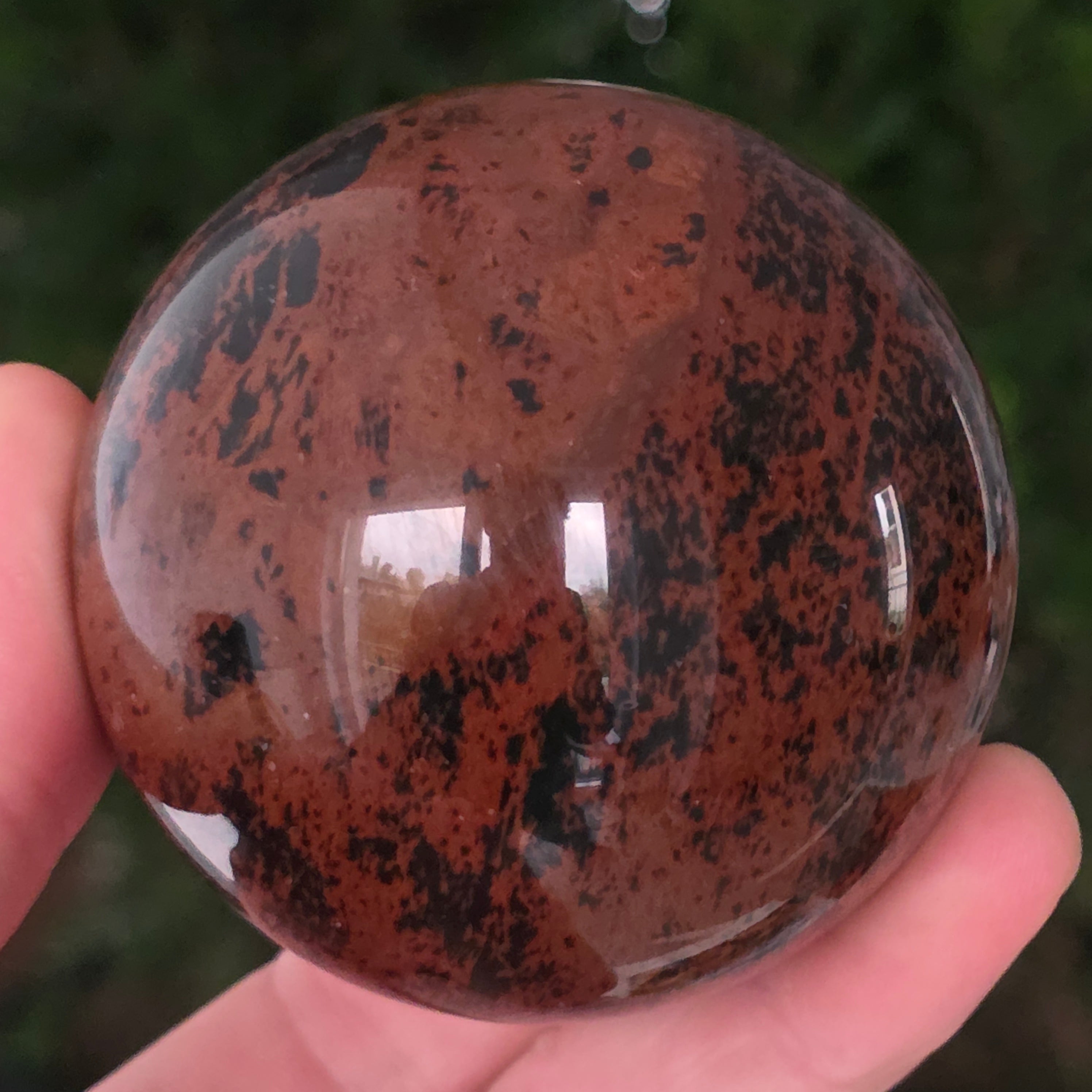 Ez a mahagóni obszidián gömb a Föld ősi erejének megtestesülése — a gyökerek, a biztonság és a belső átalakulás köve.