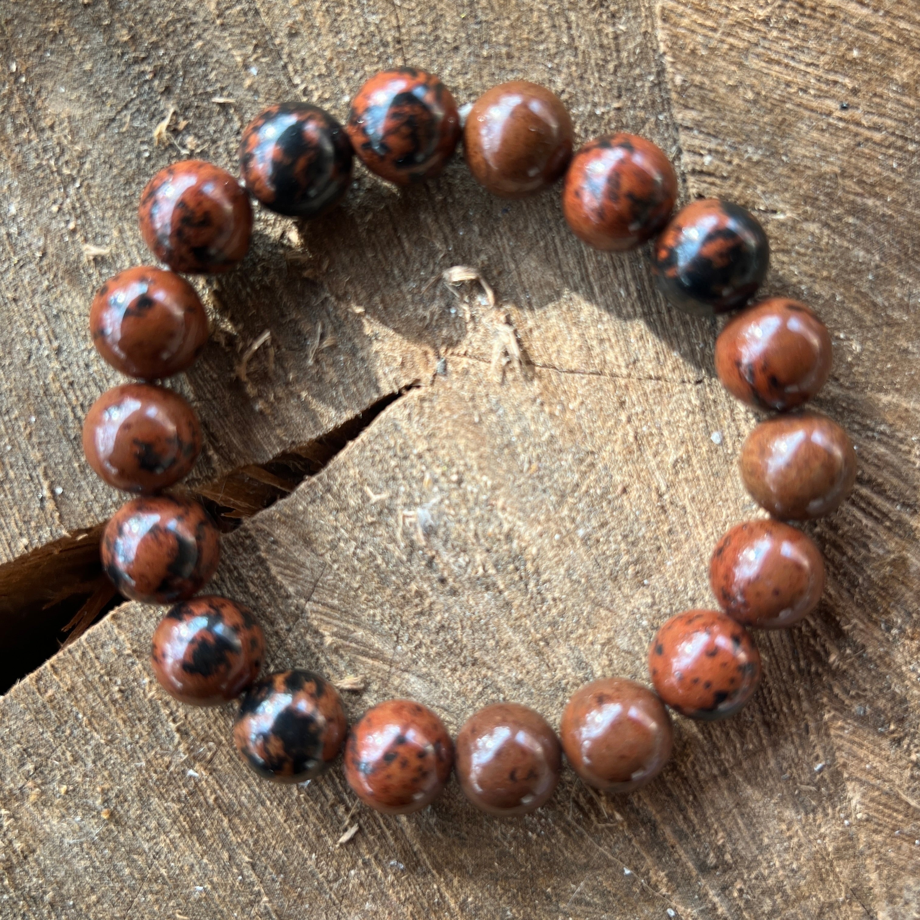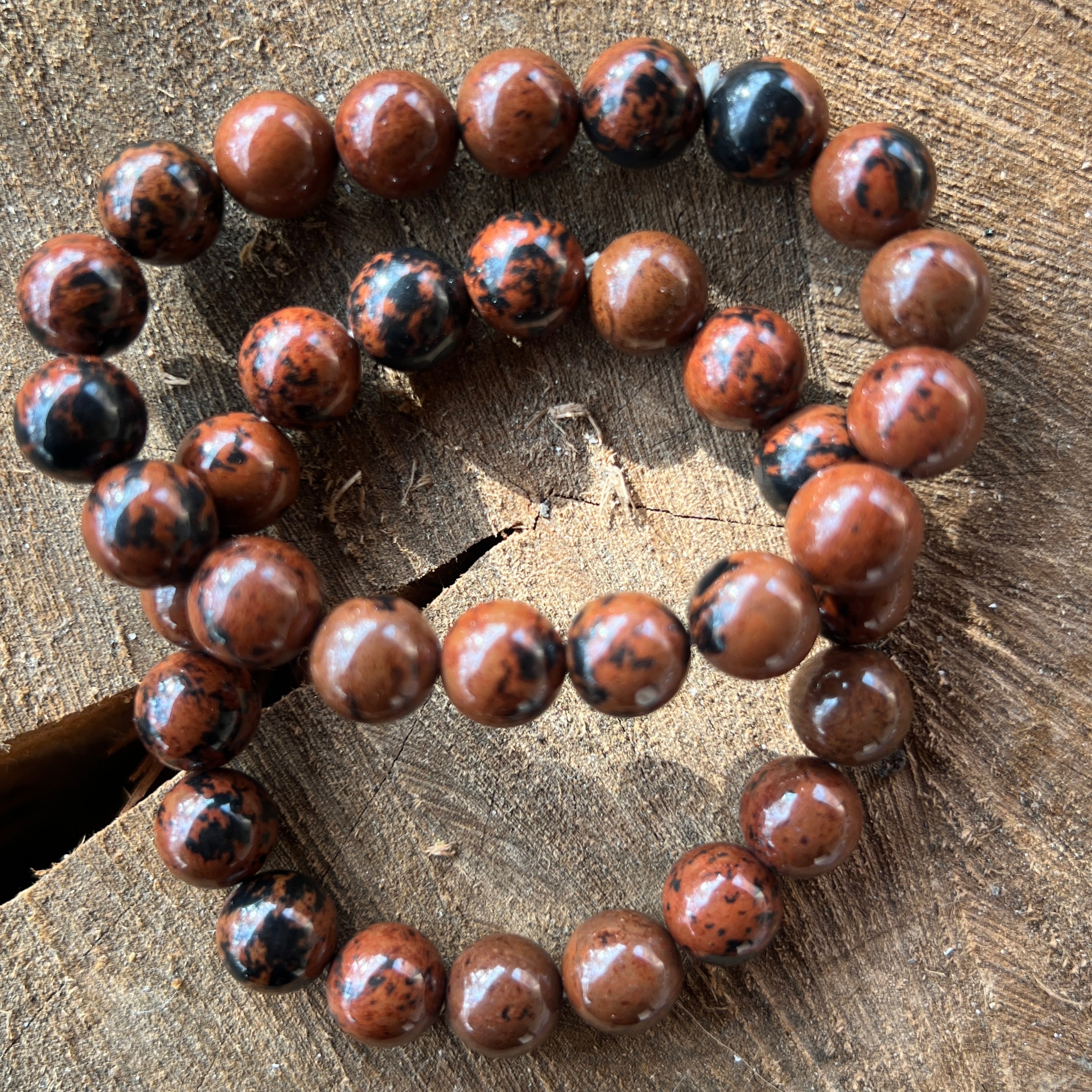 Descriere - Mahagóni obszidián karkötő 10-11 mm
