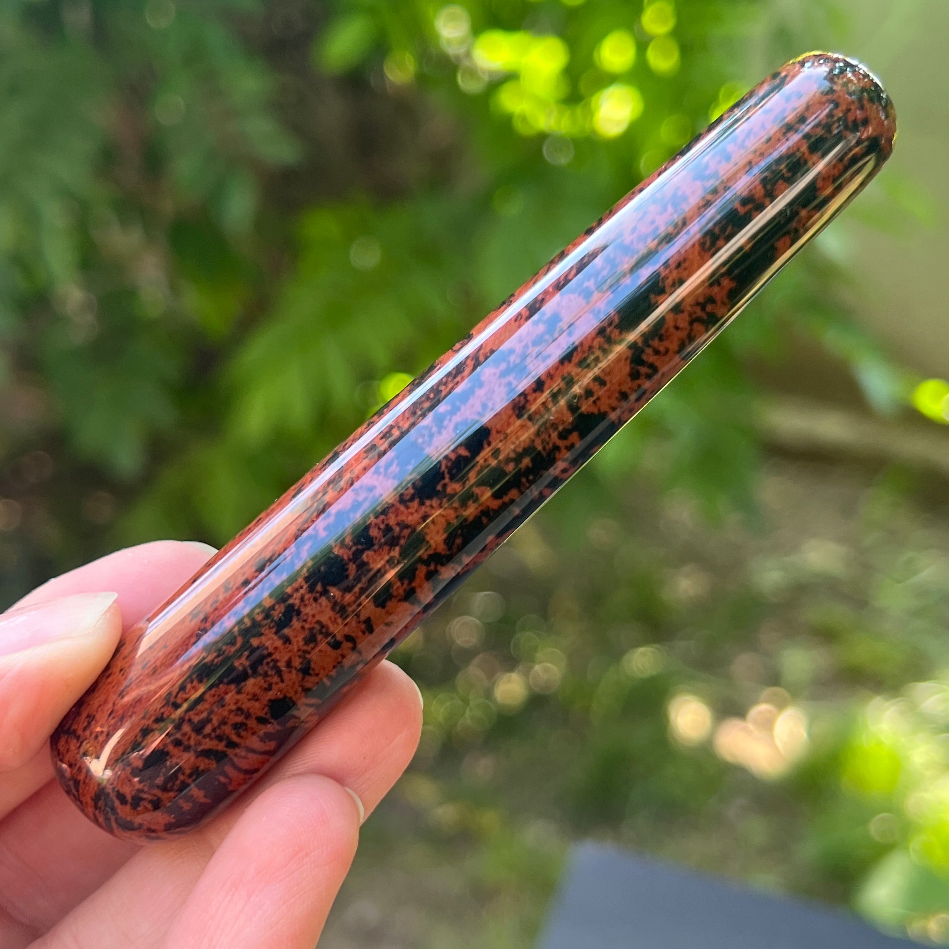 A mahagóni obszidiánt olyan kőnek tartják, amely aktiválja a három alsó csakrát. Serkenti a kreativitást, a szenvedélyt, a szexualitást, és védelmező szerepet is betölt.