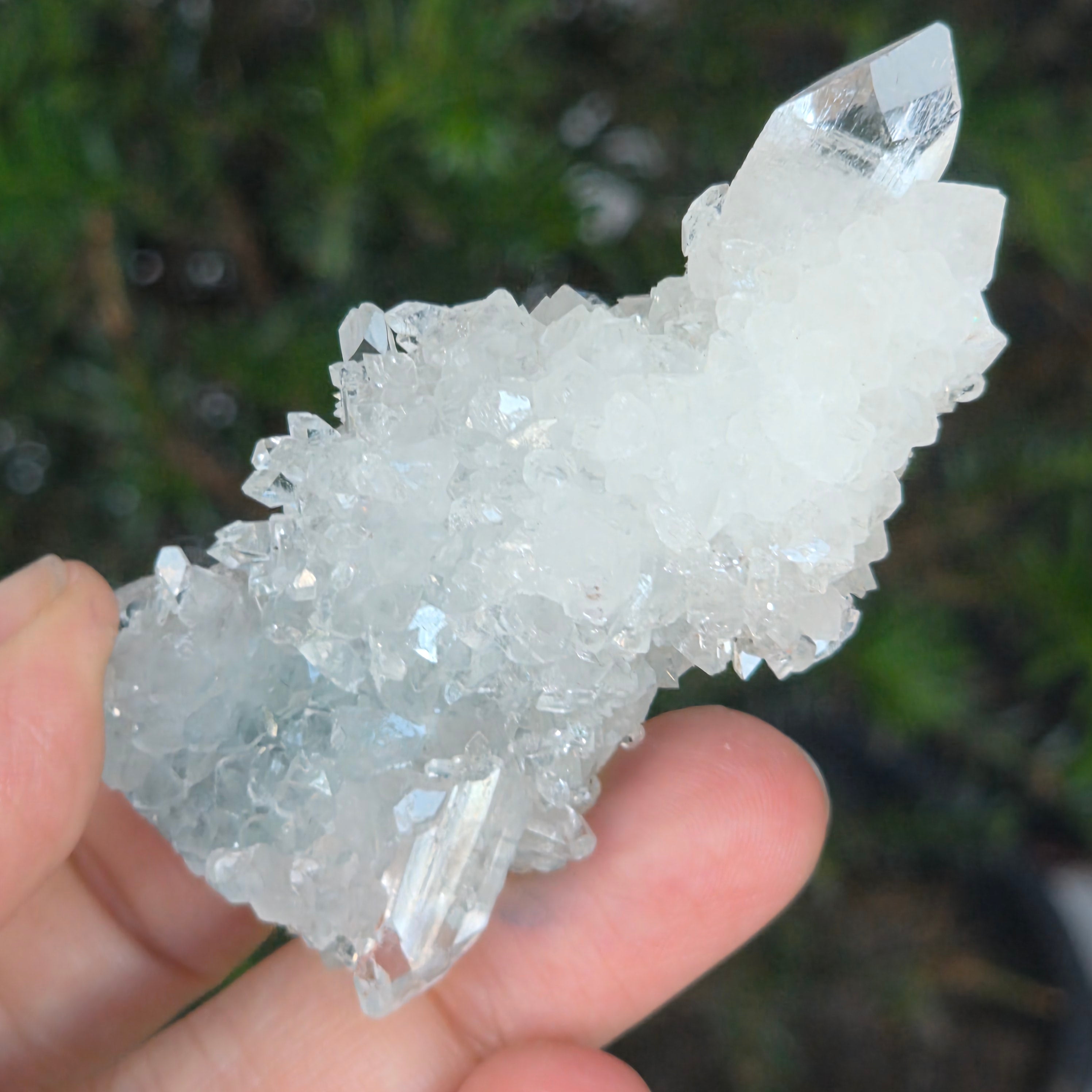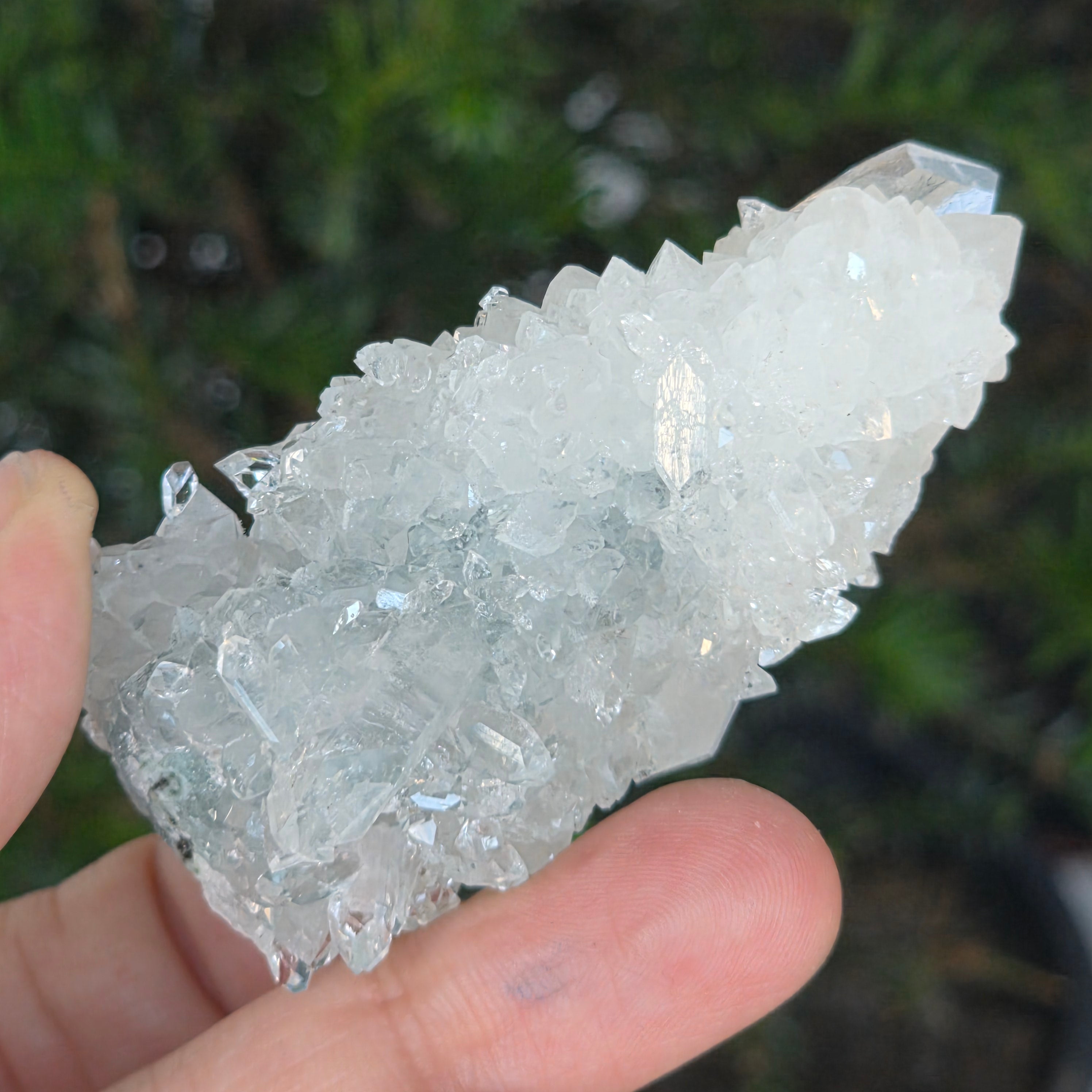 A bazaltkőzetek mélyén született, ott, ahol a természet csendben formálja tökéletes formáit, ez az apofilit klaszter magában hordozza a tiszta kristályok világosságát és nyugalmát.