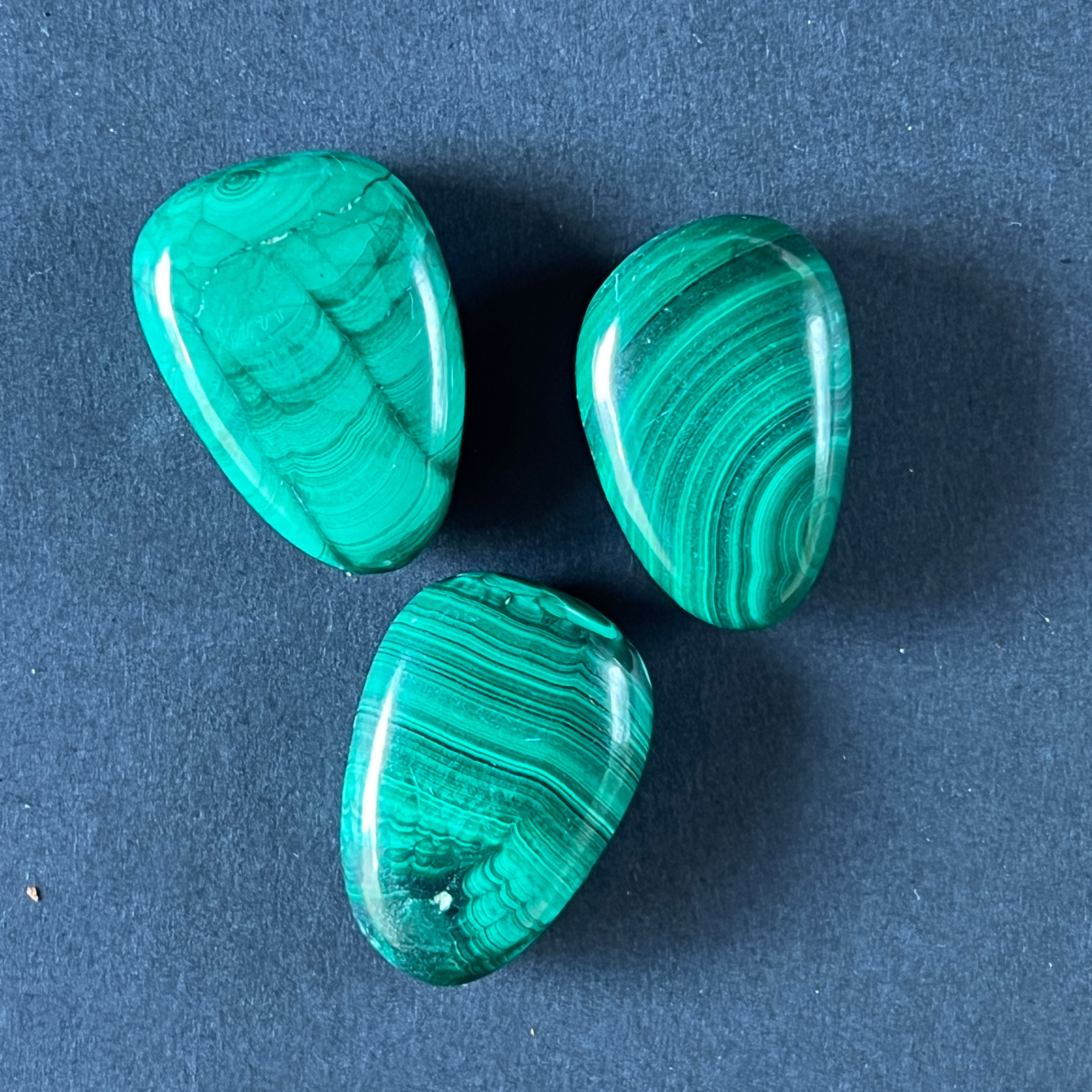 Malachit kaboson, méret: kb. 3 cm