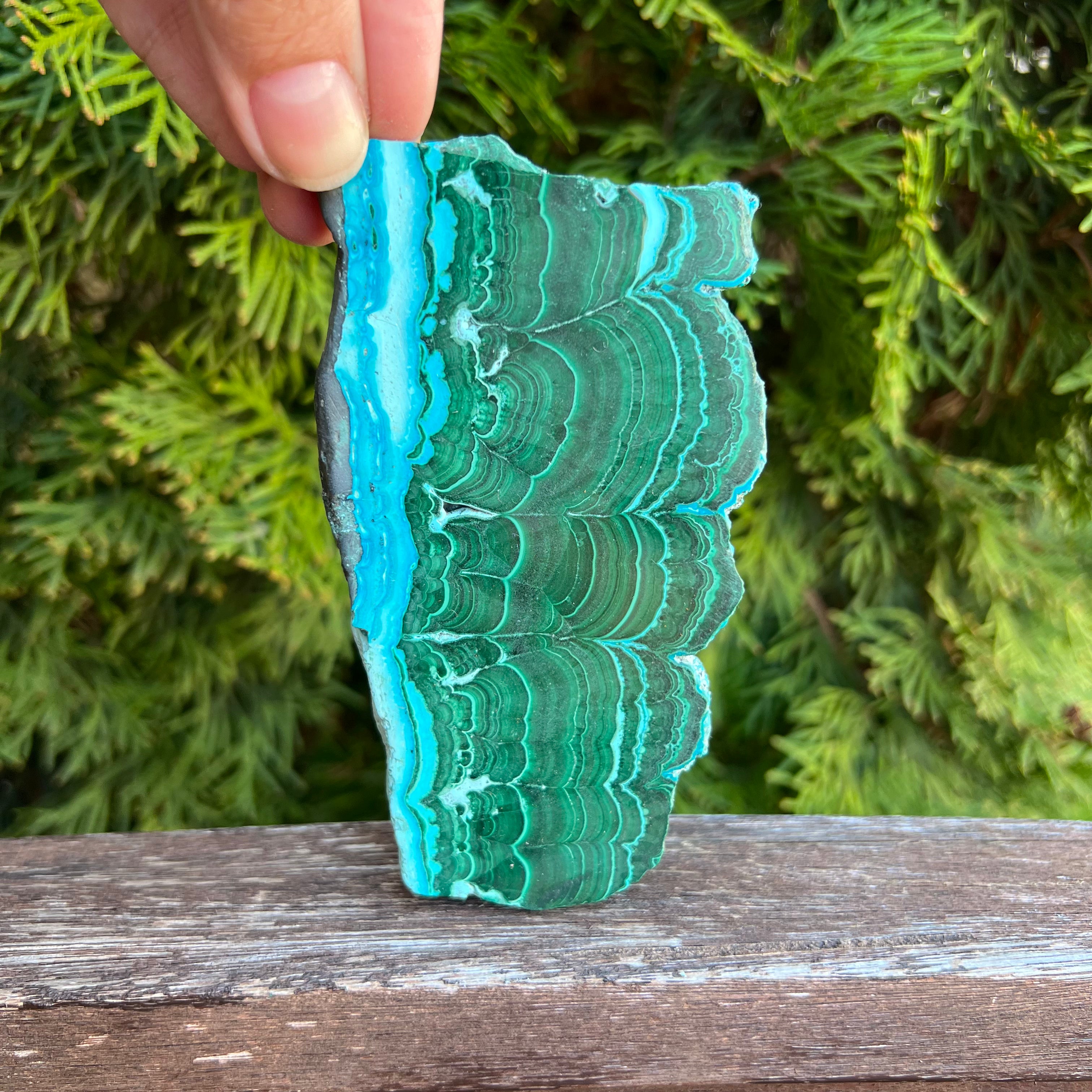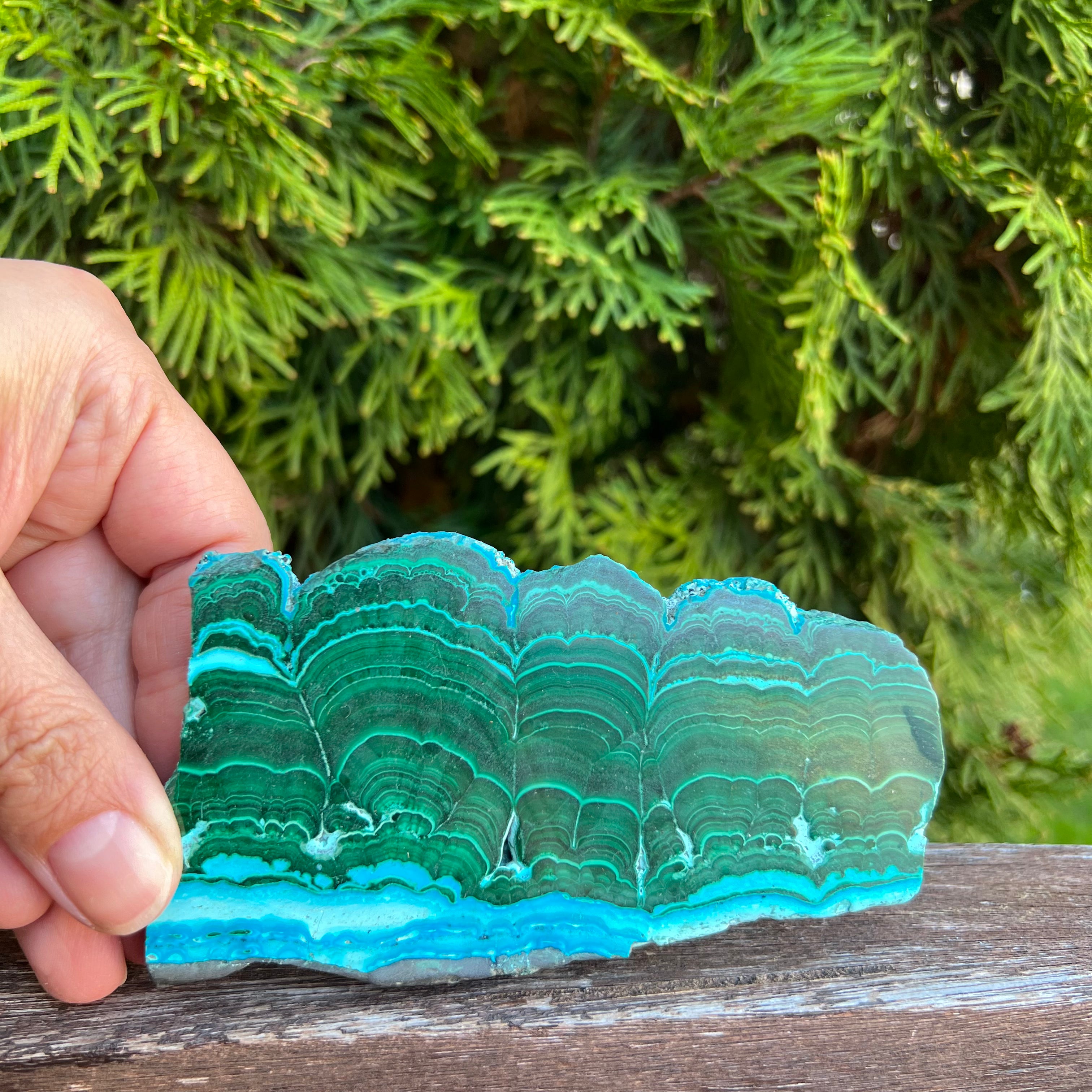 Malachit szelet közepes krizokollával m2, mérete: 12 * 7 * 1 cm