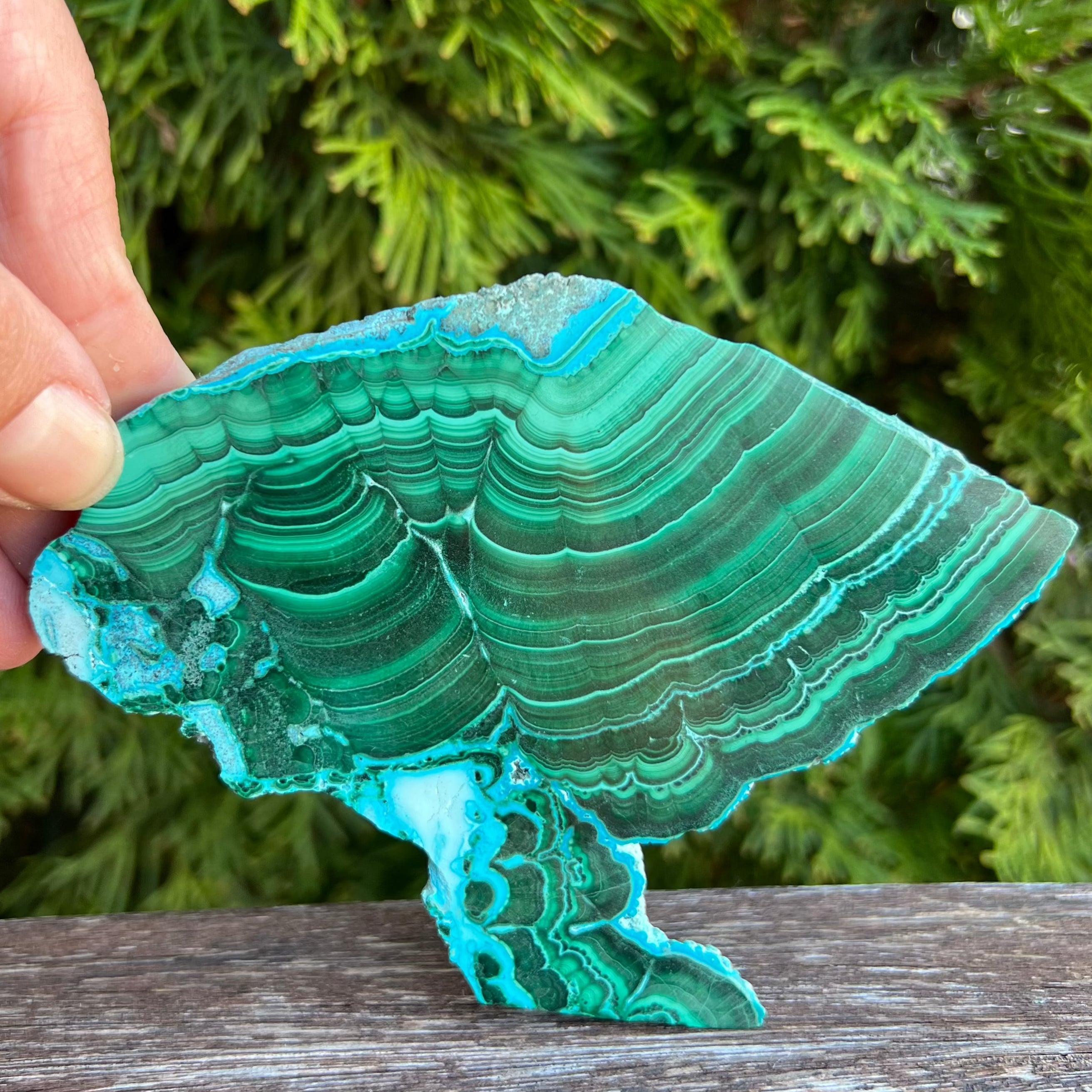Malachit szelet közepes krizokollával m4, mérete: 12,5 * 9 * 0,6 cm