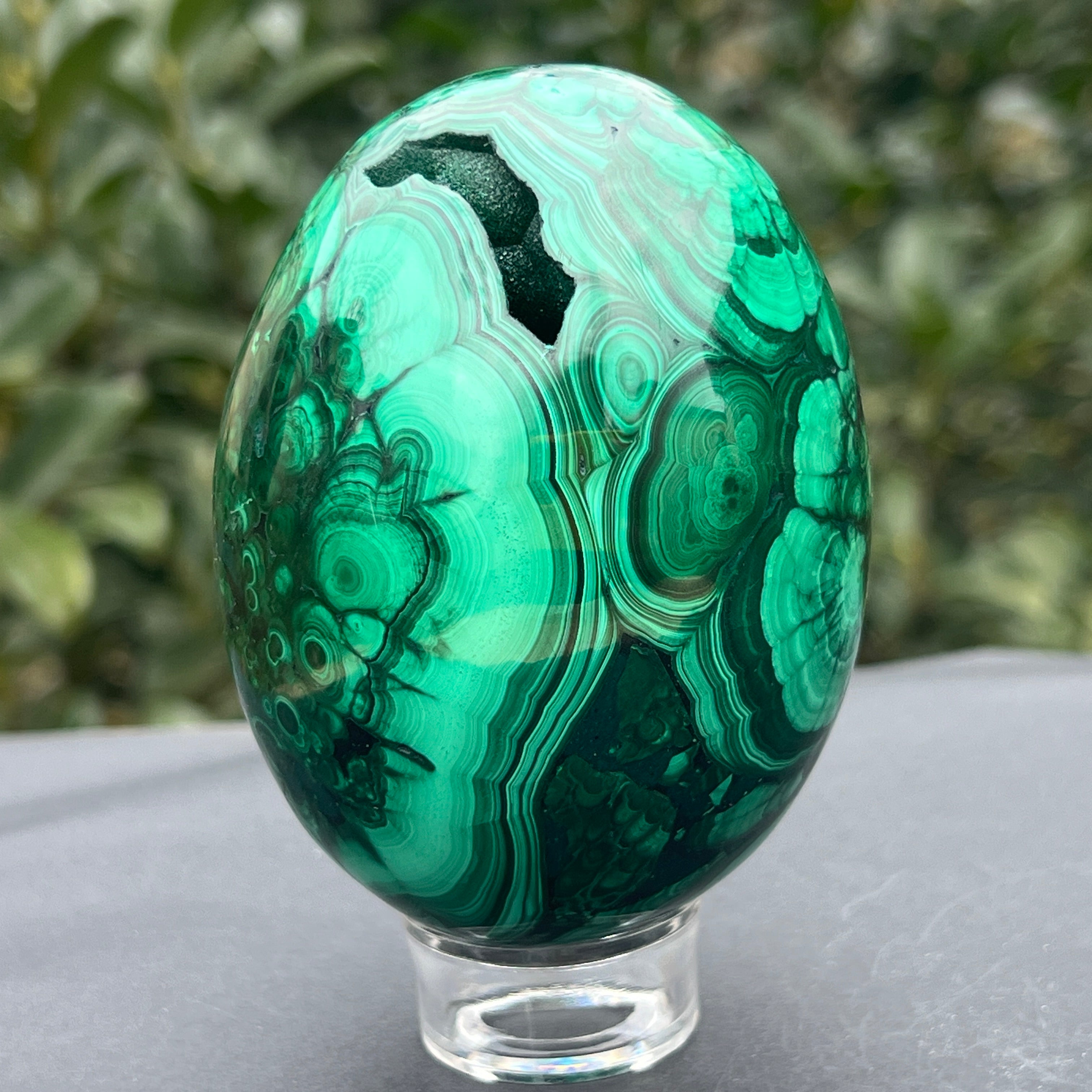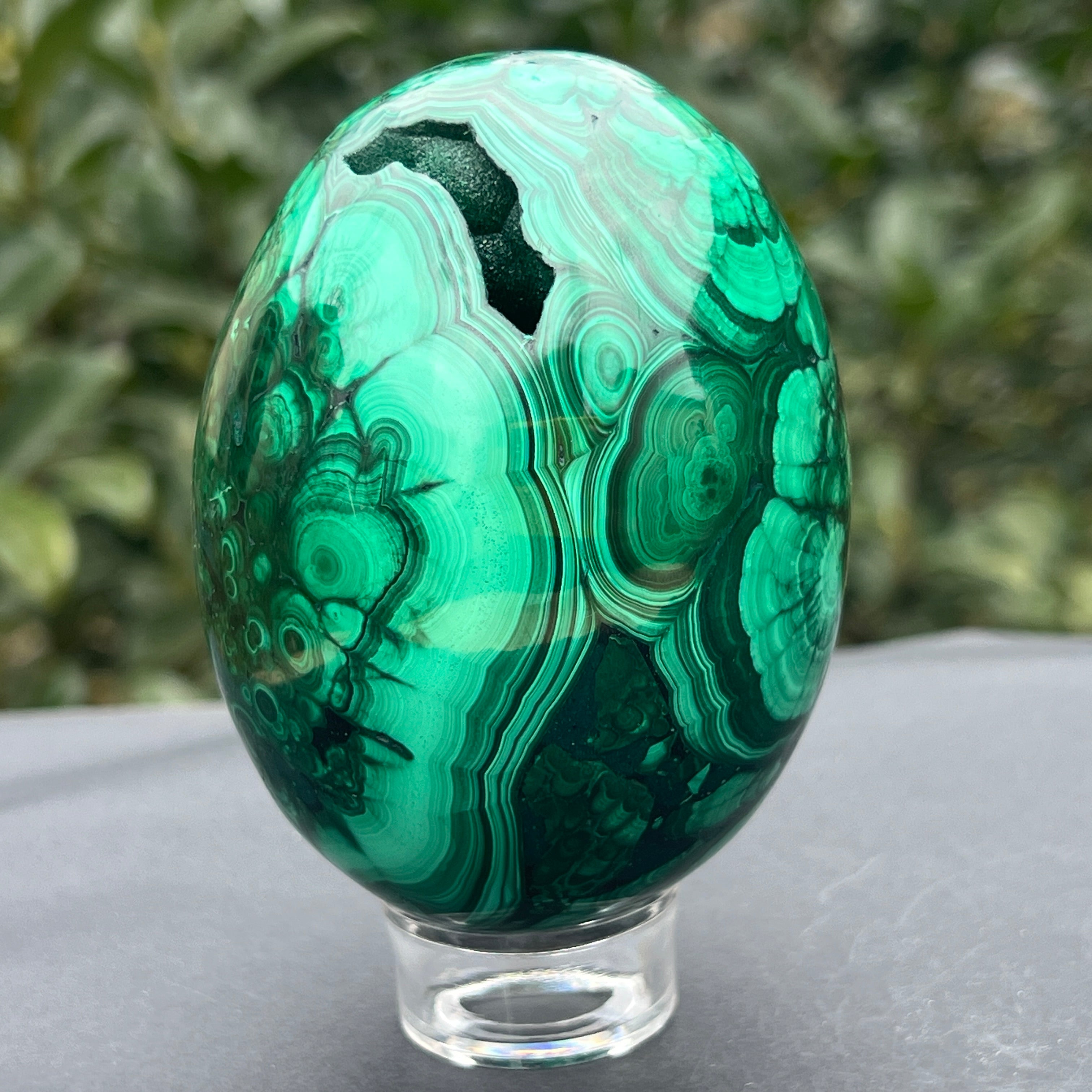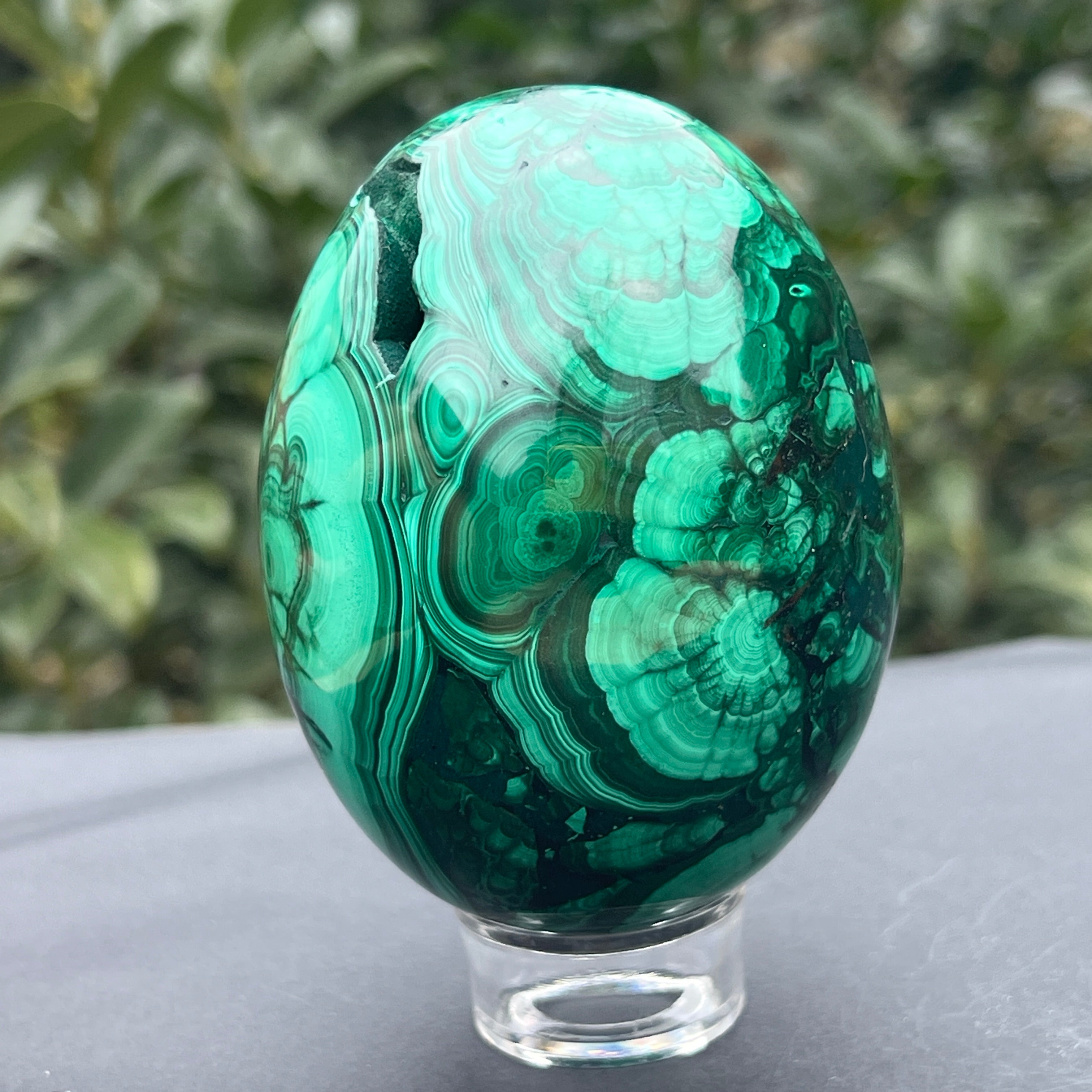 Malachit tojás Kongóból XL1 modell, mérete: 8,6 * 6,5 cm