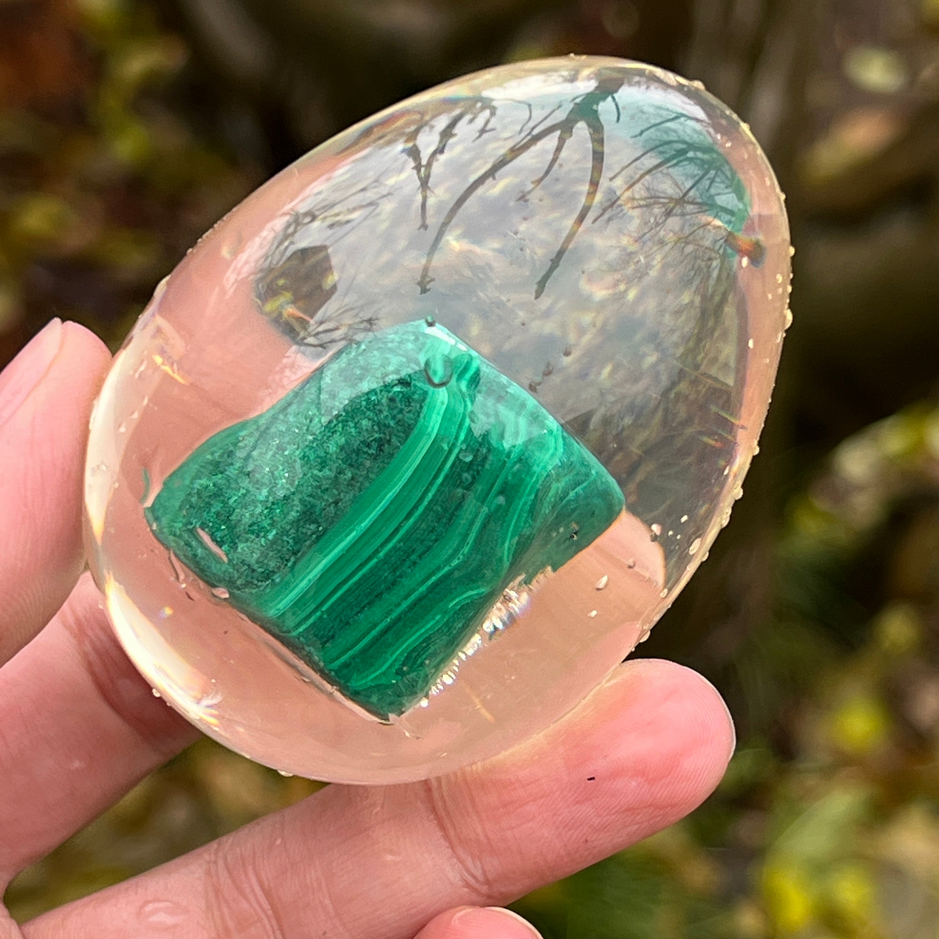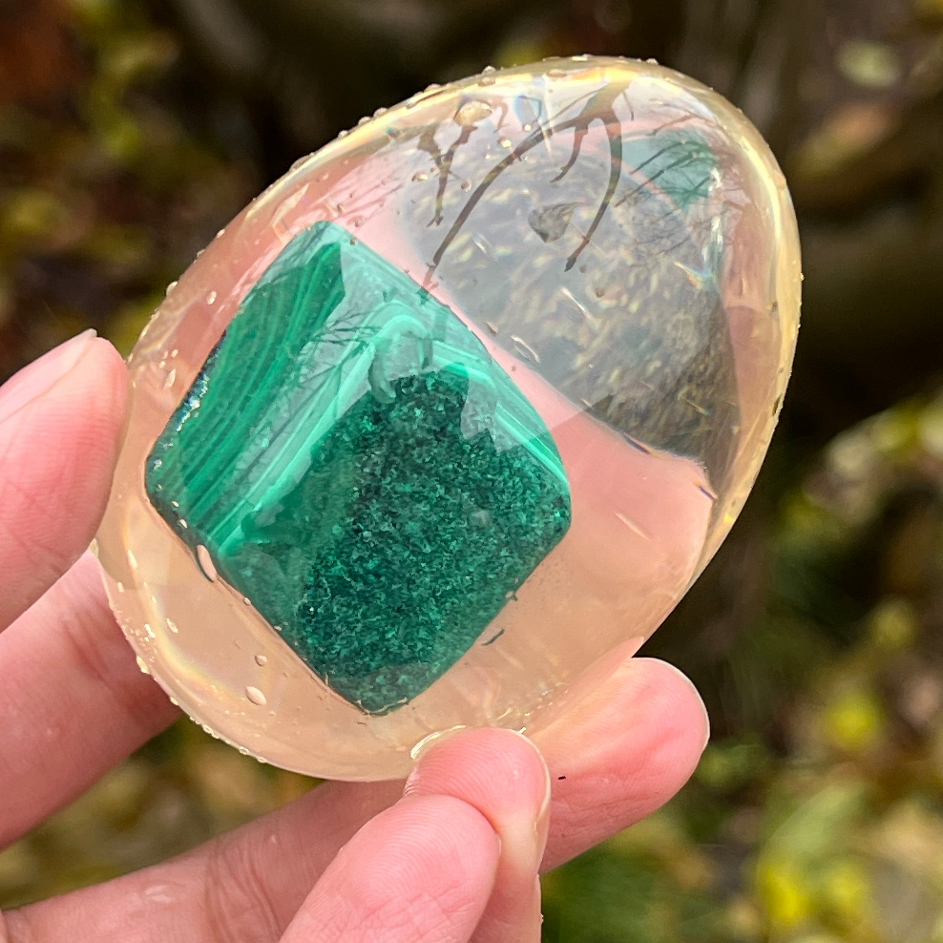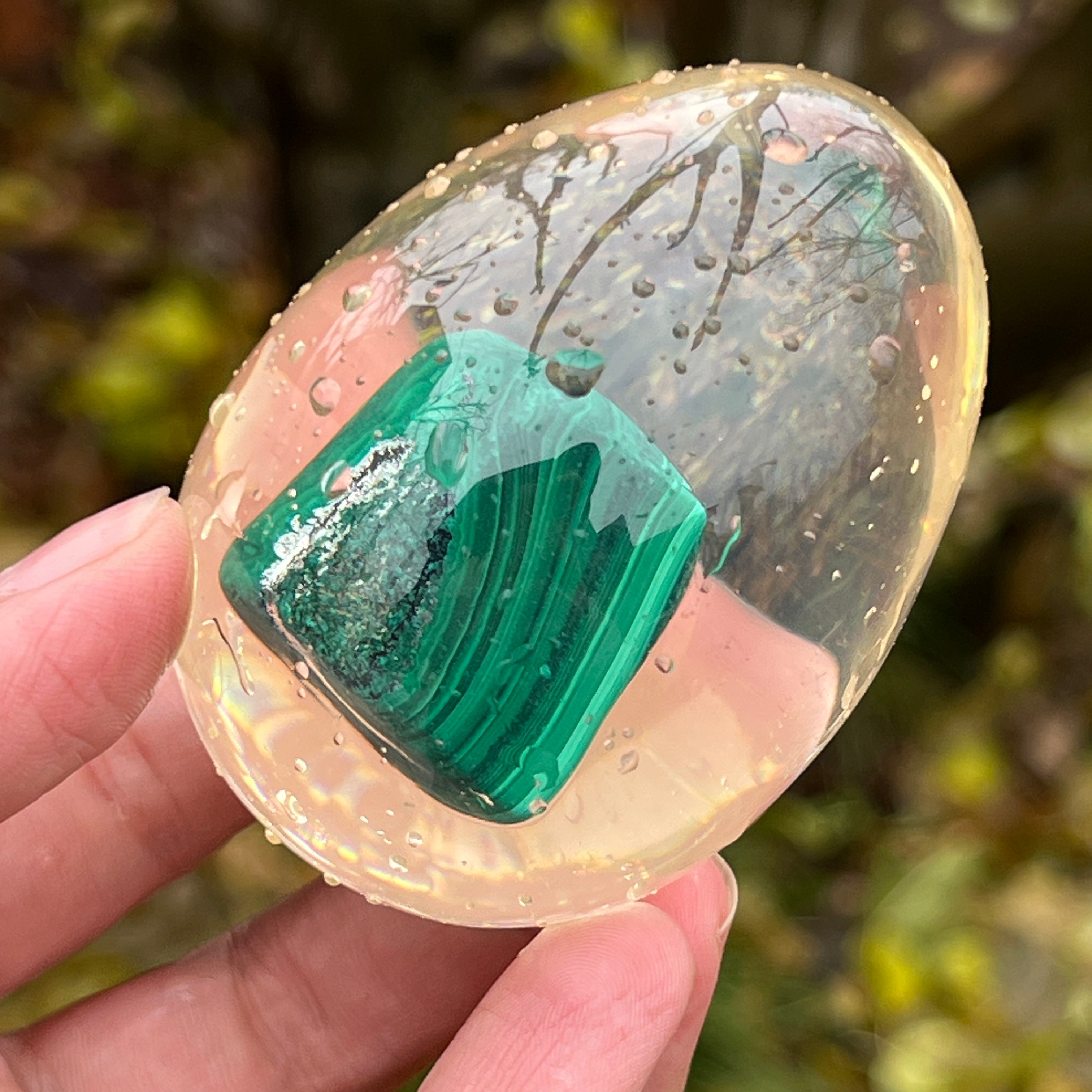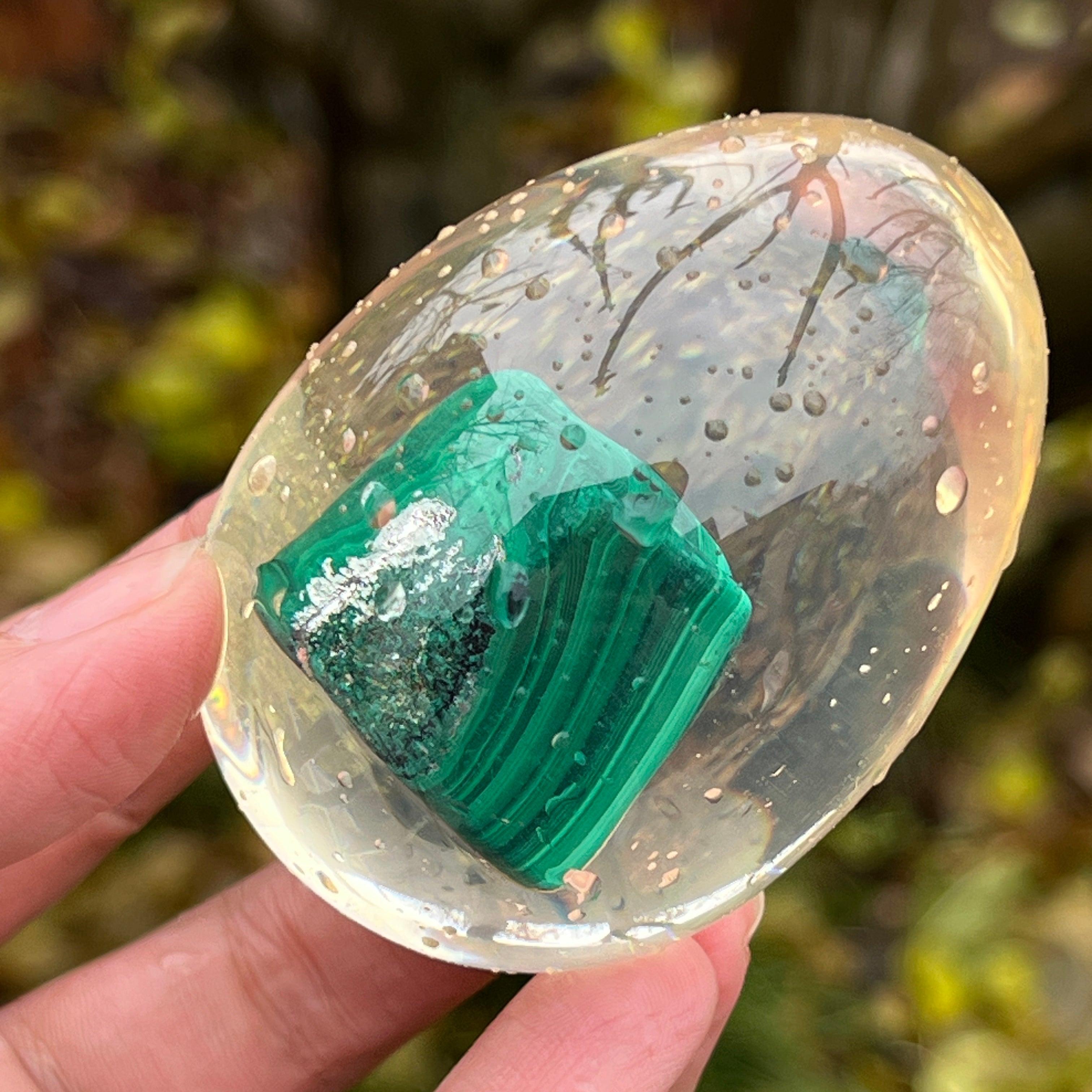 Malachite tojás Kongo gyantában modell 4, méret: 7*5 cm