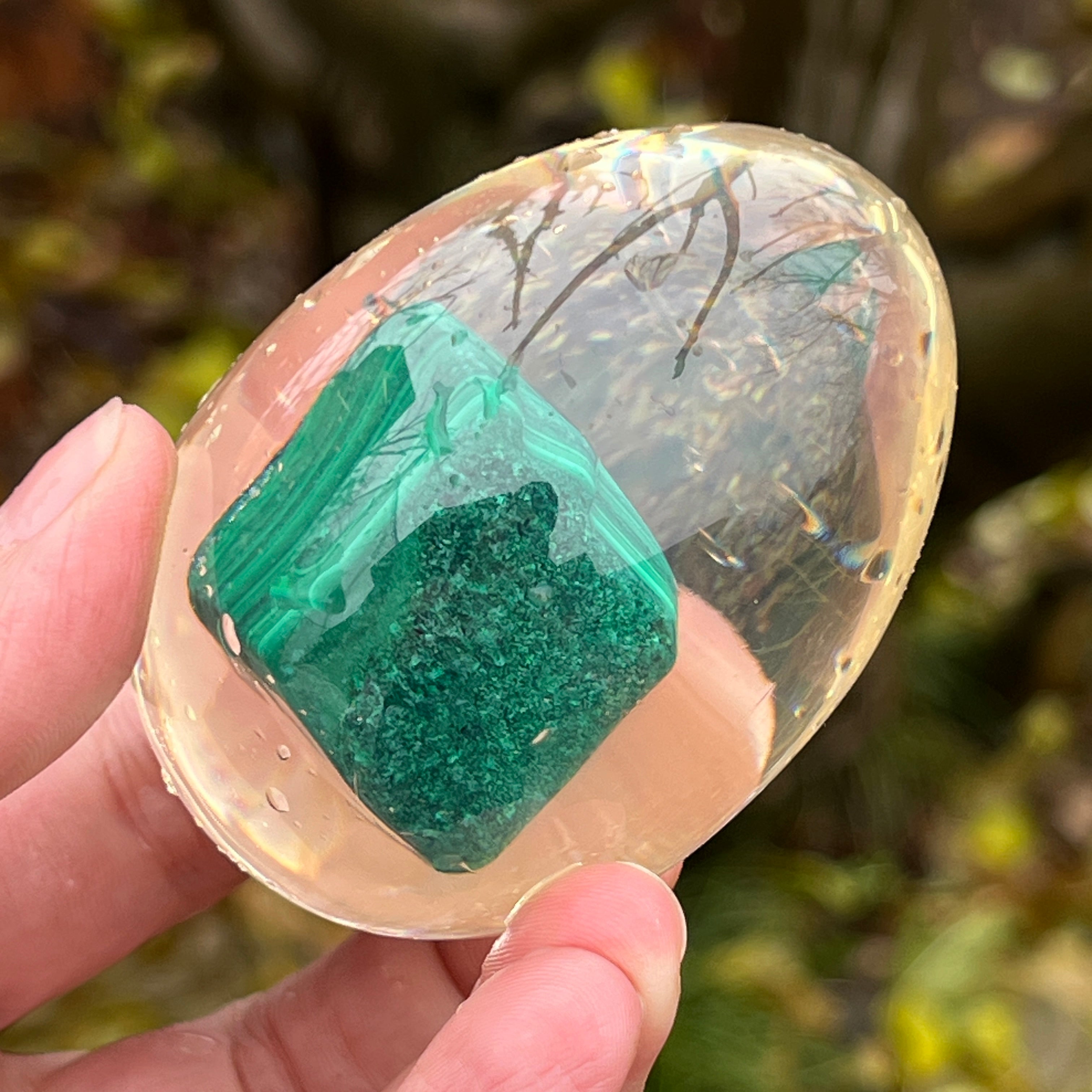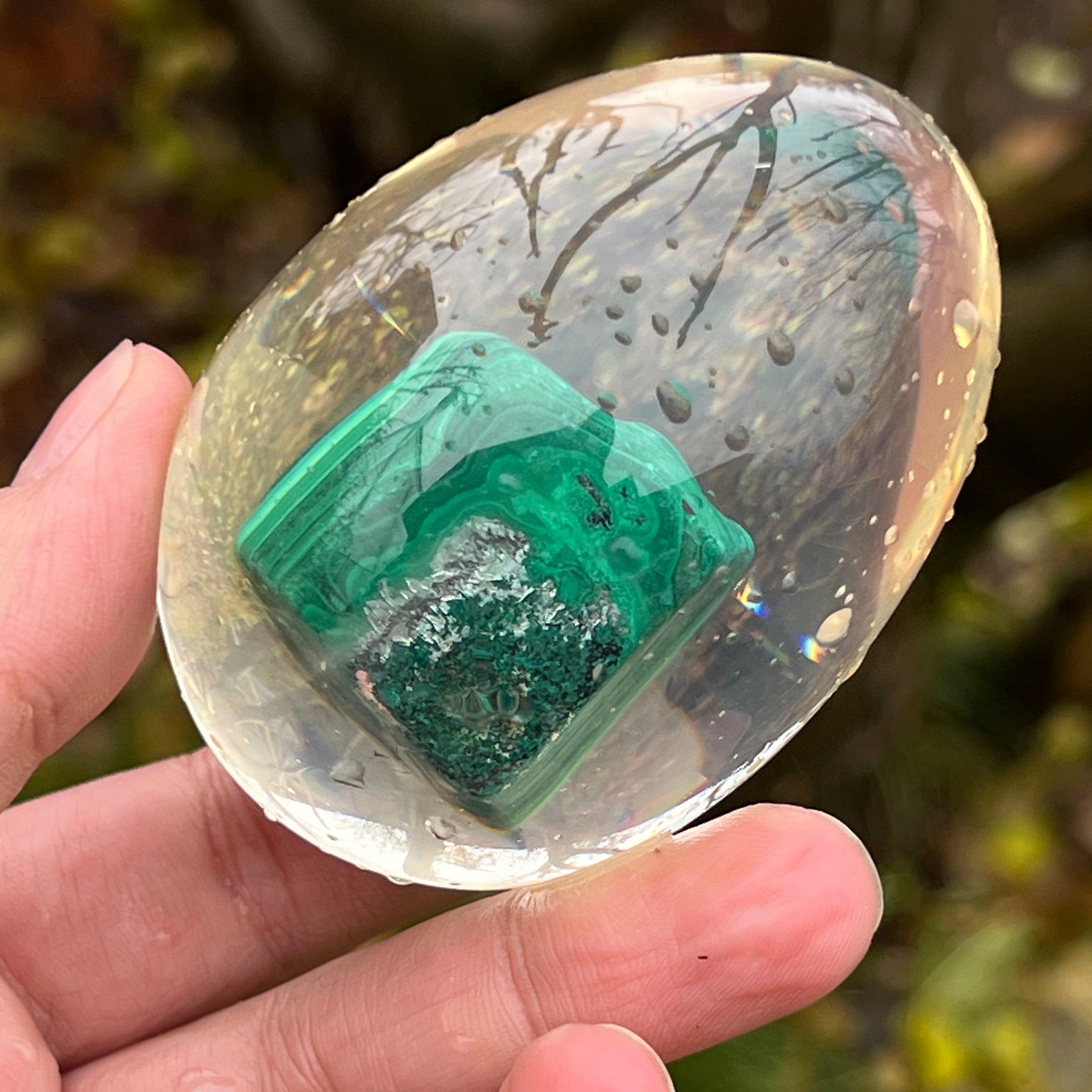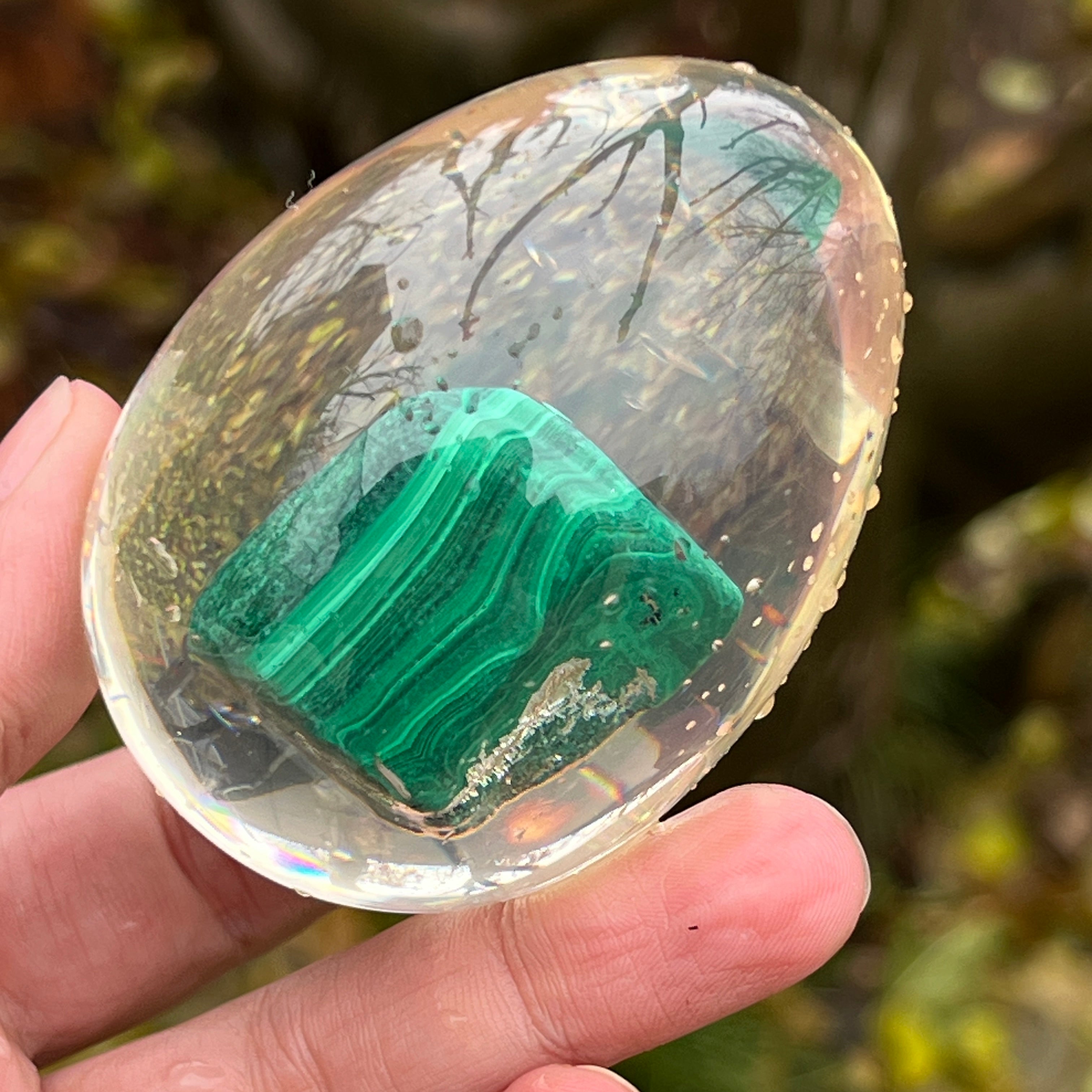 Malachite tojás Kongo gyantában modell 4, méret: 7*5 cm