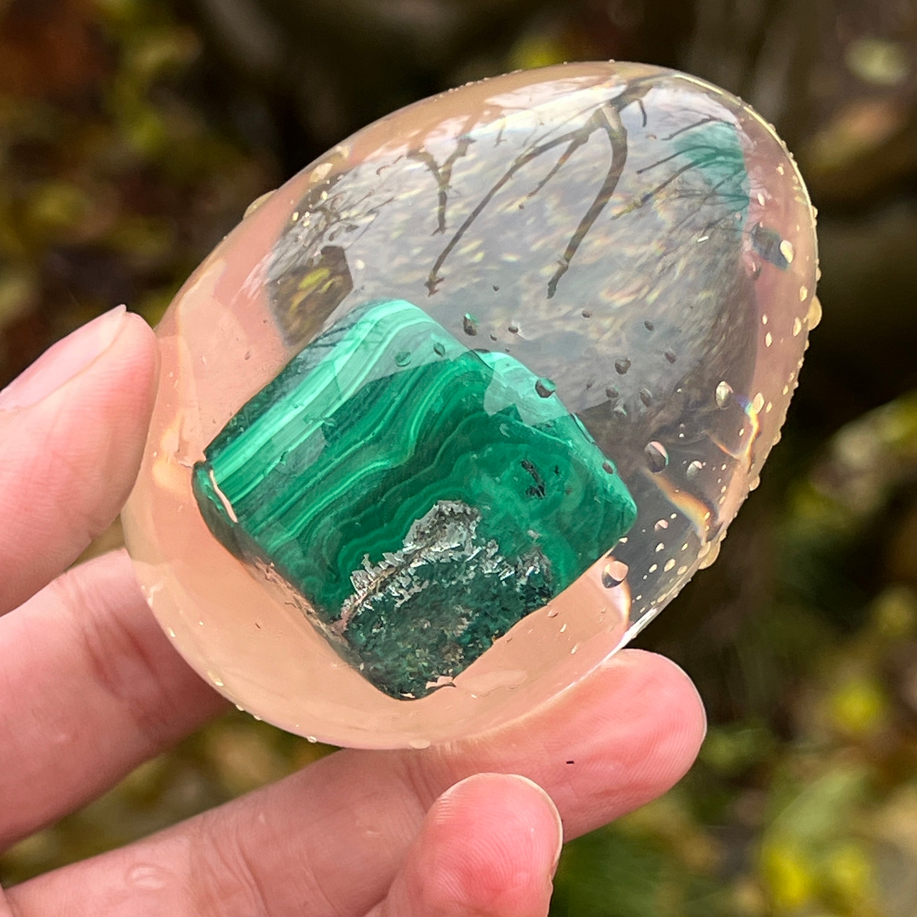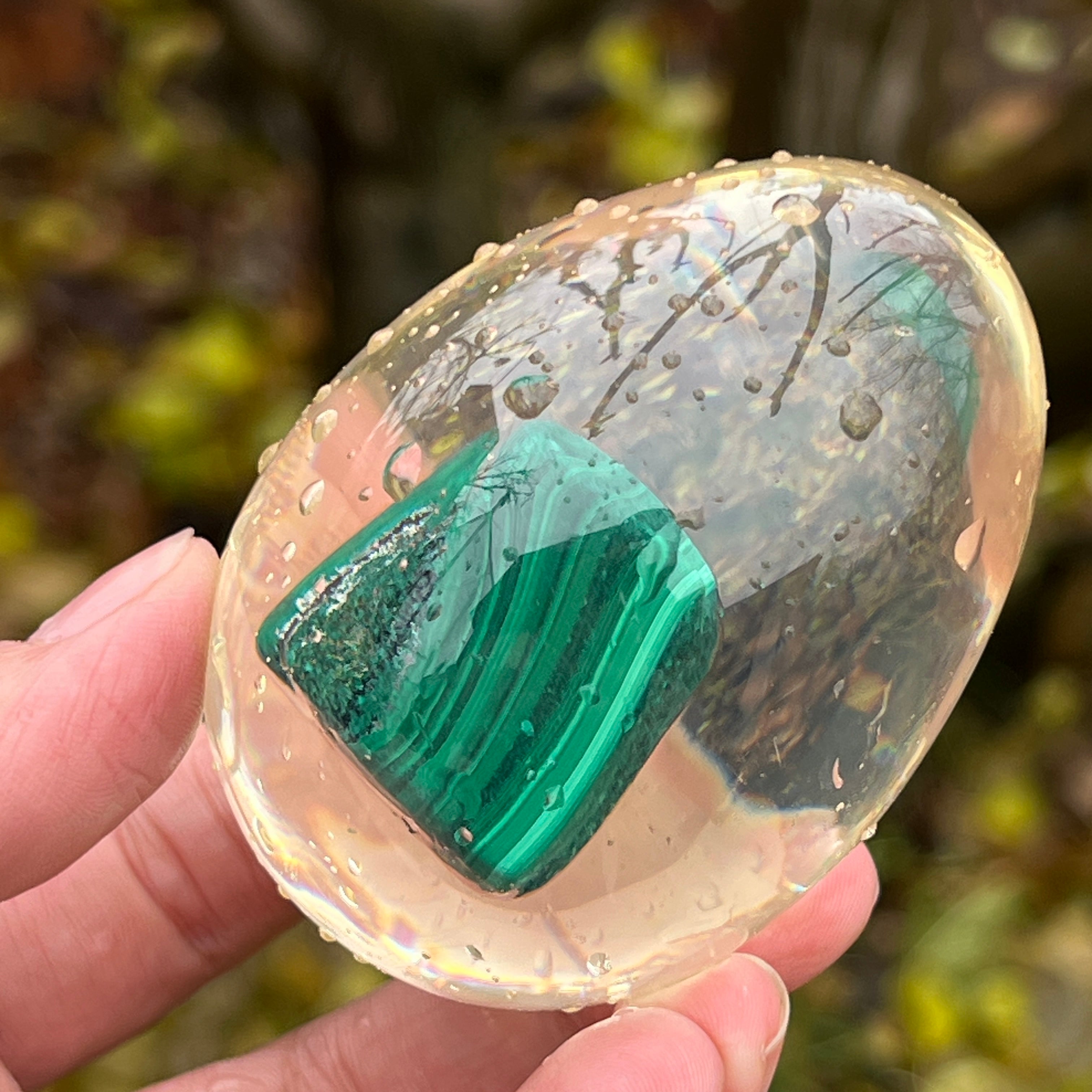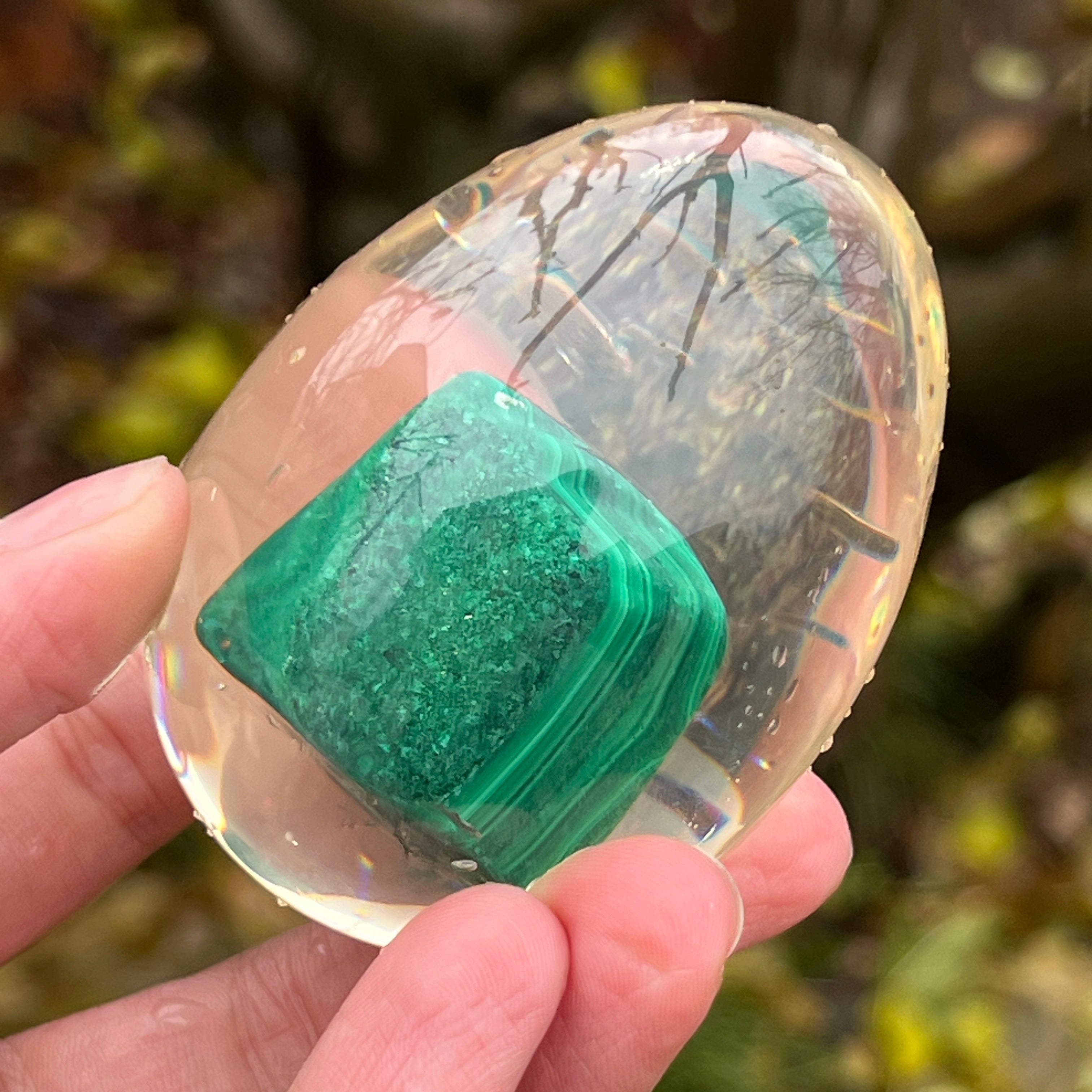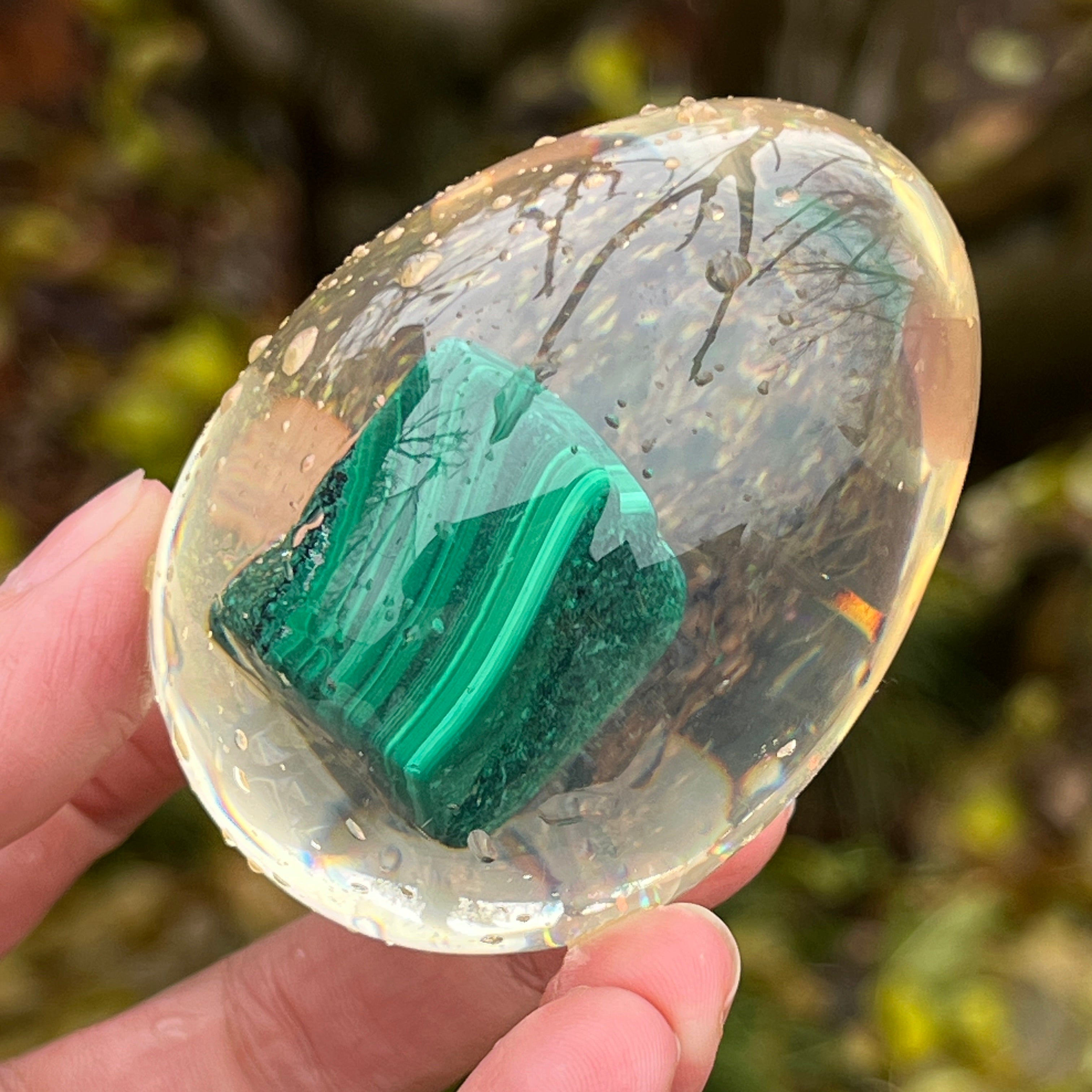 Malachite tojás Kongo gyantában modell 4, méret: 7*5 cm