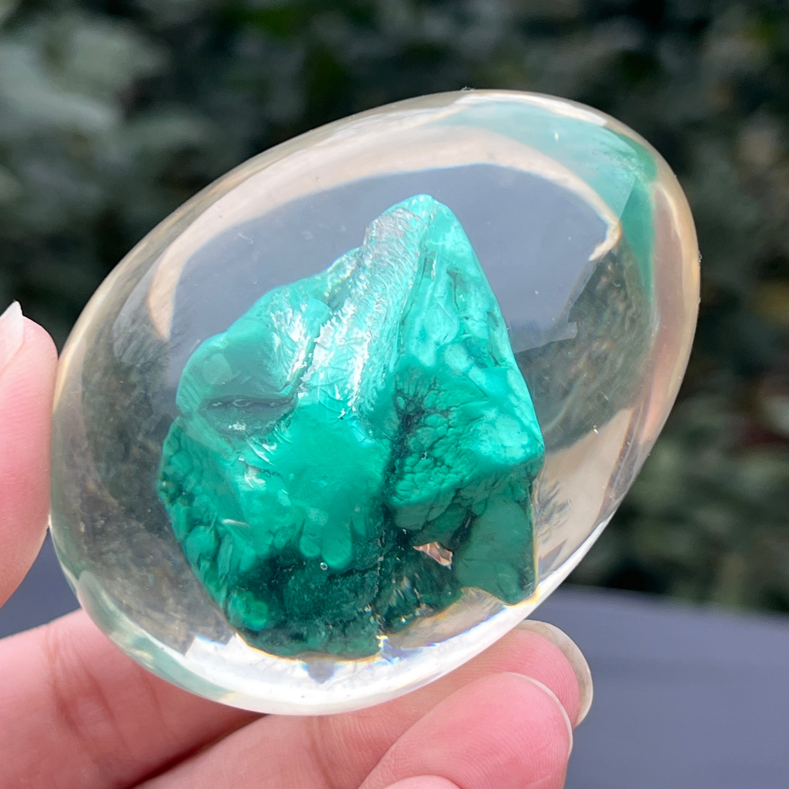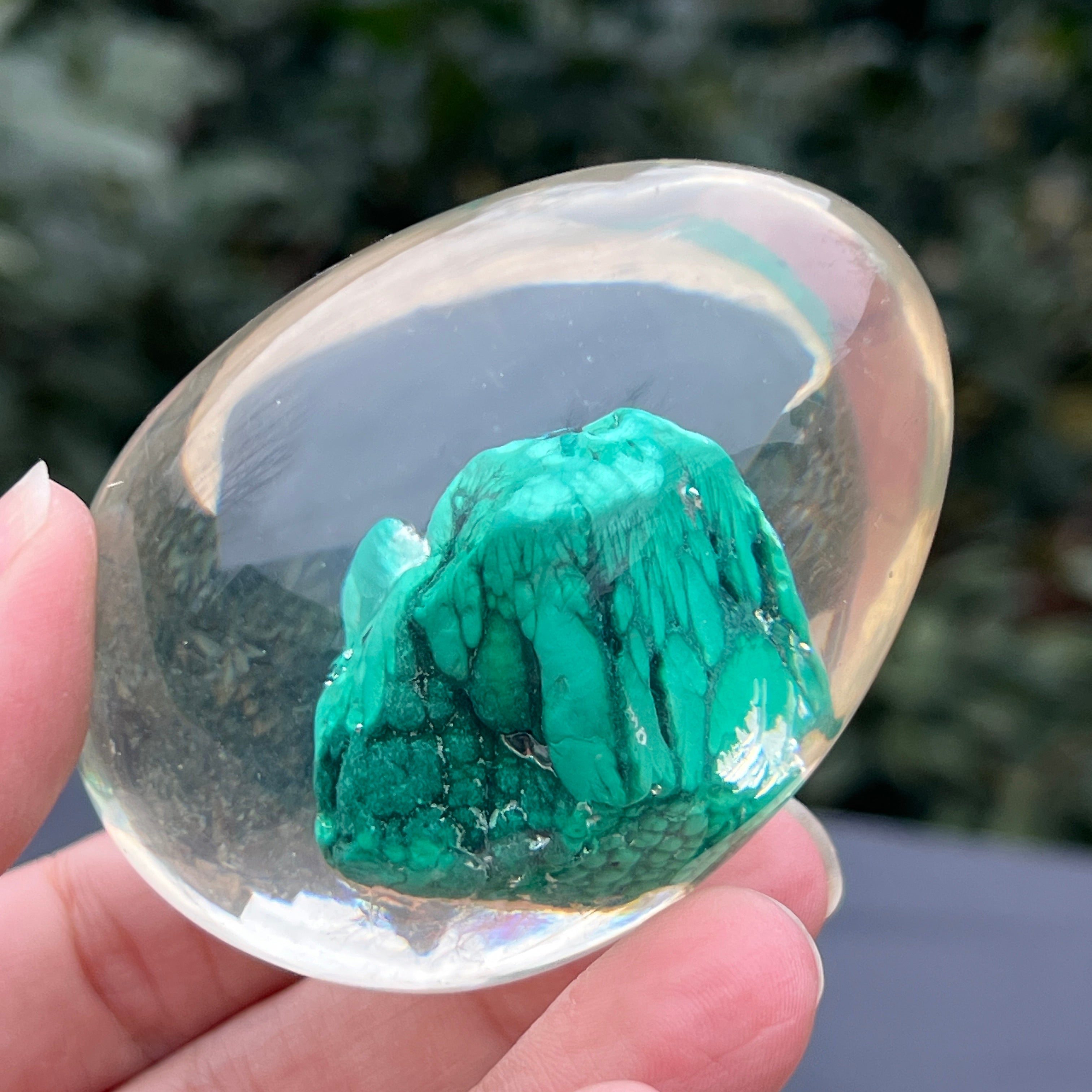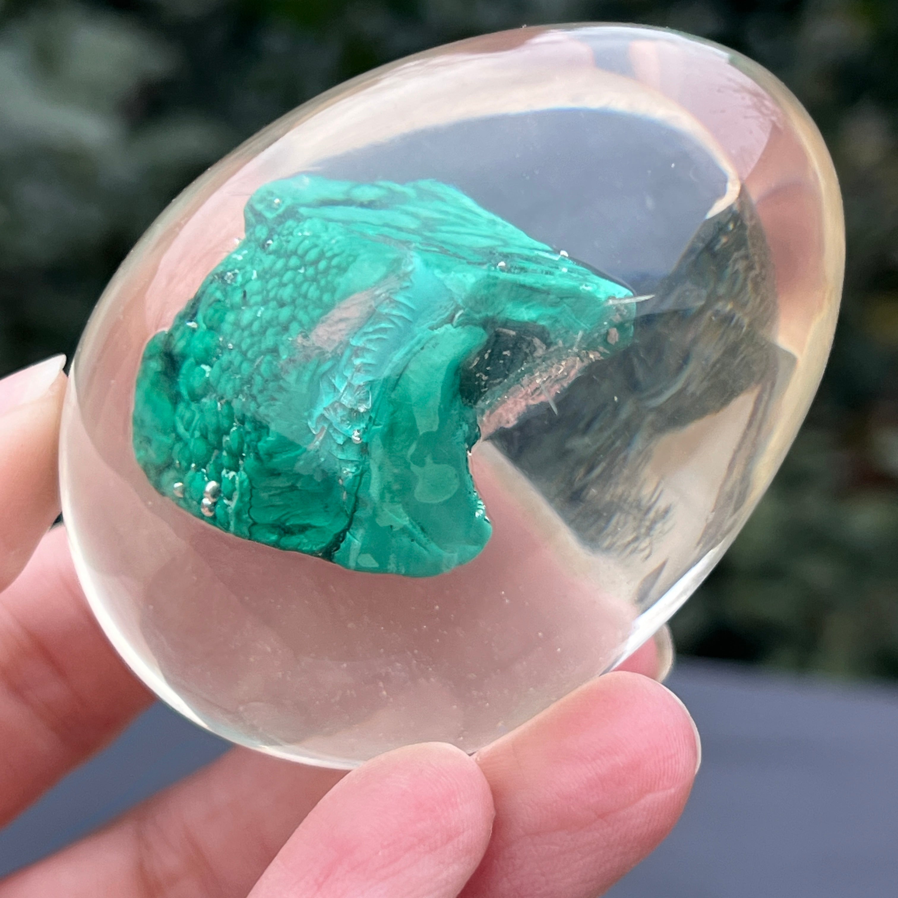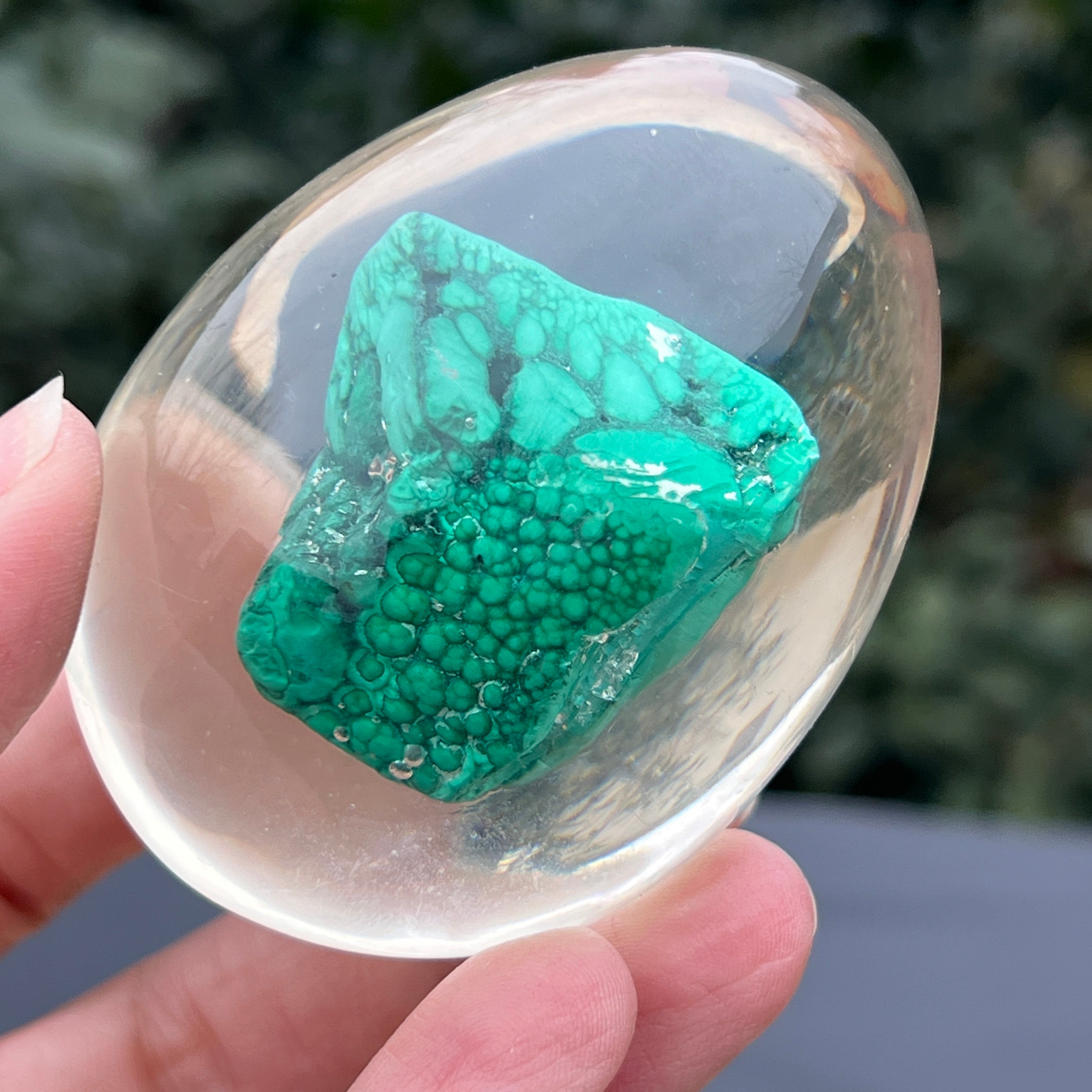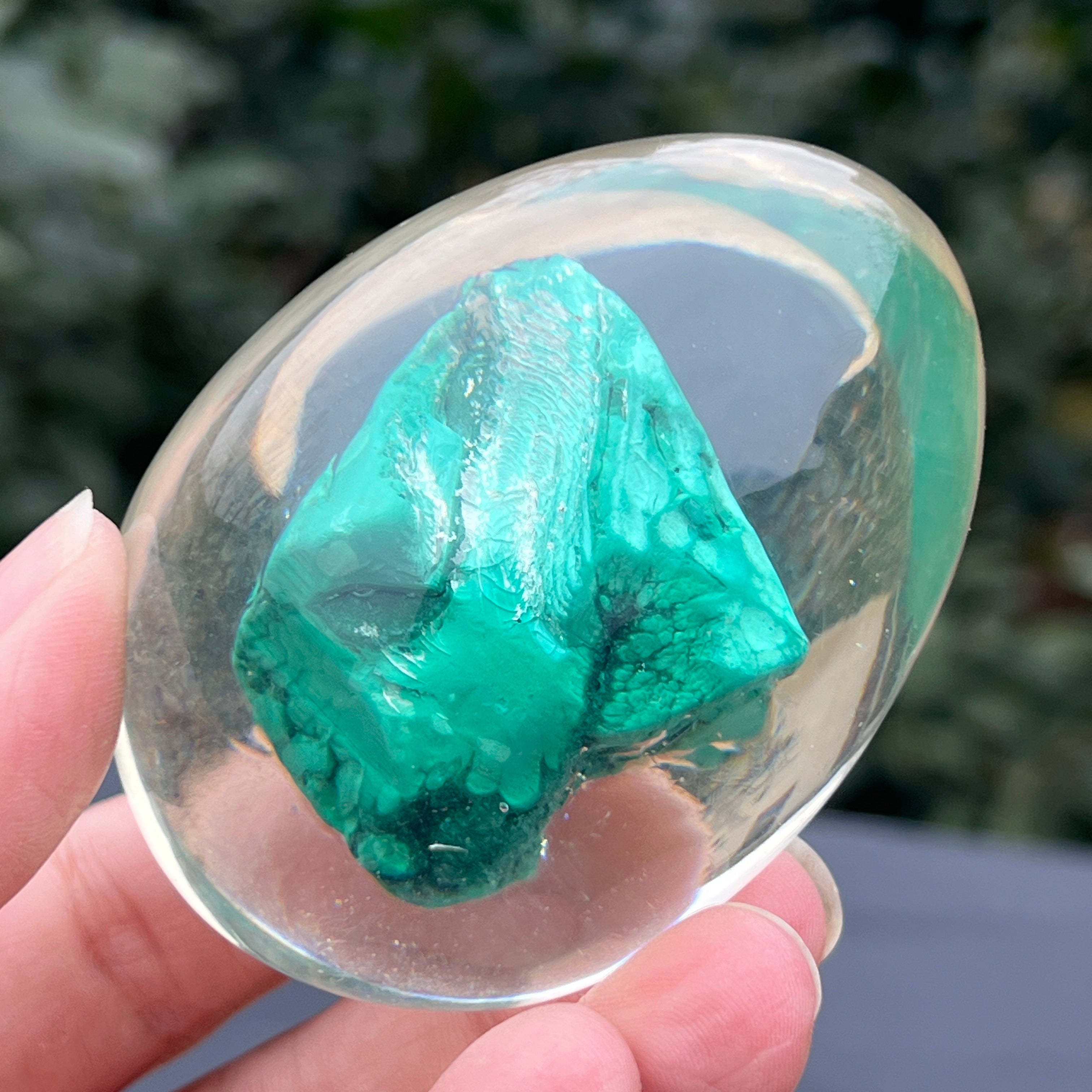 Kongói gyanta Malachit tojás 7-es modell, méret: 6,9*5,1 cm
