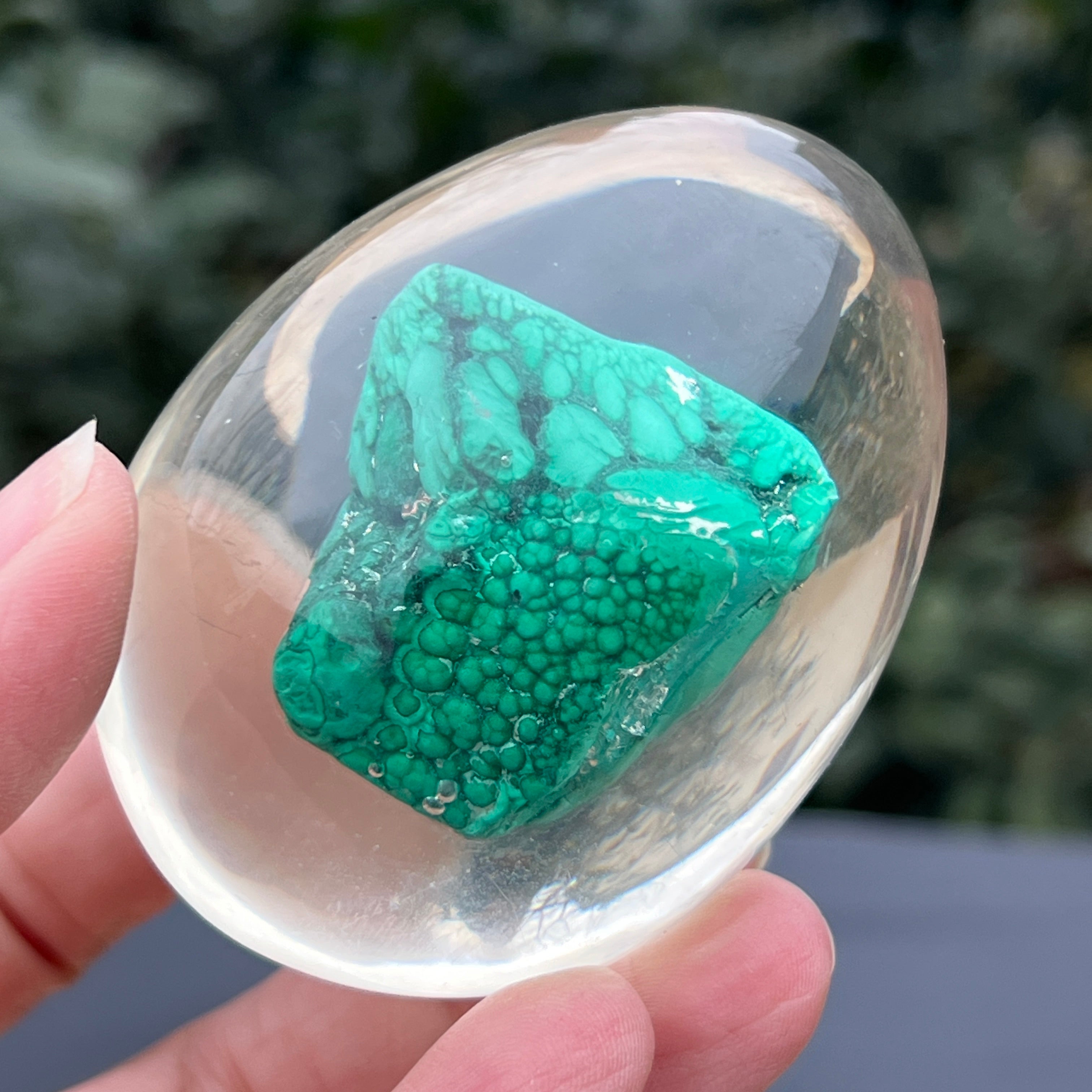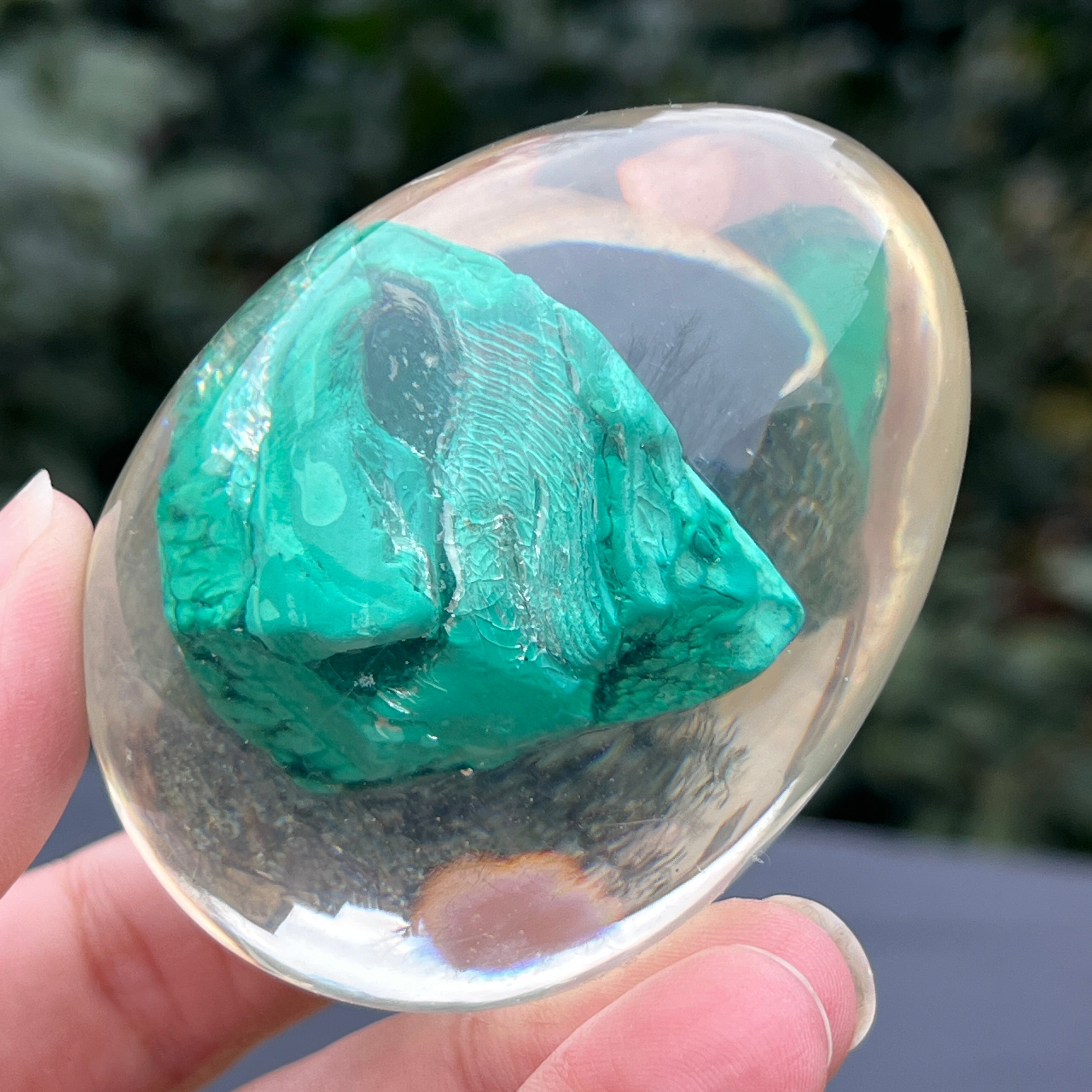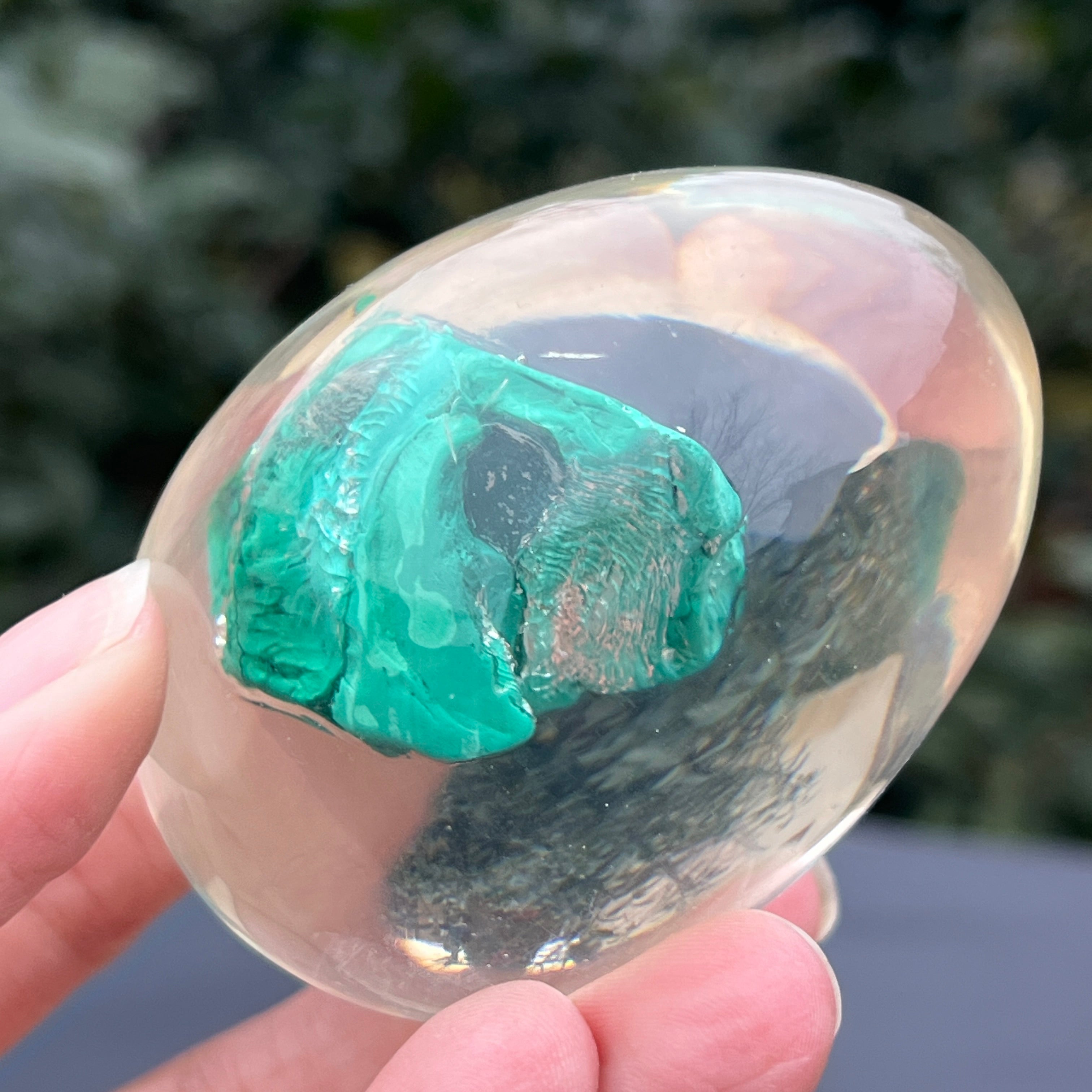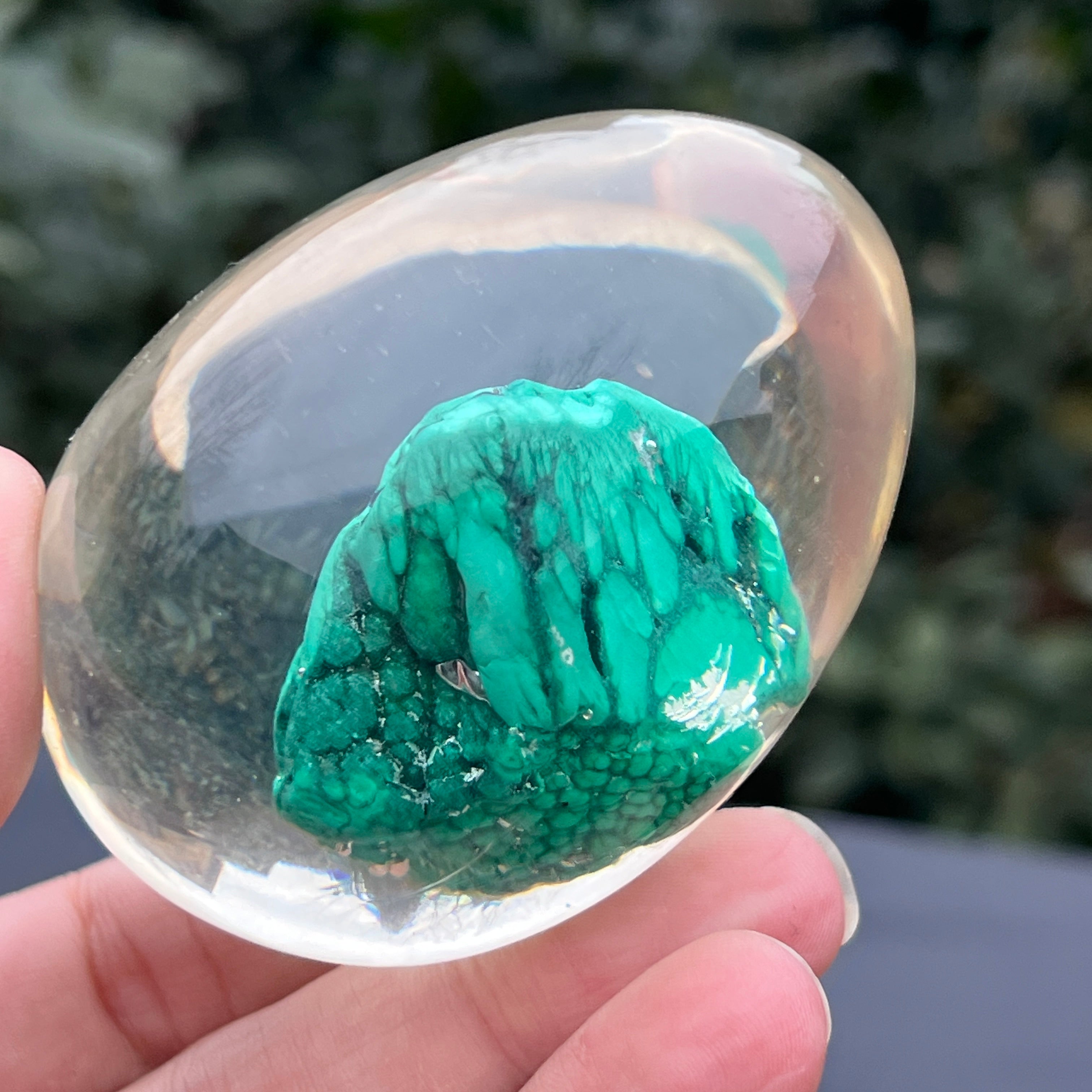 Kongói gyanta Malachit tojás 7-es modell, méret: 6,9*5,1 cm