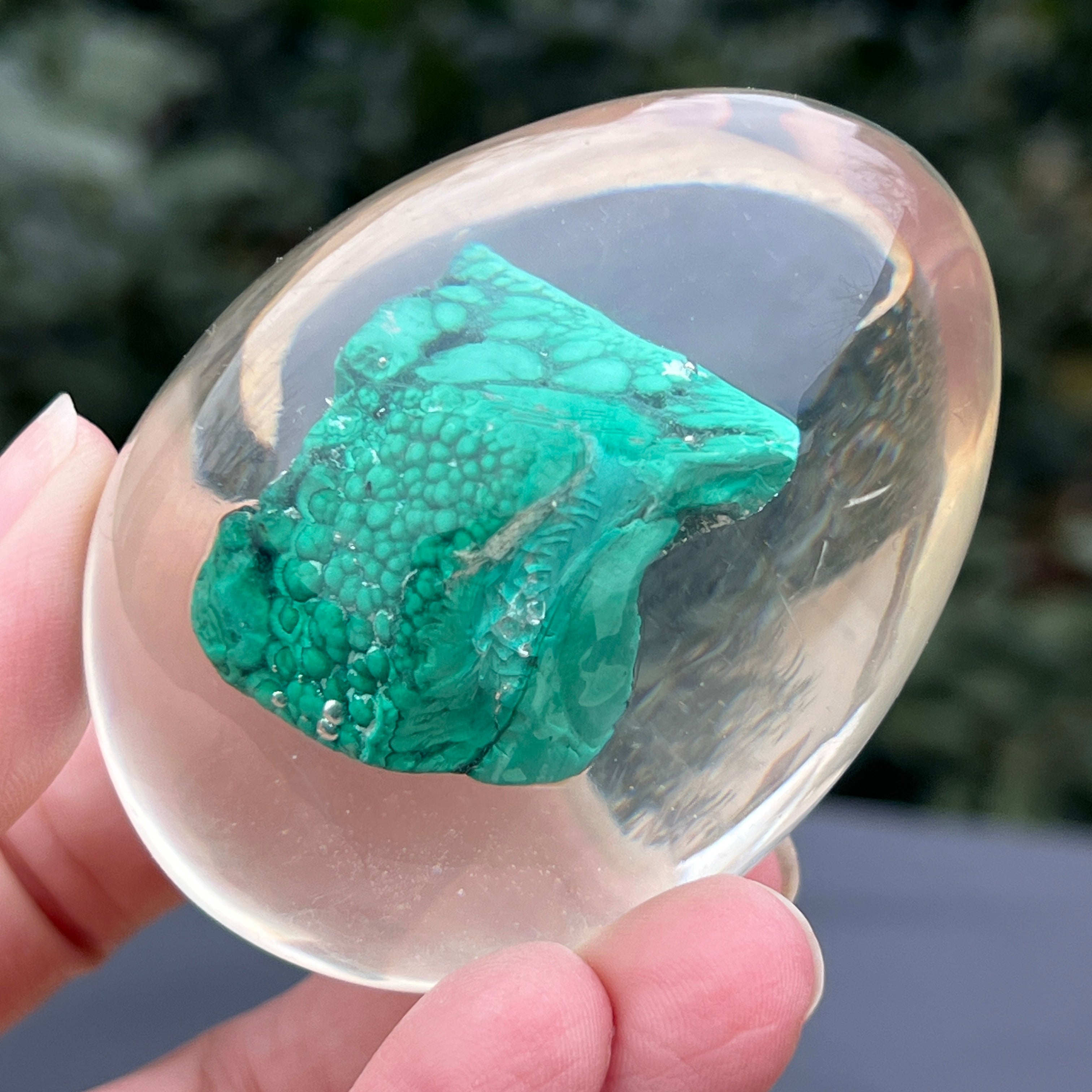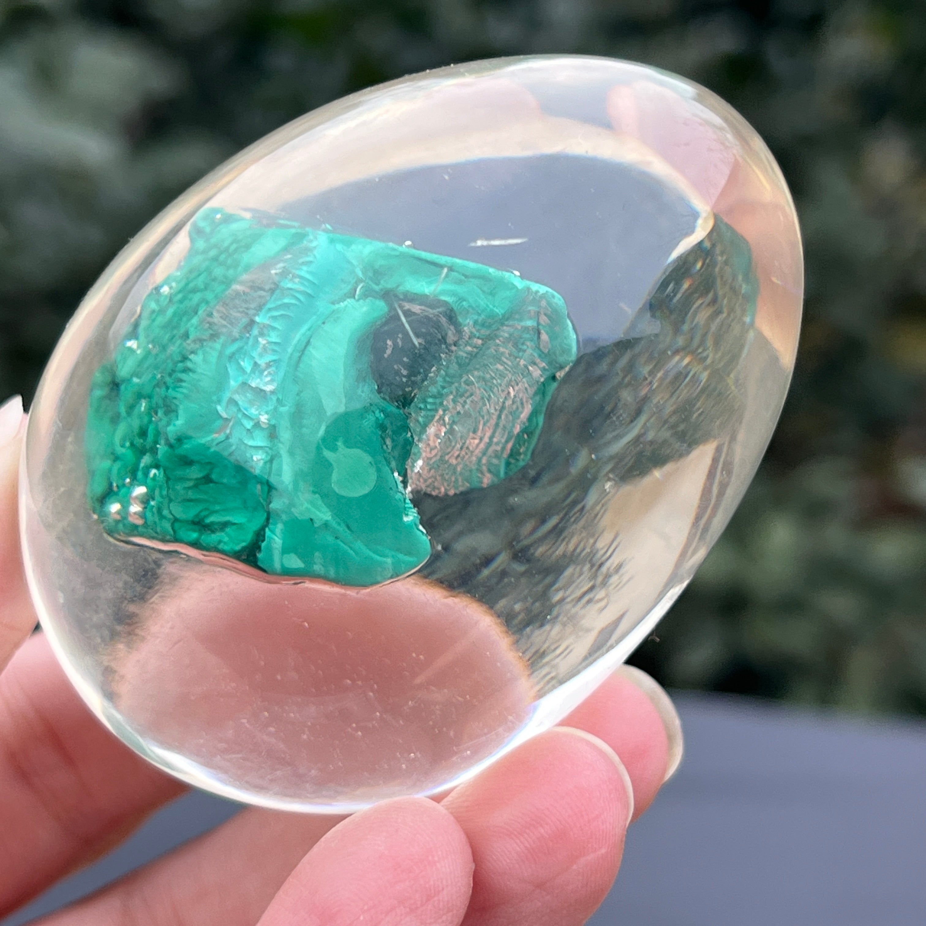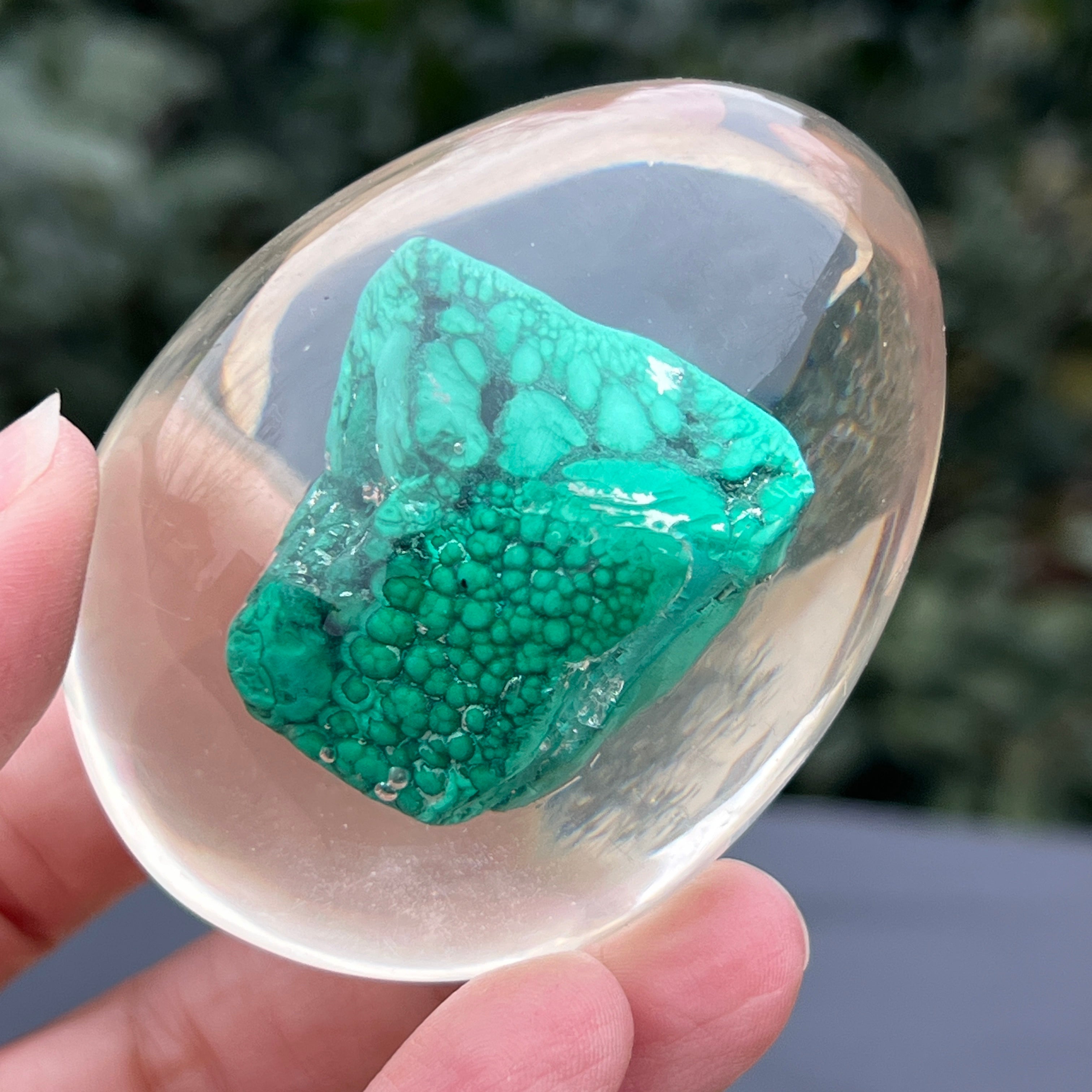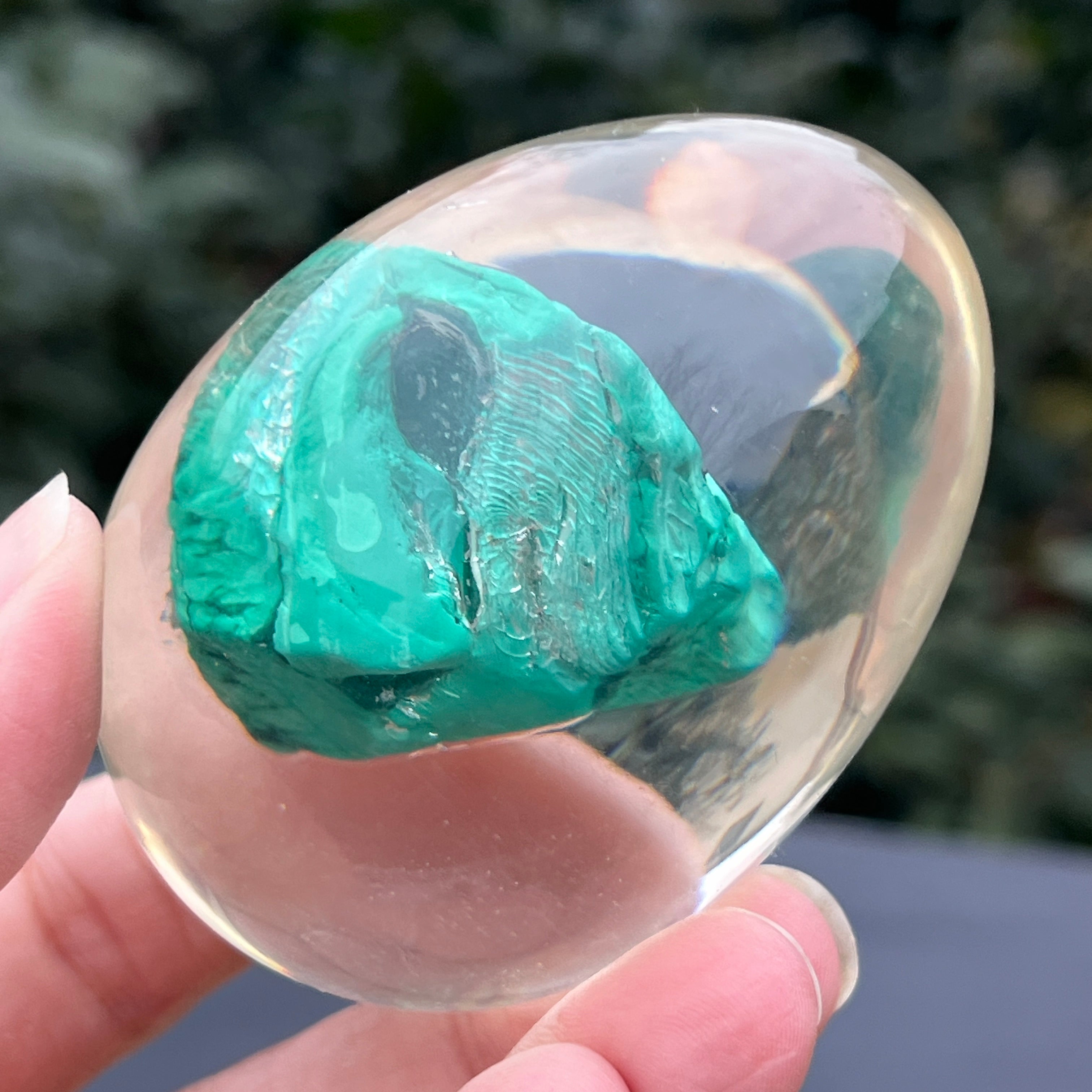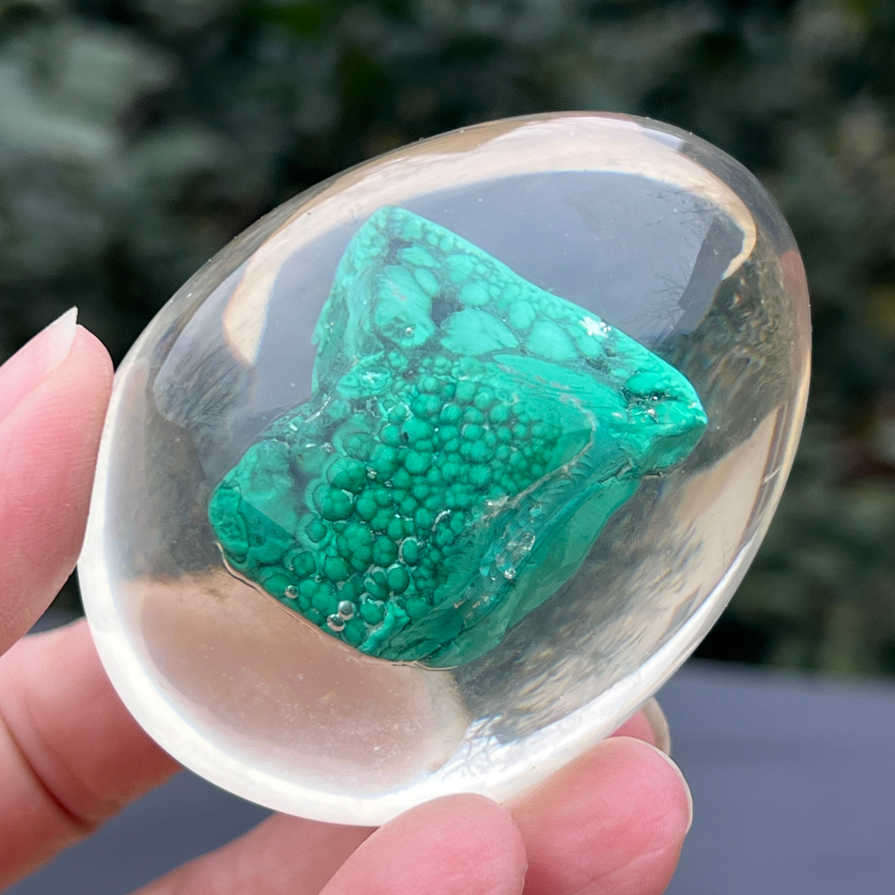 Kongói gyanta Malachit tojás 7-es modell, méret: 6,9*5,1 cm