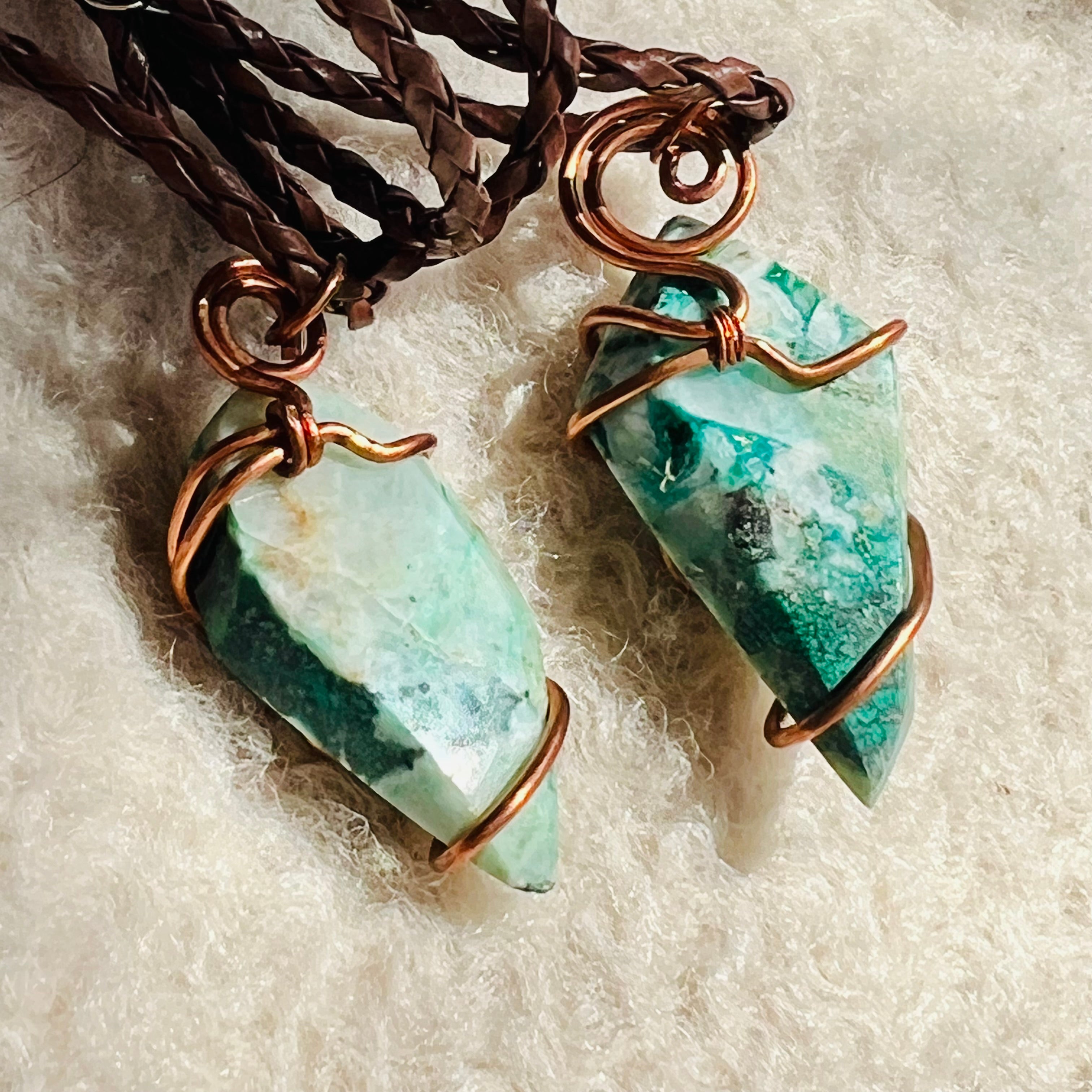 Medálnyaklánc művészi dróttal, fonott barna zsinórral, kézzel készítve.