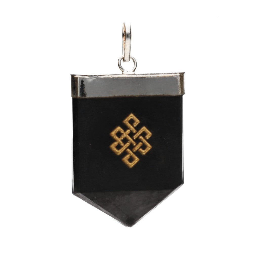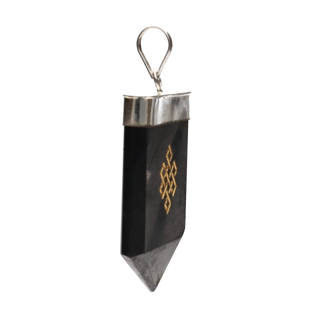 Ez a medál az Infinity Knot (Végtelen Csomó)szimbólummal, természetes sunguittból készült, és ezüstözött sárgaréz foglalatban van, ötvözi a kristály védelmező energiáját a keleti spirituális hagyományok egyik legmélyebb szimbólumával. A dizájnja az összefüggés, az összekapcsolódás és az egyensúly gondolatát idézi minden dolog között.