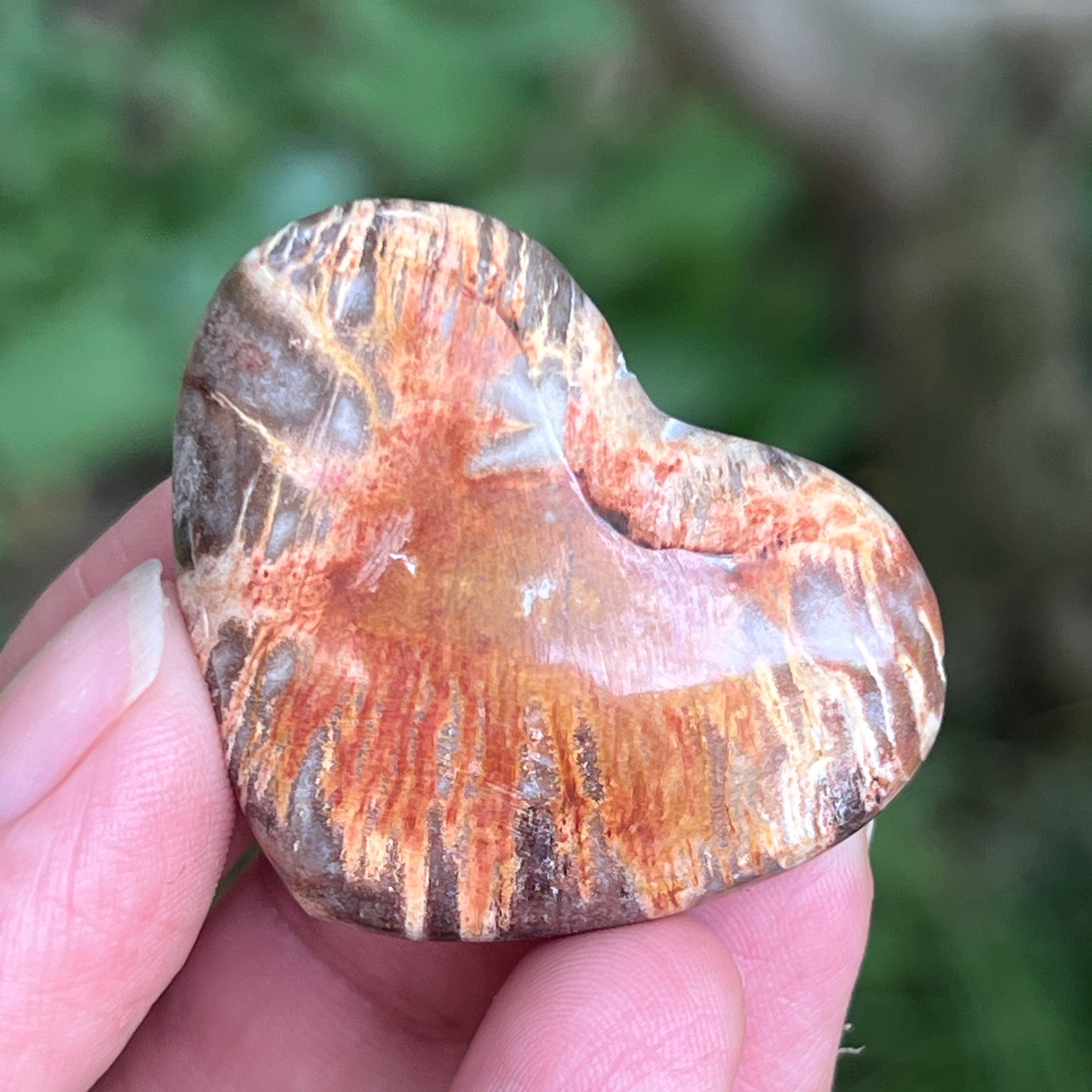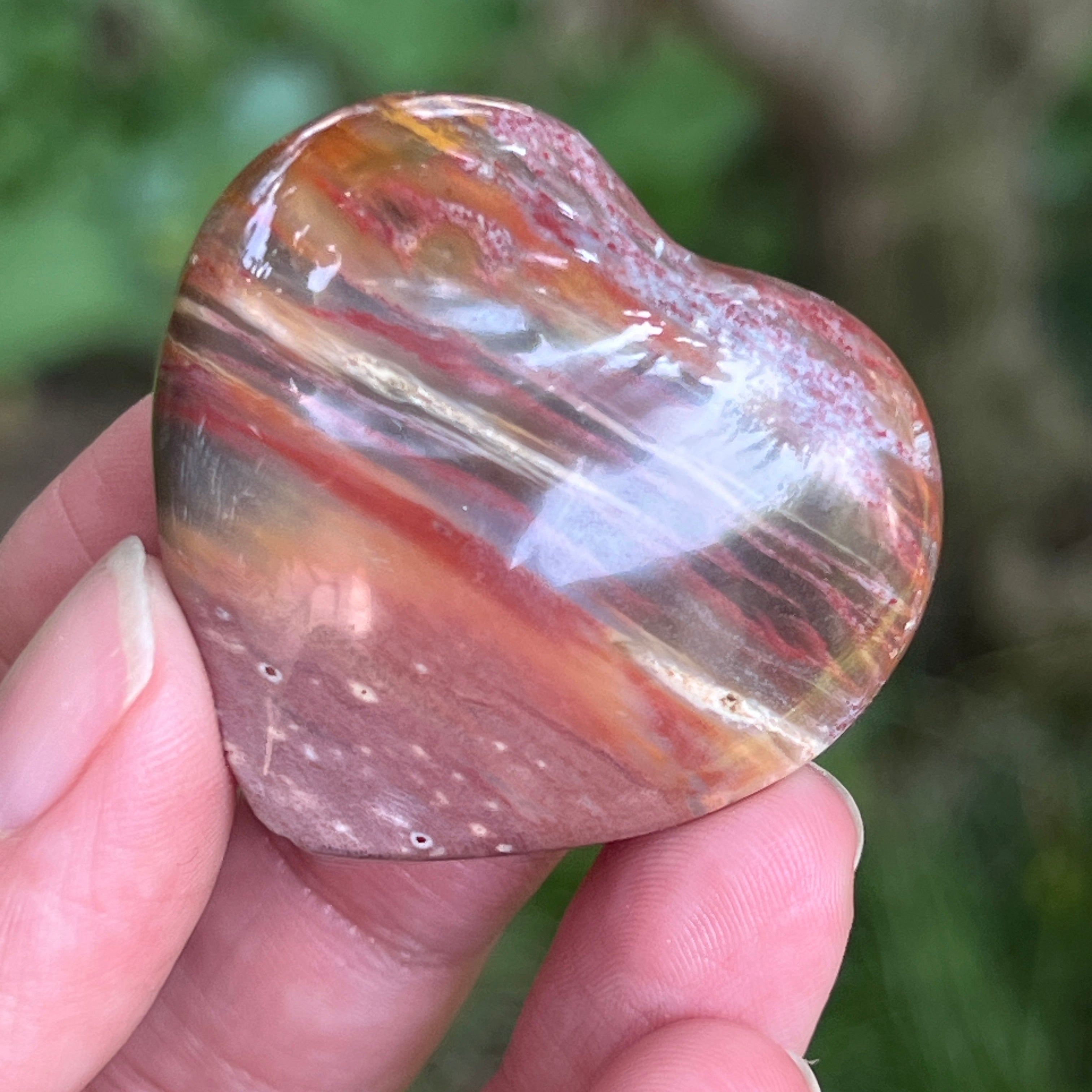 Idővel az ásványi szennyeződések miatt megkövesedett faszínek alakulnak ki: a vas vöröses vagy narancssárga árnyalatokat ad, a mangán fekete és lila árnyalatokat, a réz pedig zöldes vagy kékes árnyalatokat adhat. Bár első ránézésre fának tűnik, ez a kő teljesen mineralizált, amelynek a Mohs keménysége körülbelül 6,5-7, hasonló a kvarchoz.