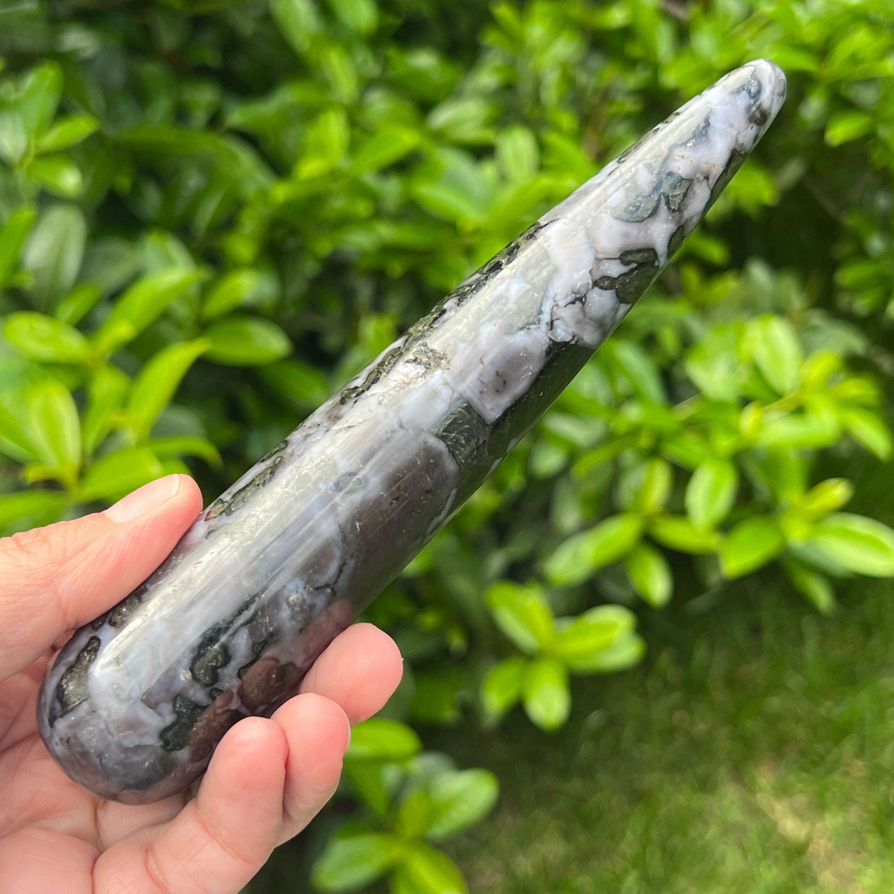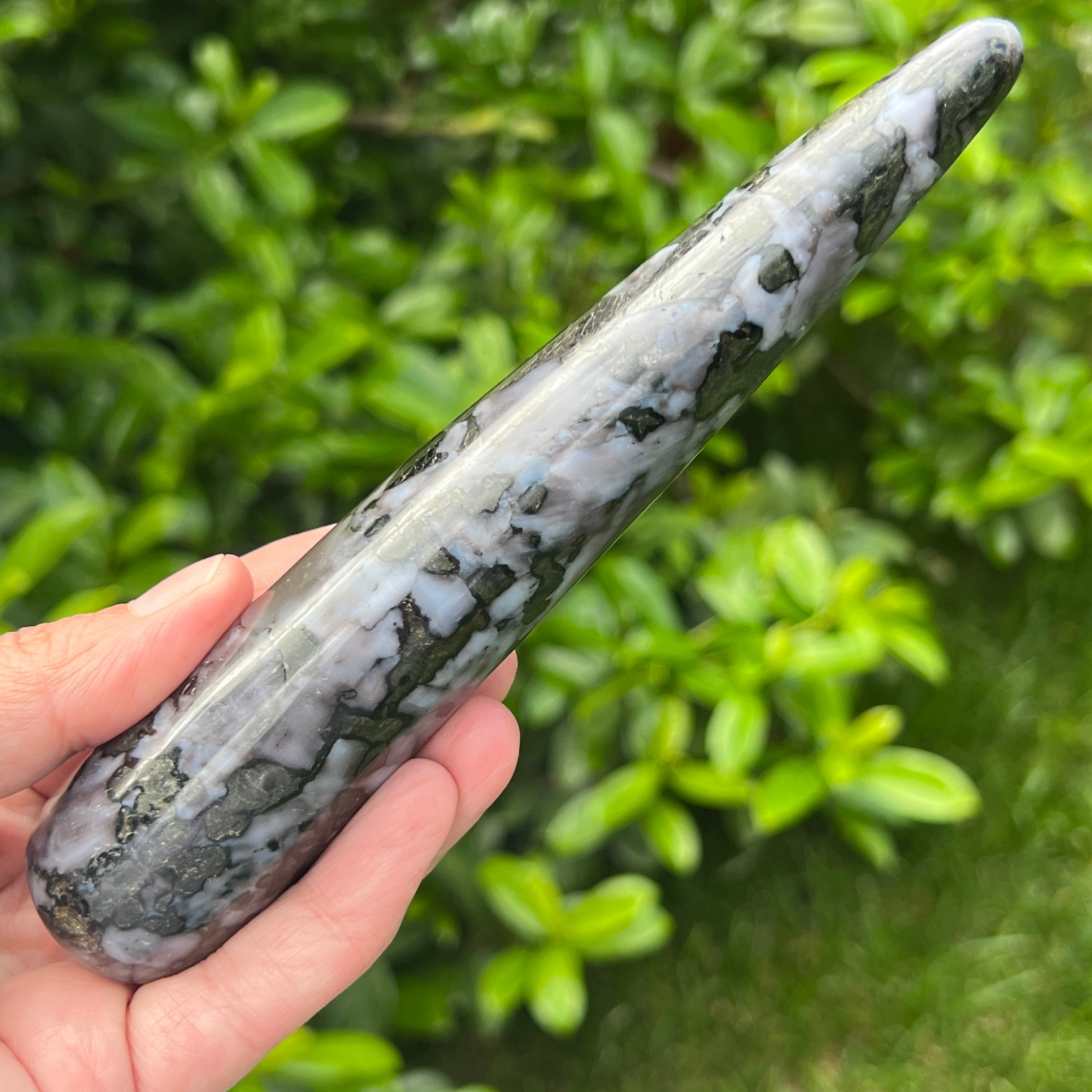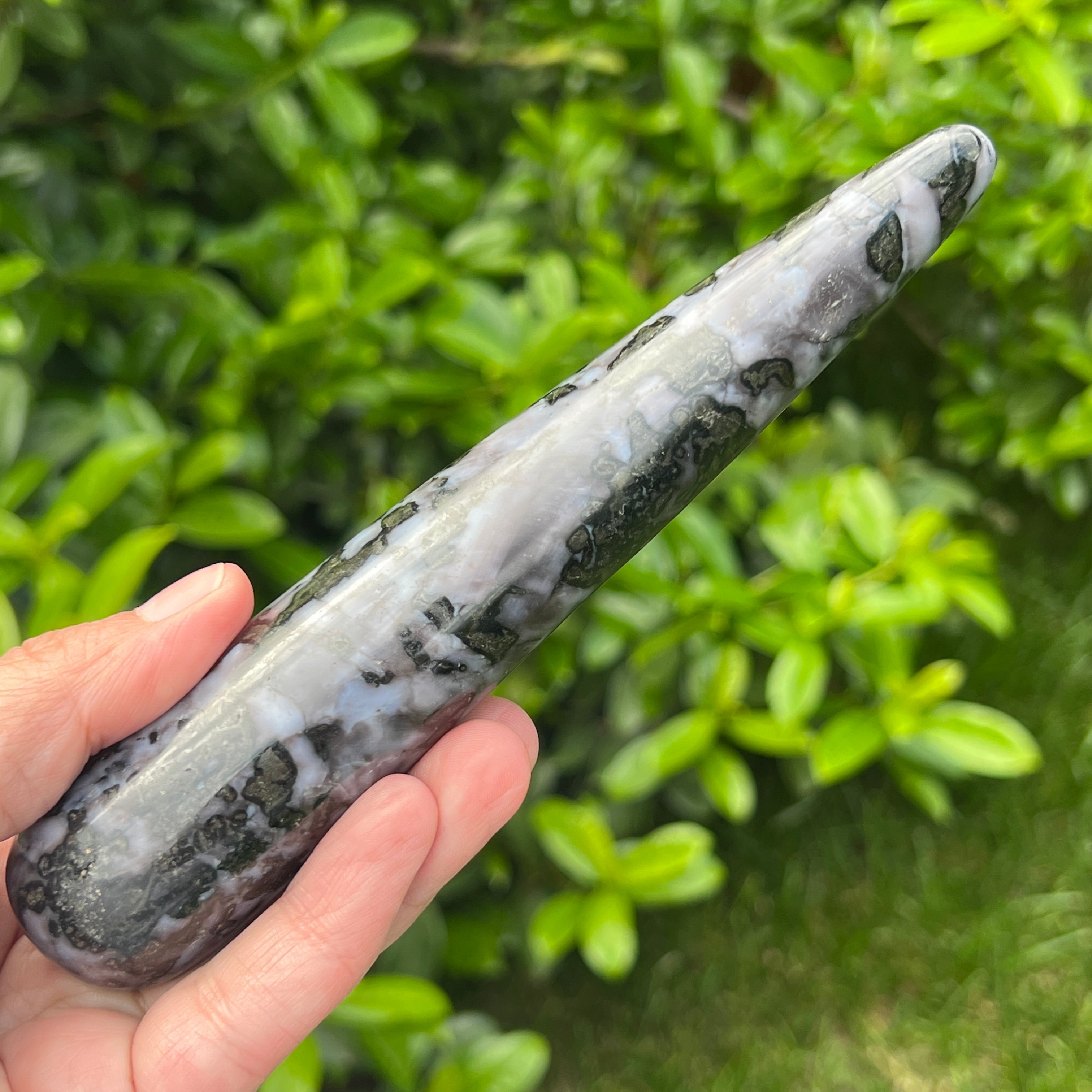 A merlinit ritka és lenyűgöző féldrágakő, amelyet kontrasztos színei, a fekete és a fehér kombinációja miatt ismernek, ami egyedi megjelenést kölcsönöz neki. Az opál dendritikus változatának vagy kvarc és egyéb ásványok keverékének tekintik, és összetett szerkezete miatt értékelik mind szépsége, mind a feltehetőleg energetikai tulajdonságai miatt. A merlinitet a kristályterápia világában misztikus energiái és az intuícióval, a tisztánlátással és a spirituális tudással való kapcsolata miatt ismerik.