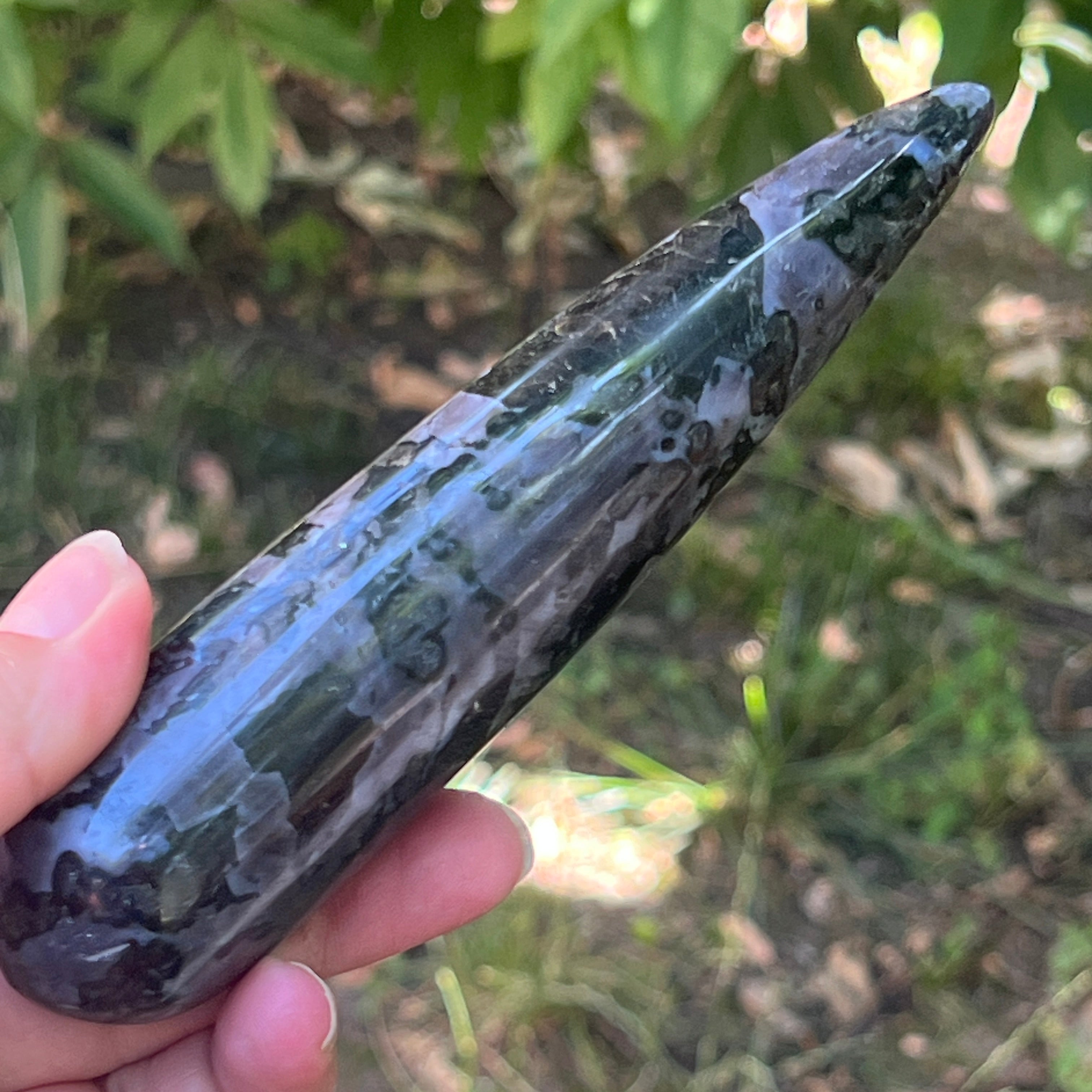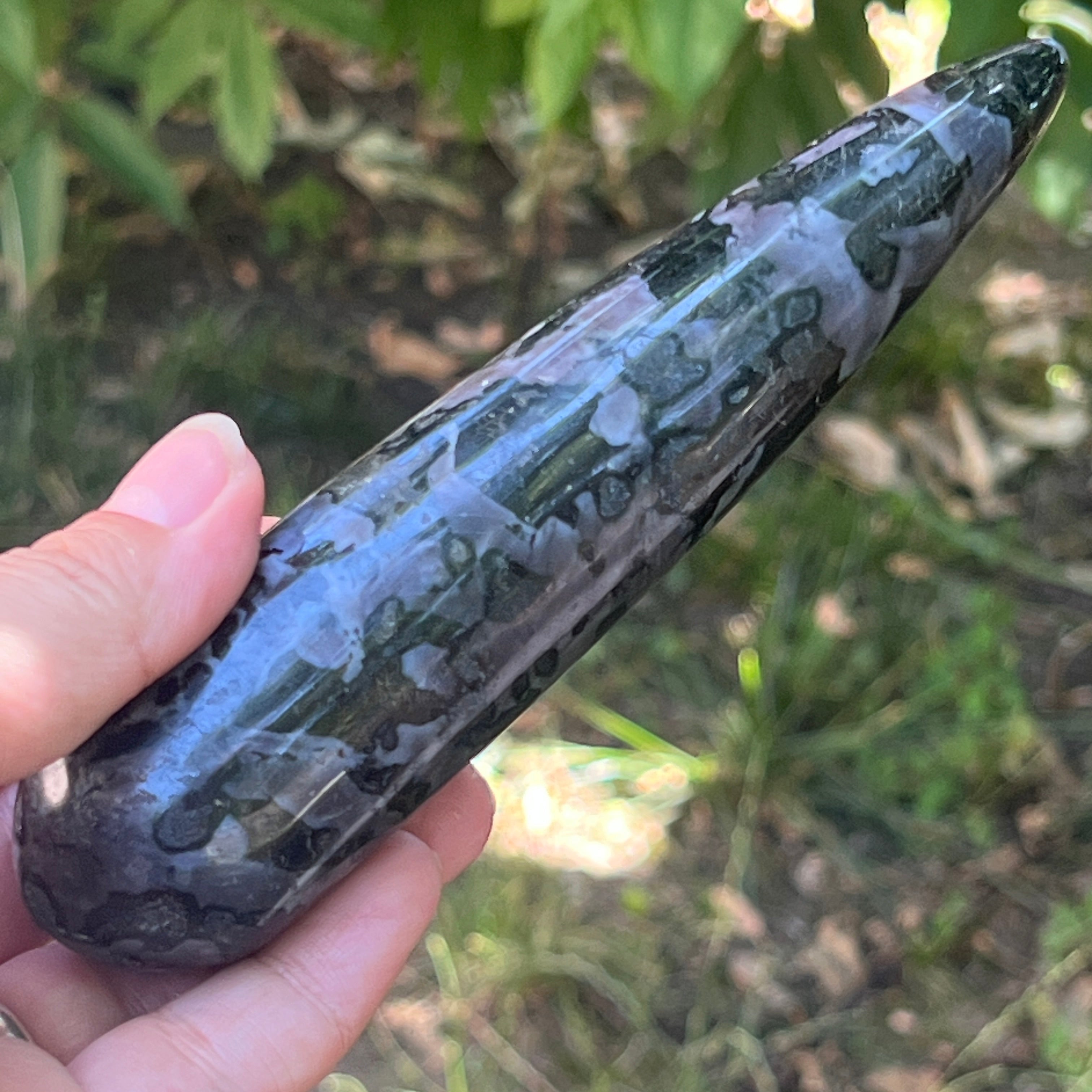 A merlinit ritka és lenyűgöző féldrágakő, amelyet kontrasztos színei, a fekete és a fehér tesz egyedivé. Általában dendritikus opál változatként vagy kvarc és más ásványok kombinációjaként ismert, és összetett szerkezete miatt nemcsak szépsége, hanem állítólagos energetikai tulajdonságai miatt is nagyra értékelik. A merlinit a kristályterápiában misztikus energiái és az intuícióval, jövőbelátással és spirituális tudással való kapcsolata miatt ismert.