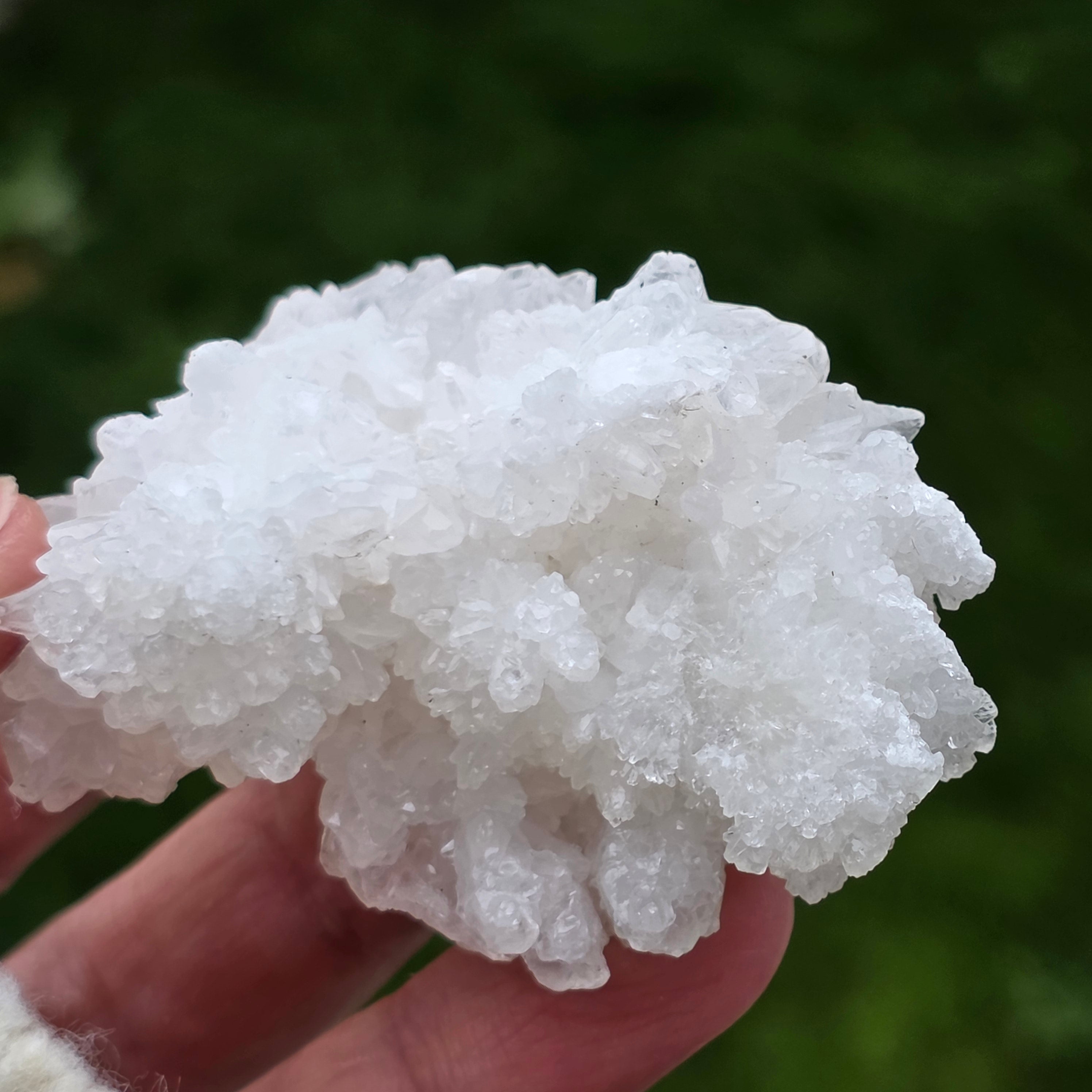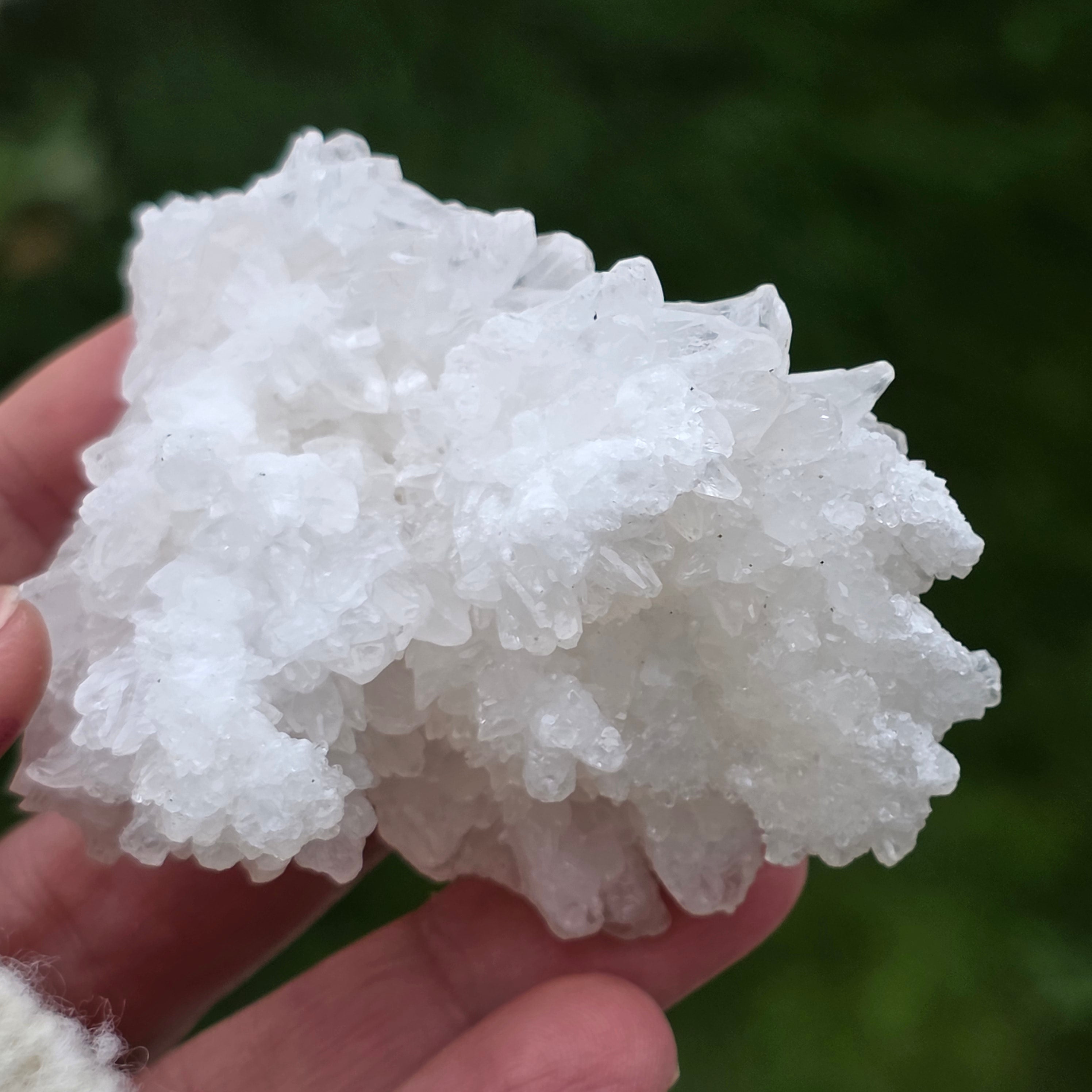A kristályok szabálytalan, lekerekített struktúrákbanhelyezkednek el, enyhén csillogó felülettel, emlékeztetve a barlangok belsejében található képződményekre. A gazdag textúra és a jól definiált térfogat minden példánynak autentikus és kifejező karaktert kölcsönöz, amely nagyra értékelt az ásványgyűjteményekben és természetes dekorációként.