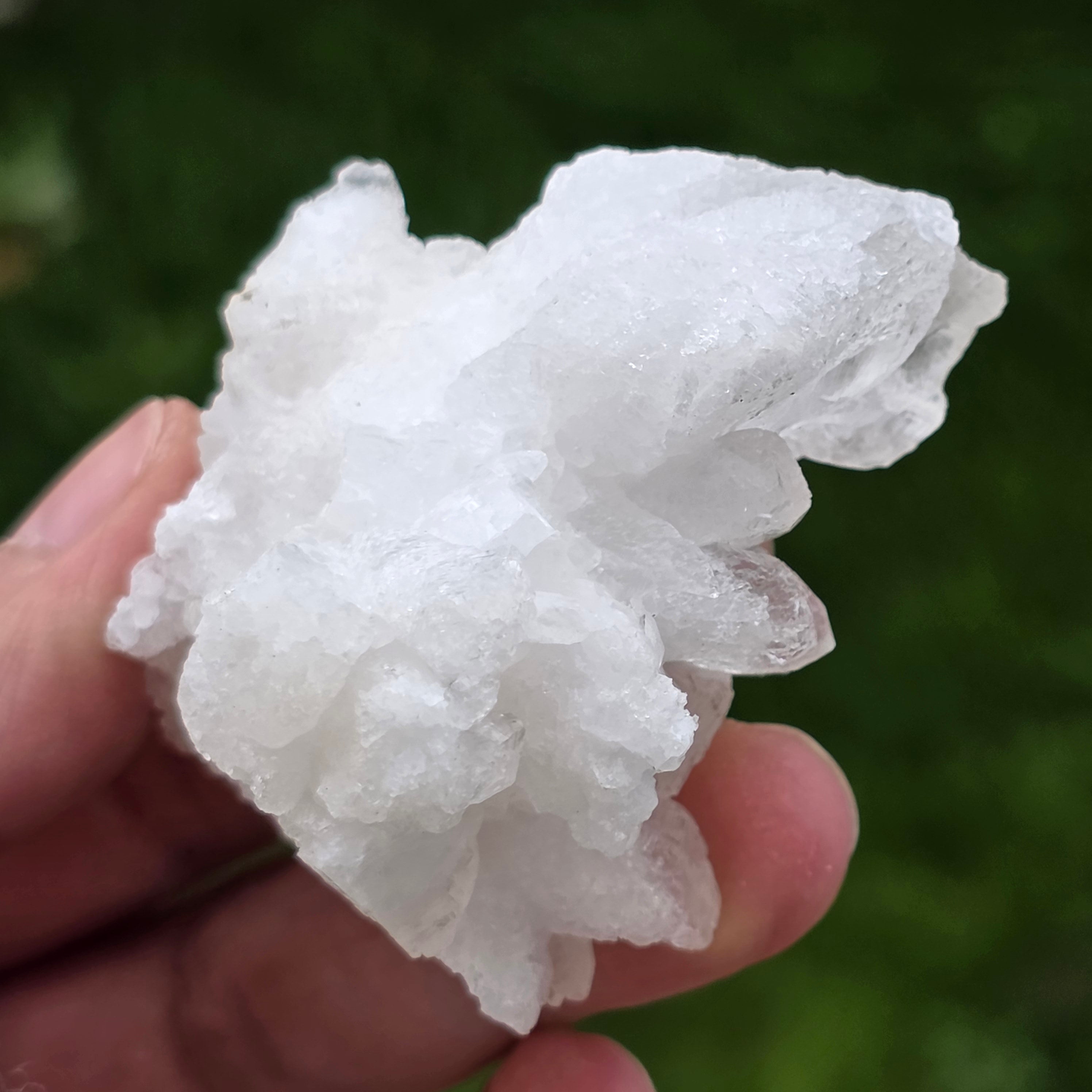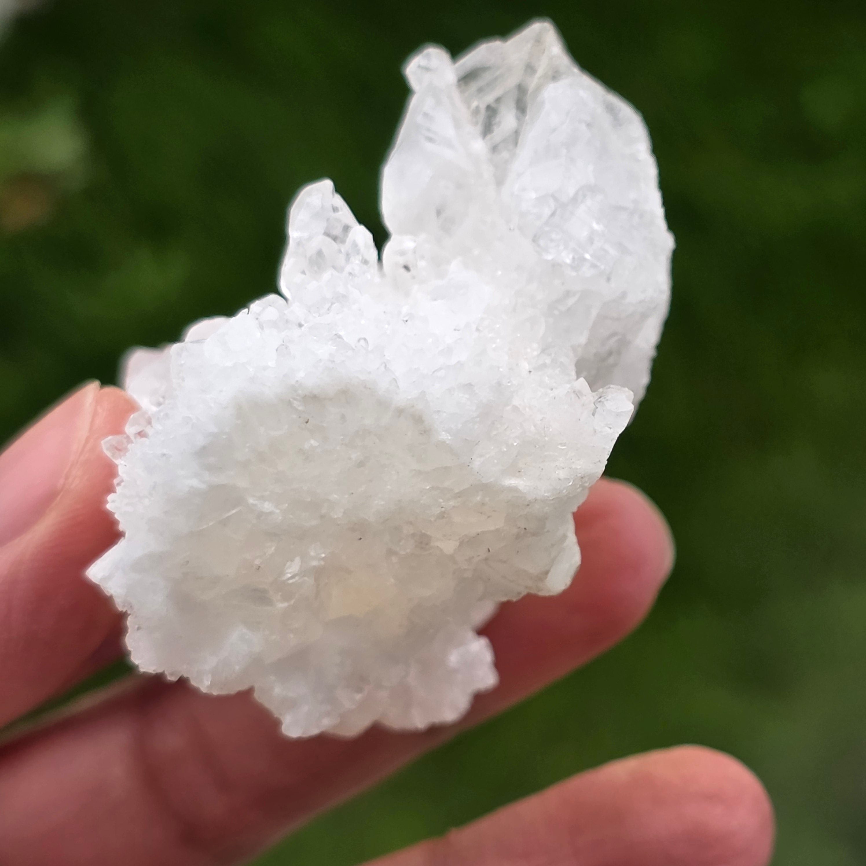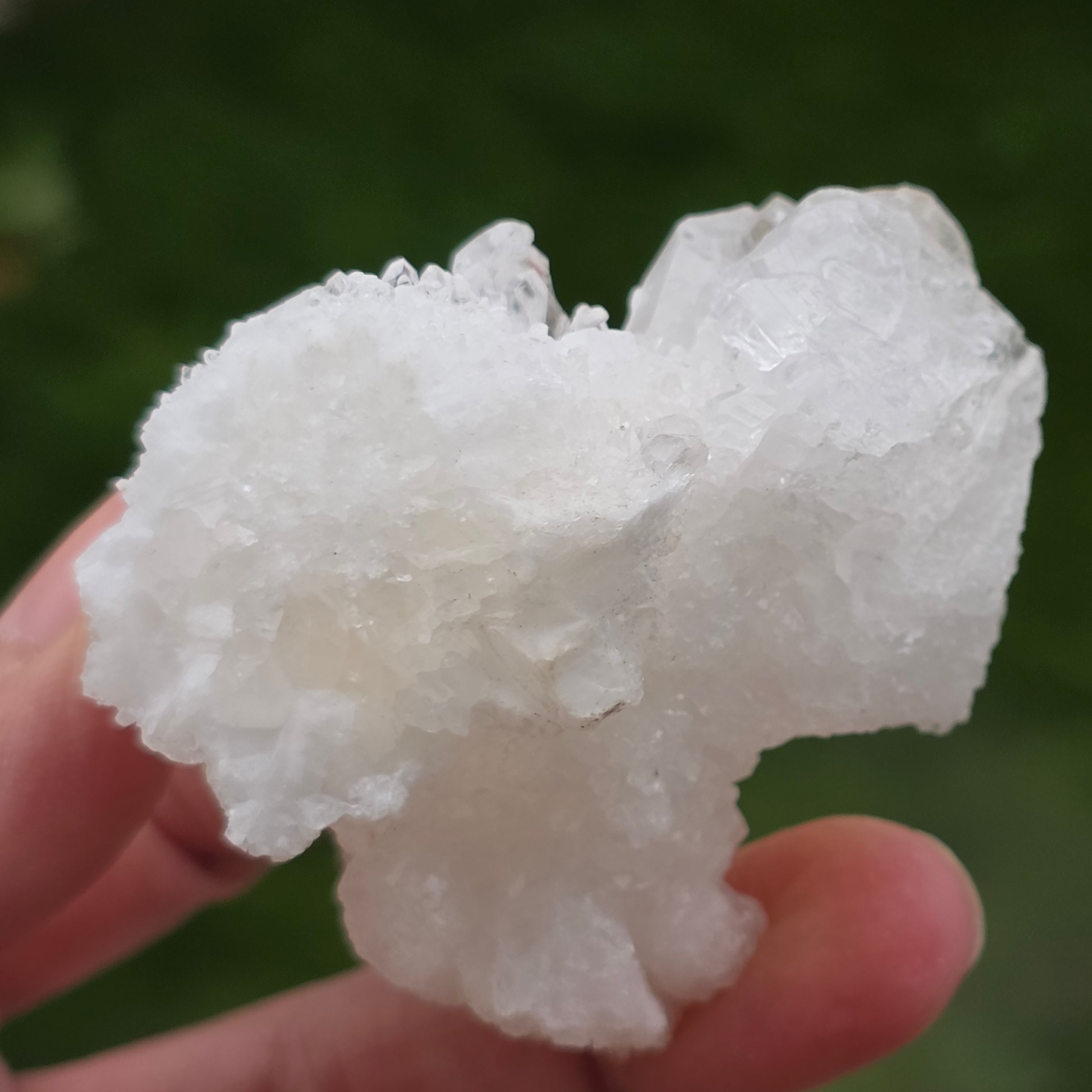 A kristályok szabálytalan, lekerekített struktúrákbanhelyezkednek el, enyhén csillogó felülettel, emlékeztetve a barlangok belsejében található képződményekre. A gazdag textúra és a jól definiált térfogat minden példánynak autentikus és kifejező karaktert kölcsönöz, amely nagyra értékelt az ásványgyűjteményekben és természetes dekorációként.