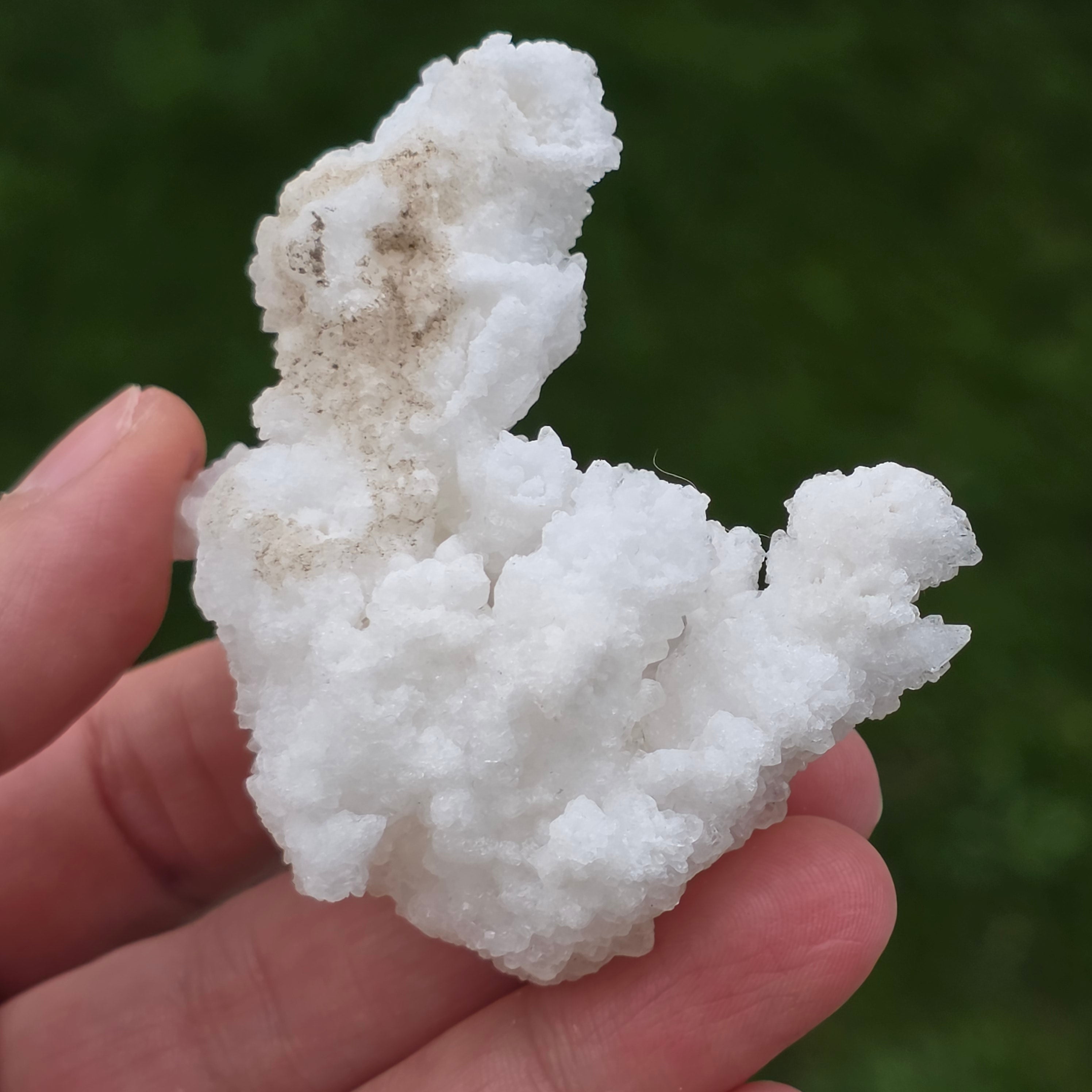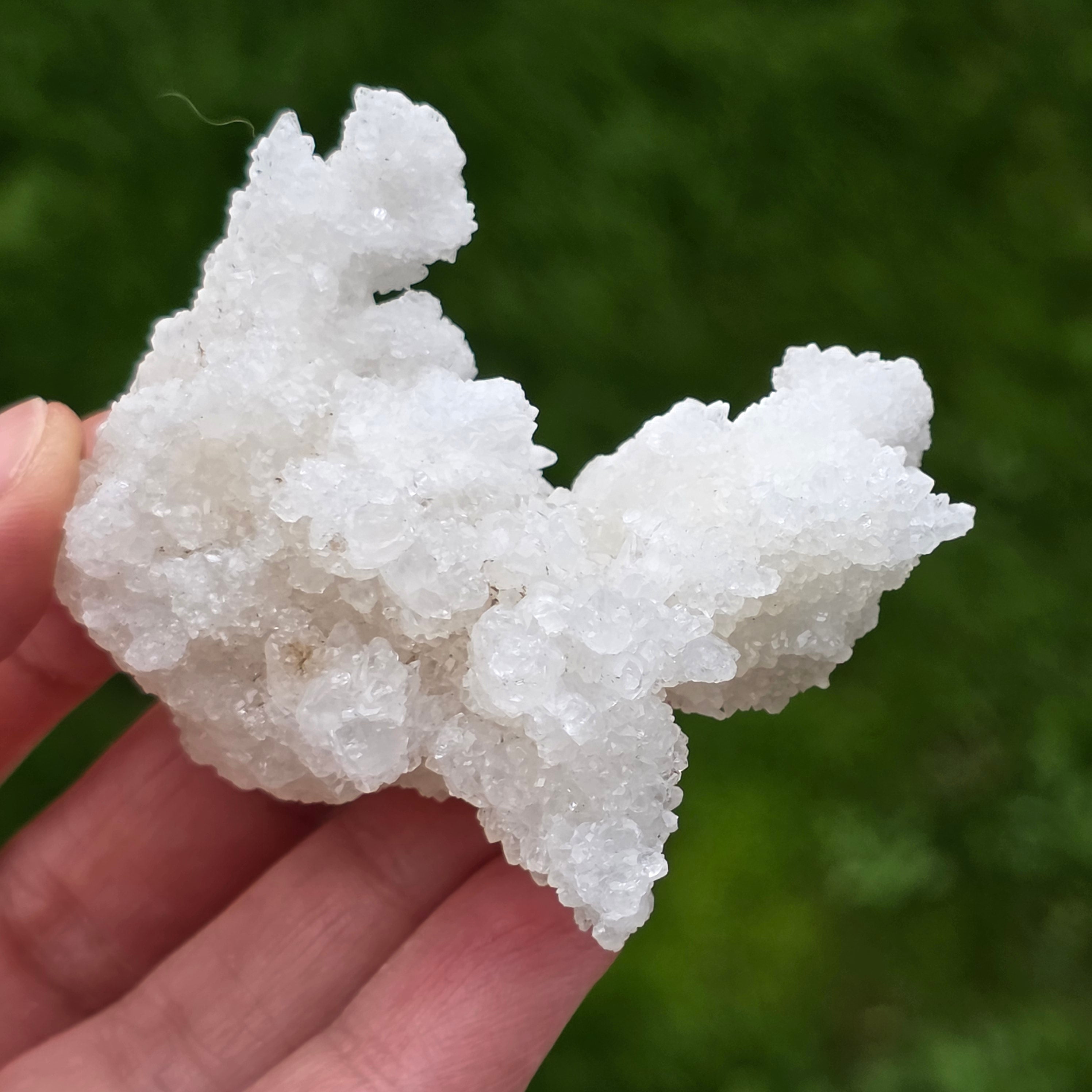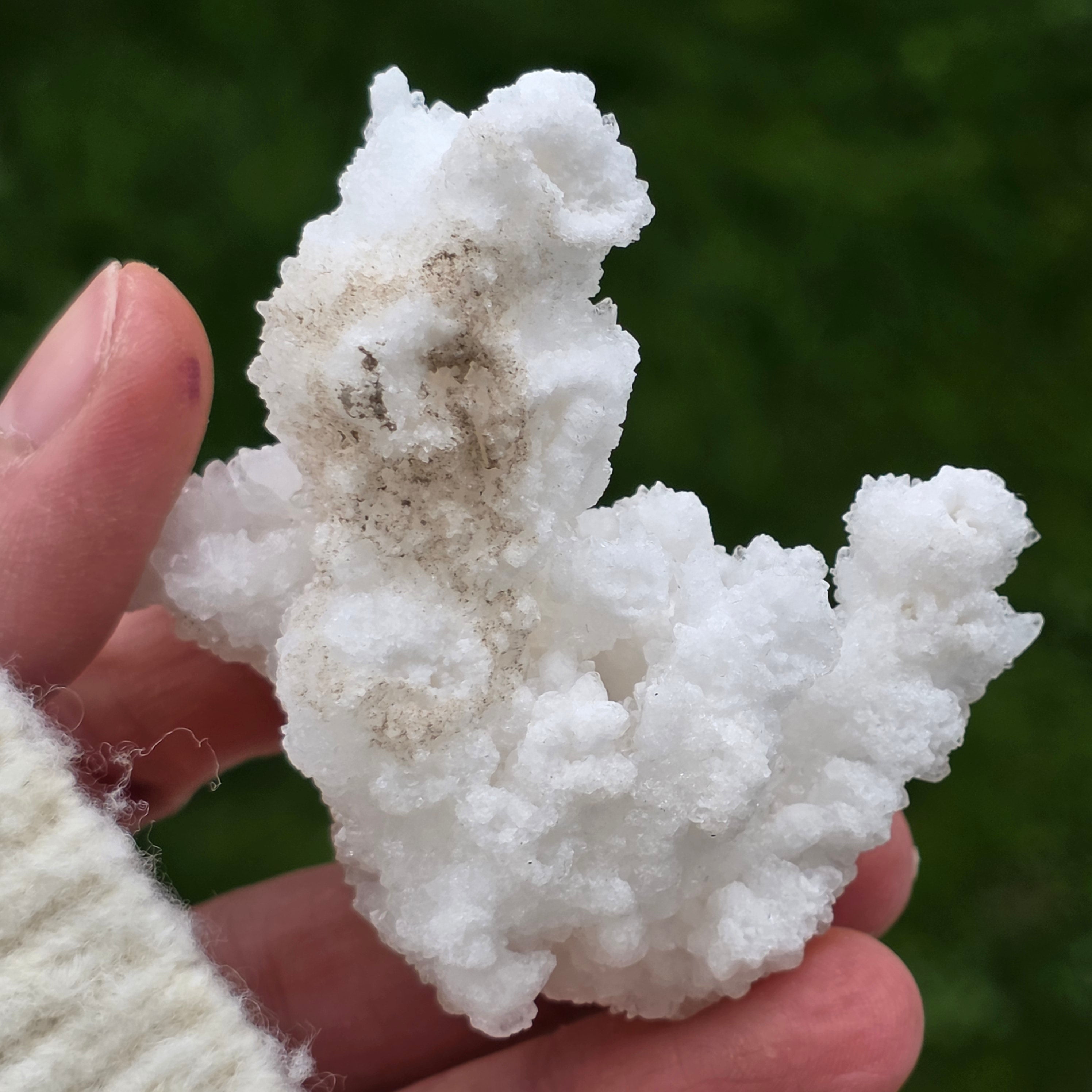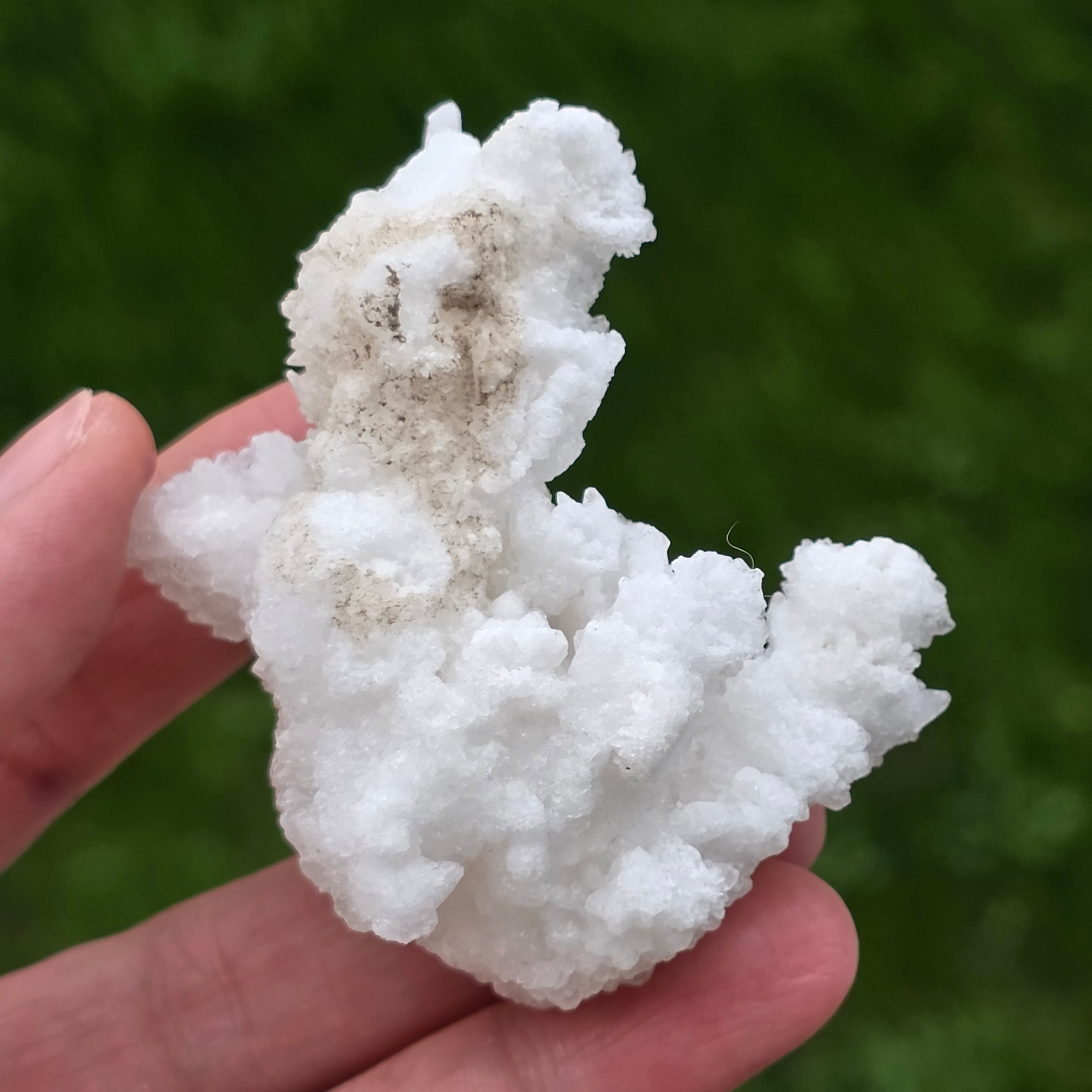 A kristályok szabálytalan, lekerekített struktúrákbanhelyezkednek el, enyhén csillogó felülettel, emlékeztetve a barlangok belsejében található képződményekre. A gazdag textúra és a jól definiált térfogat minden példánynak autentikus és kifejező karaktert kölcsönöz, amely nagyra értékelt az ásványgyűjteményekben és természetes dekorációként.