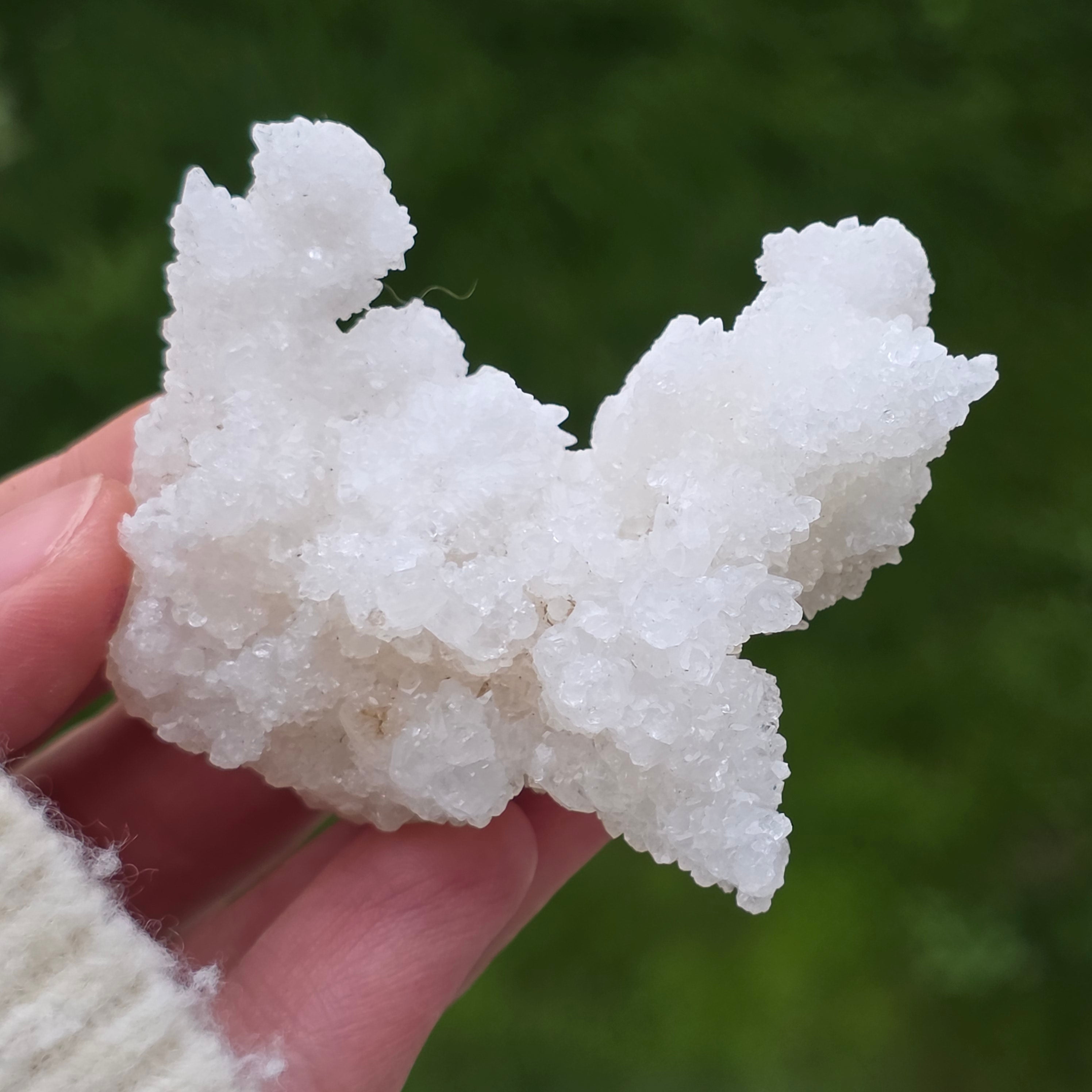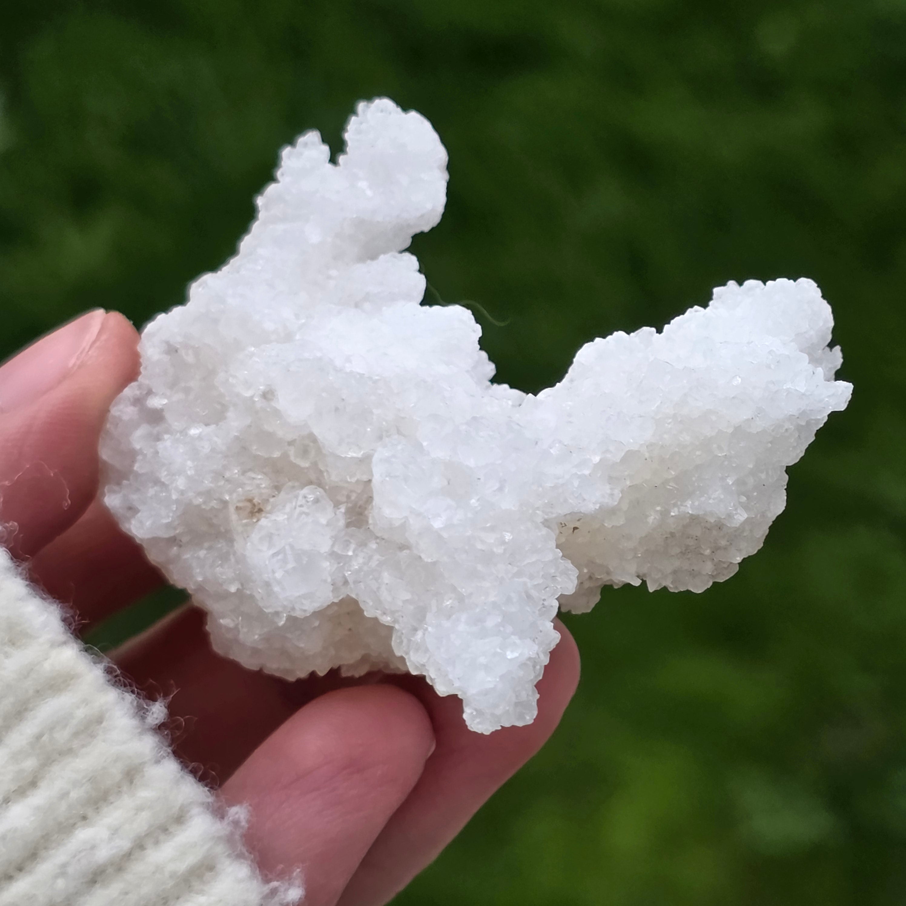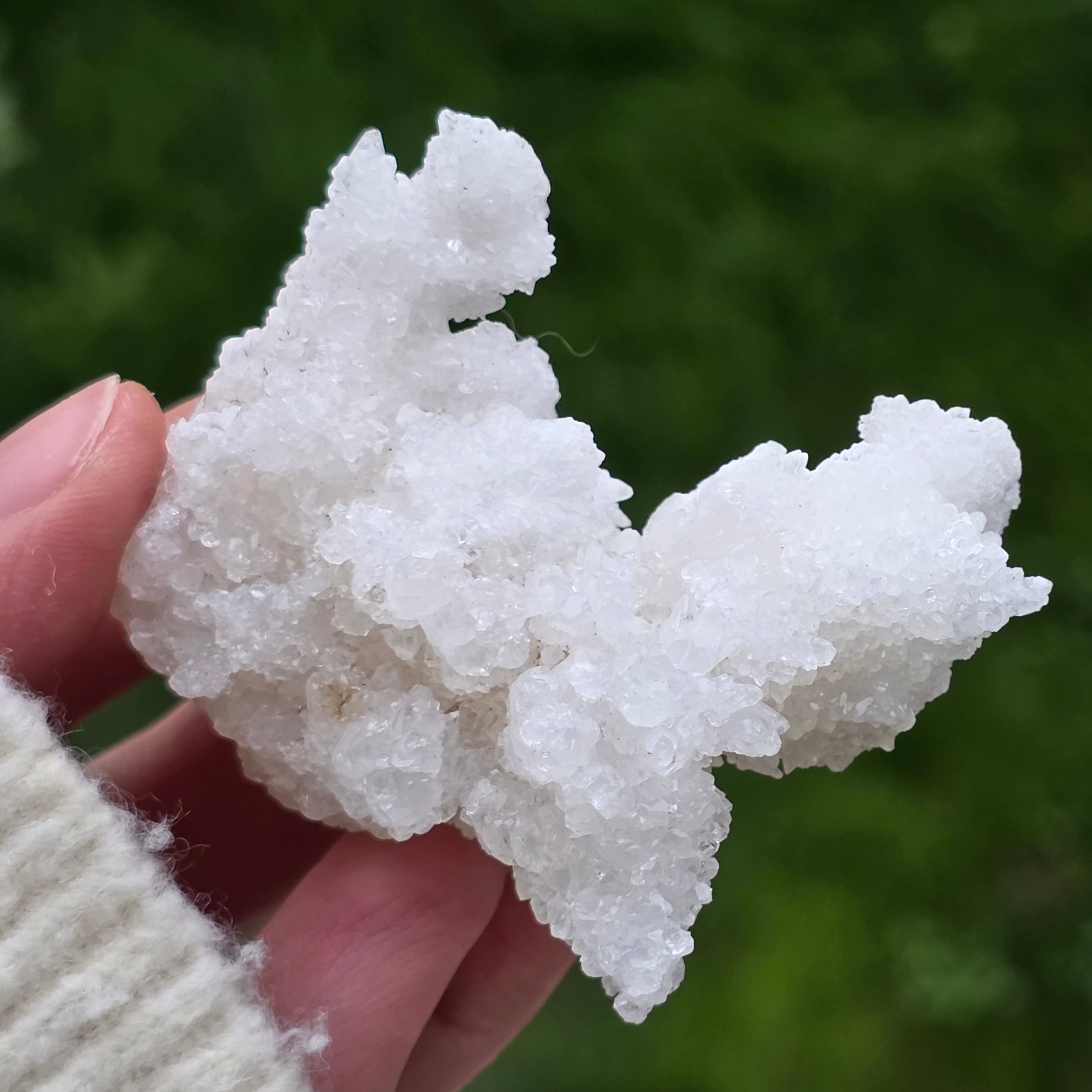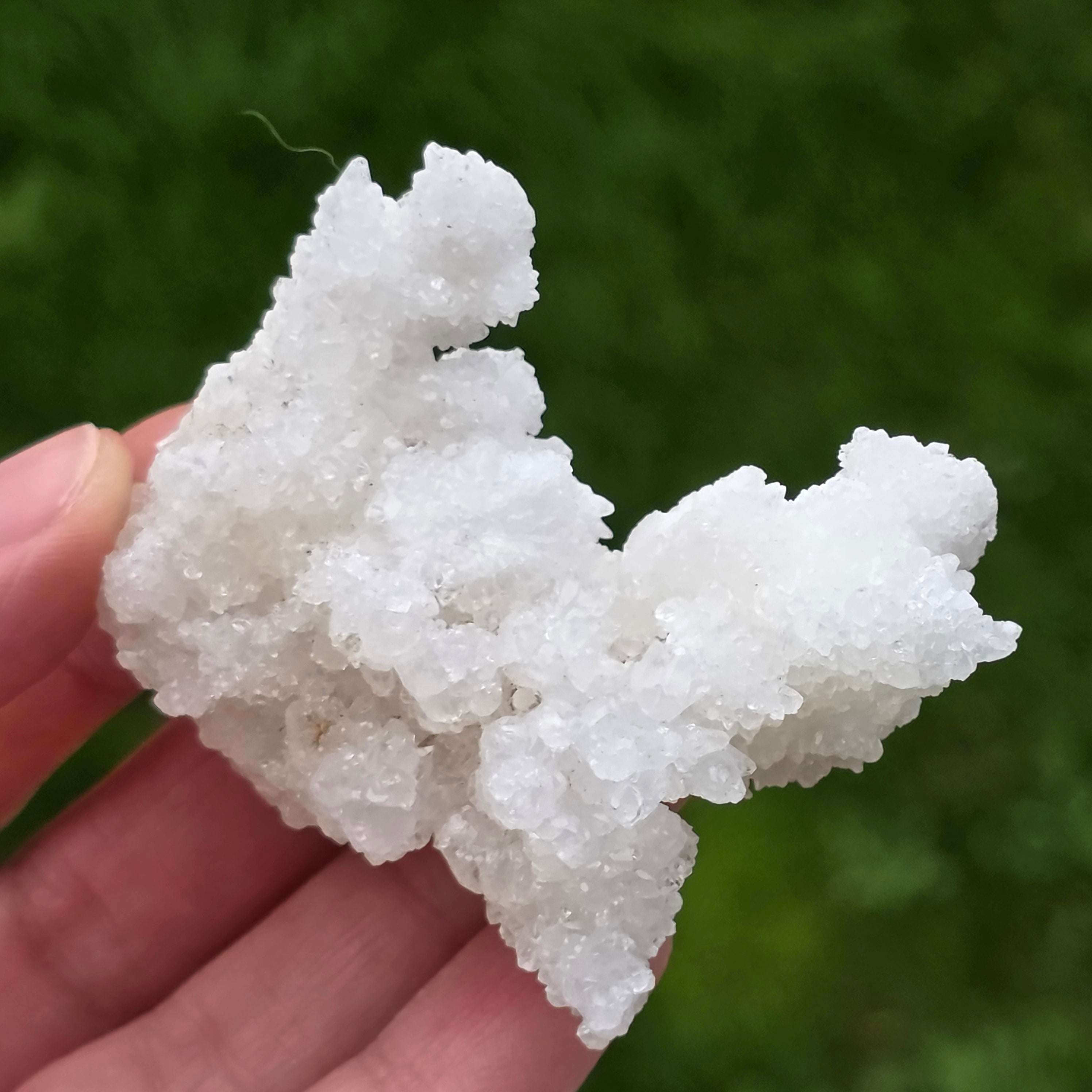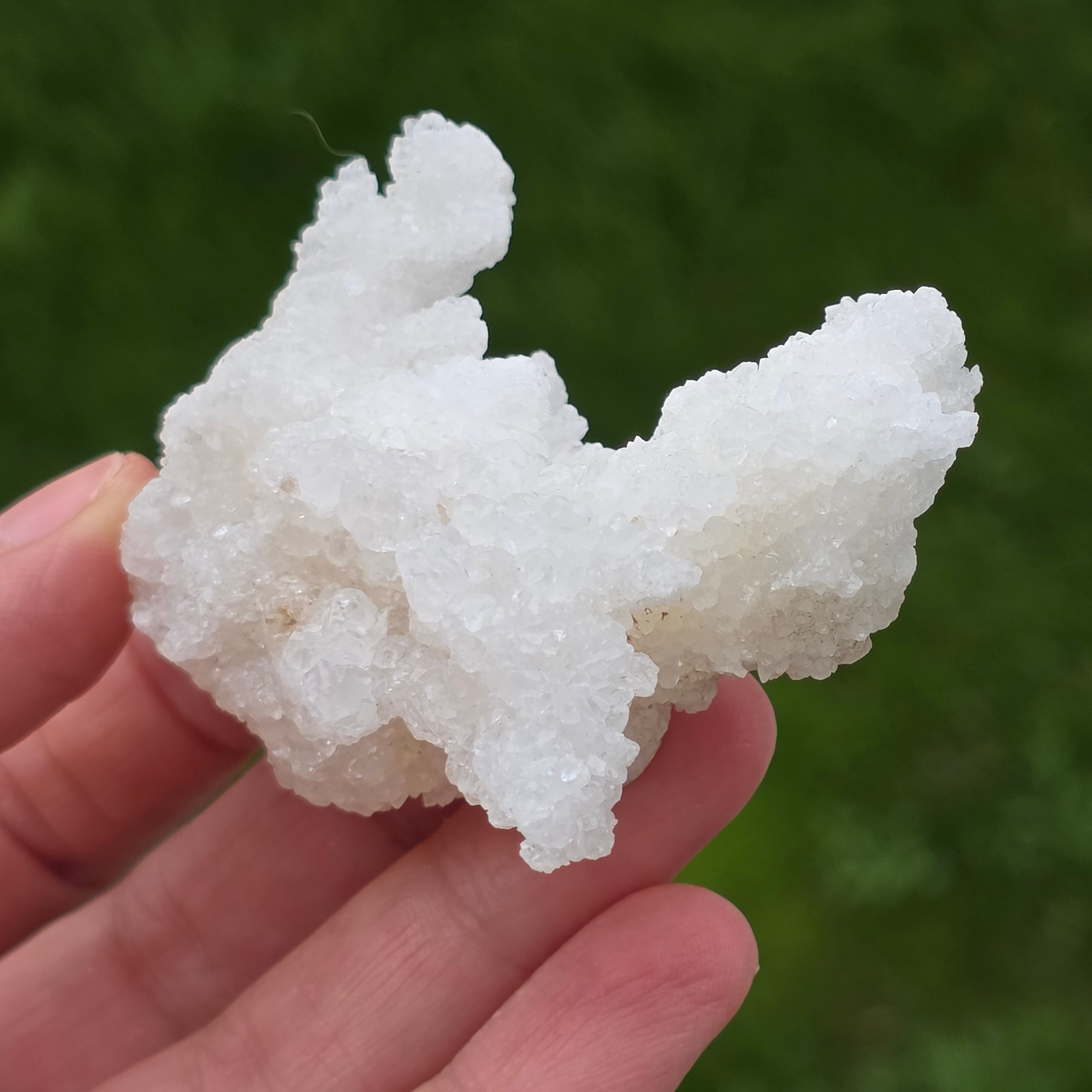 A kristályok szabálytalan, lekerekített struktúrákbanhelyezkednek el, enyhén csillogó felülettel, emlékeztetve a barlangok belsejében található képződményekre. A gazdag textúra és a jól definiált térfogat minden példánynak autentikus és kifejező karaktert kölcsönöz, amely nagyra értékelt az ásványgyűjteményekben és természetes dekorációként.