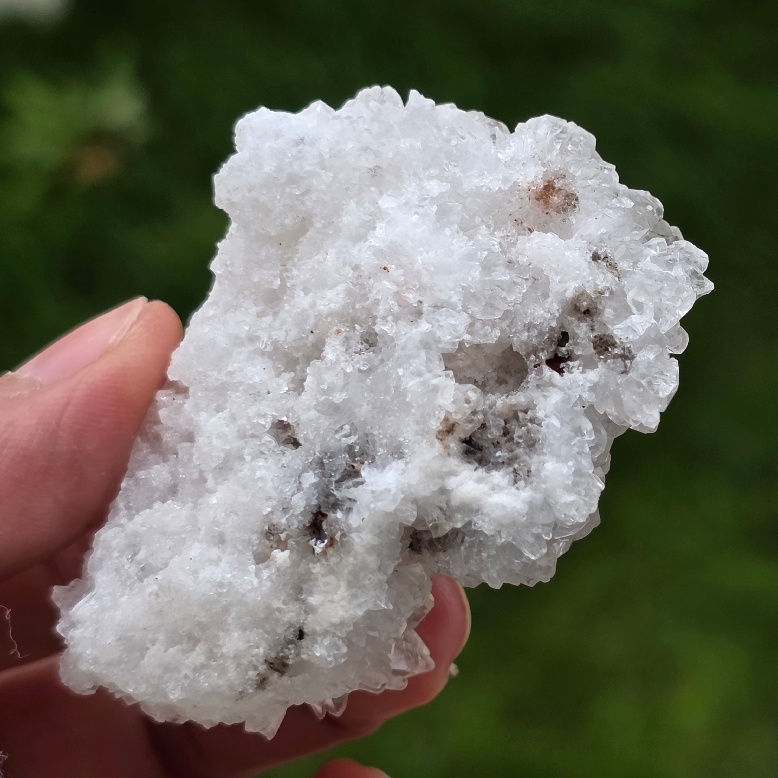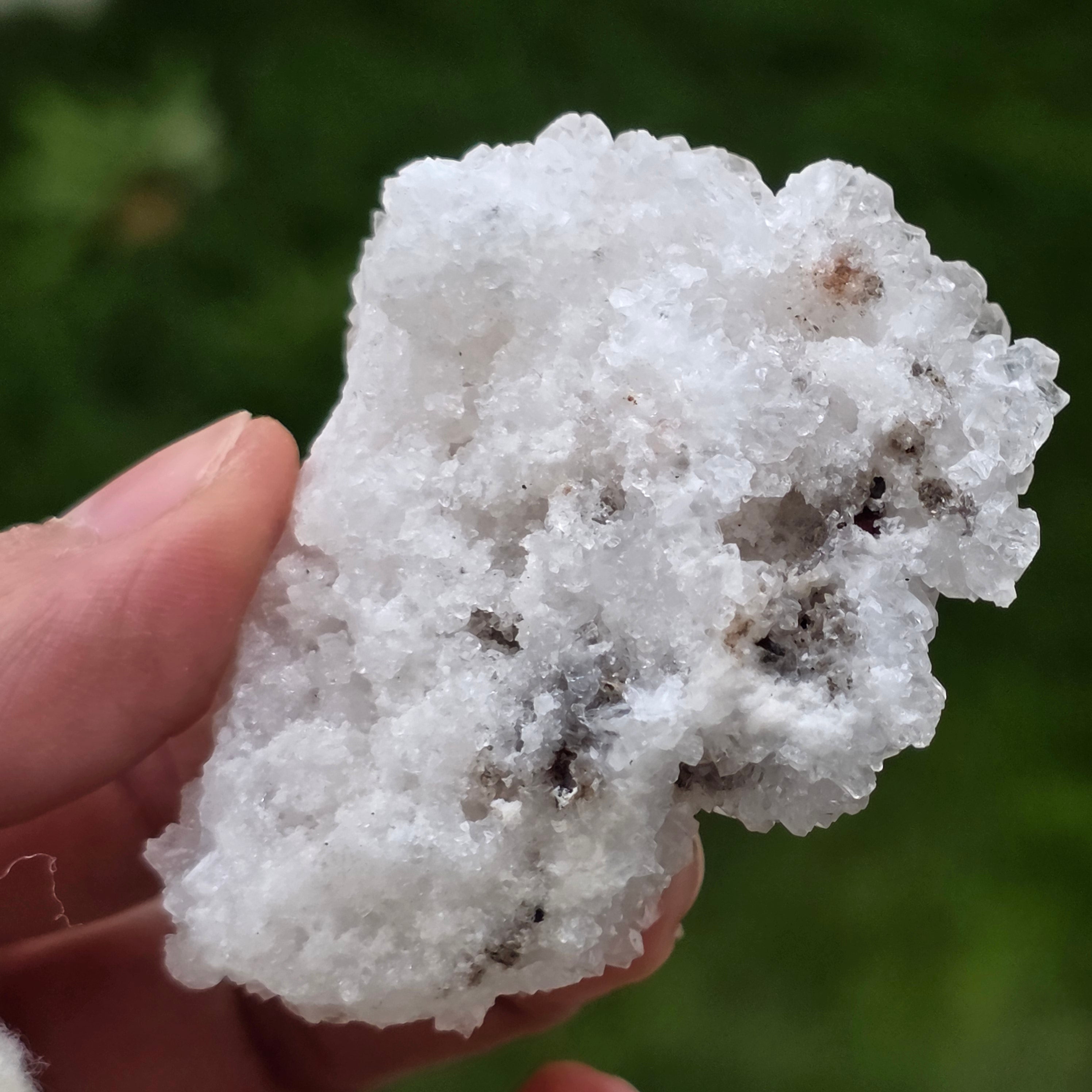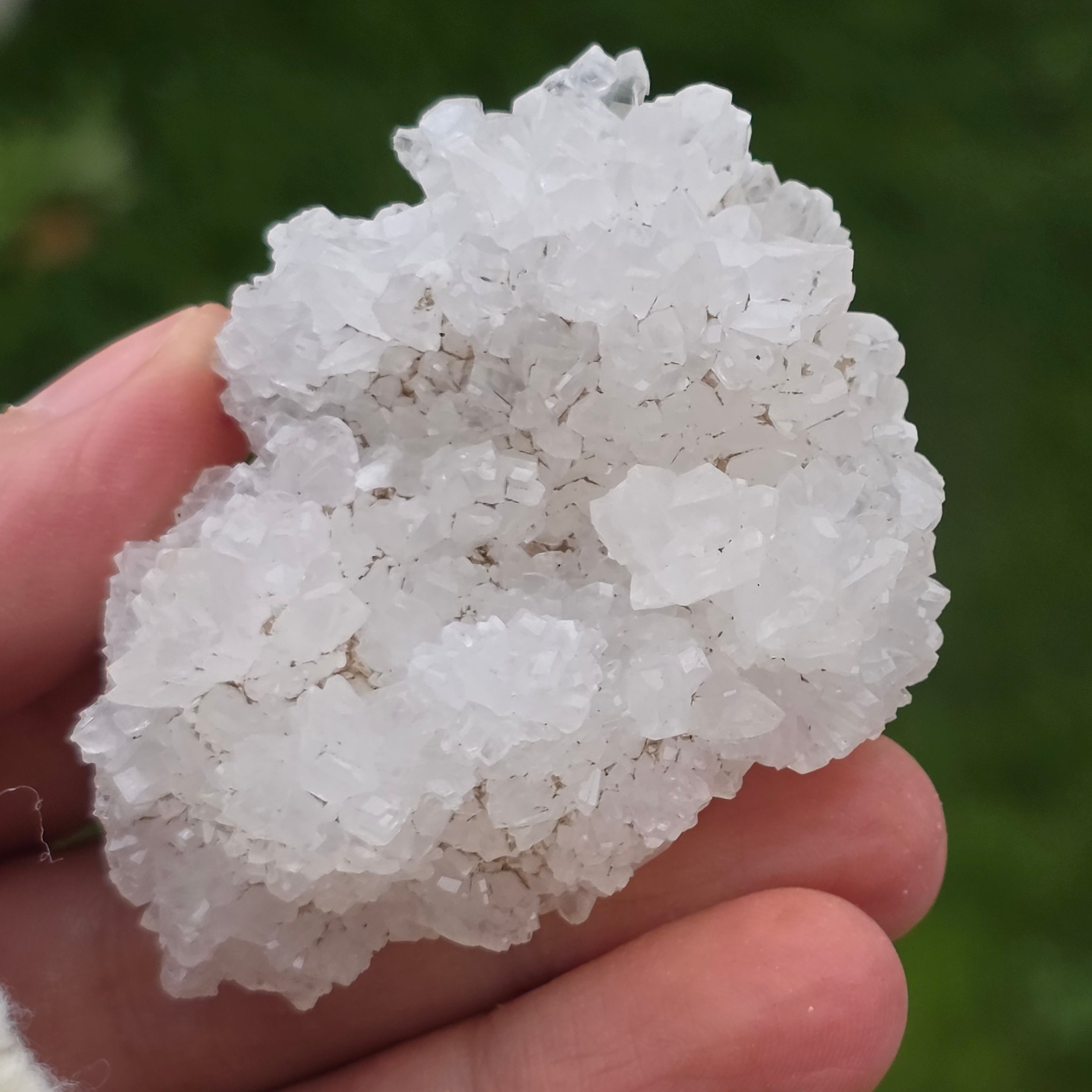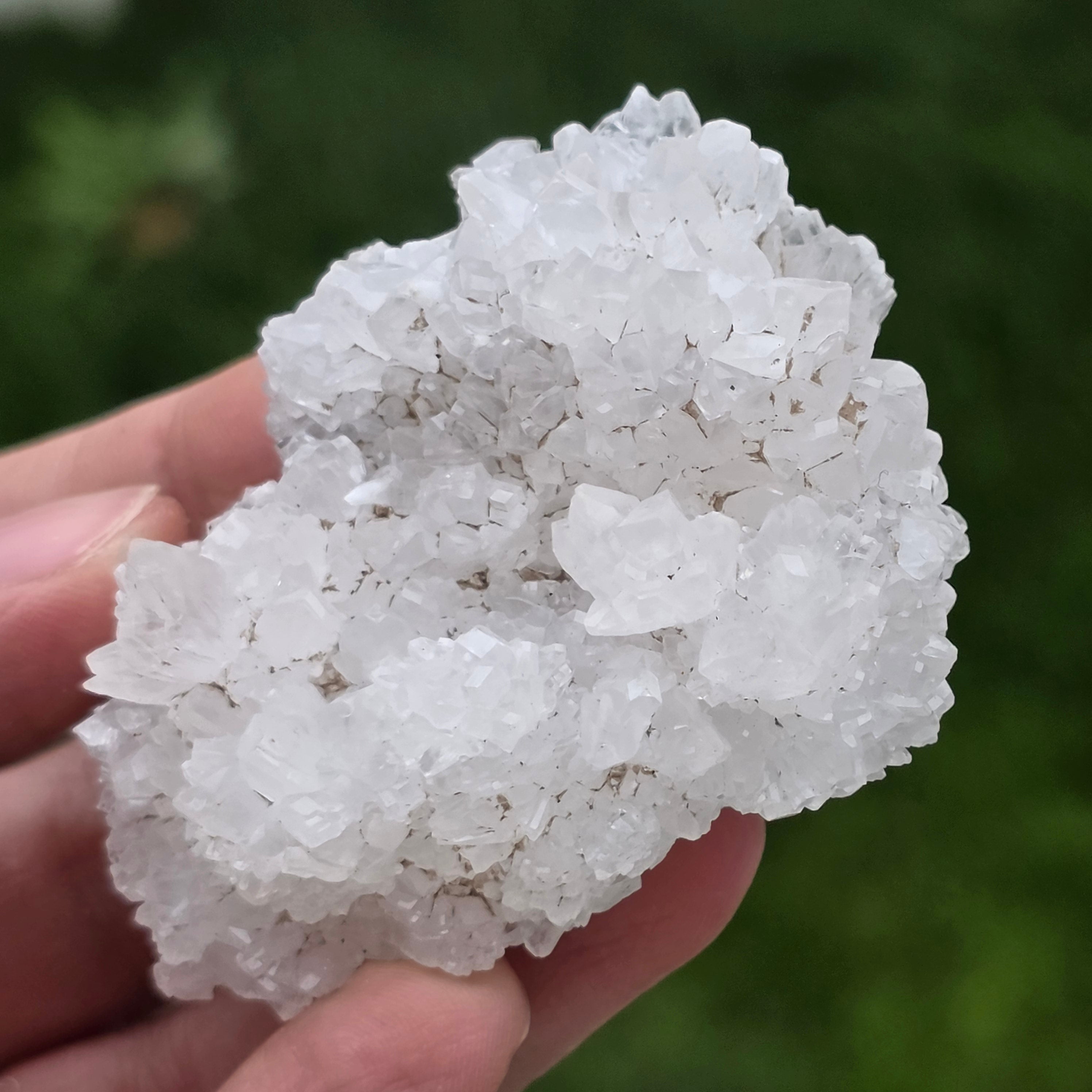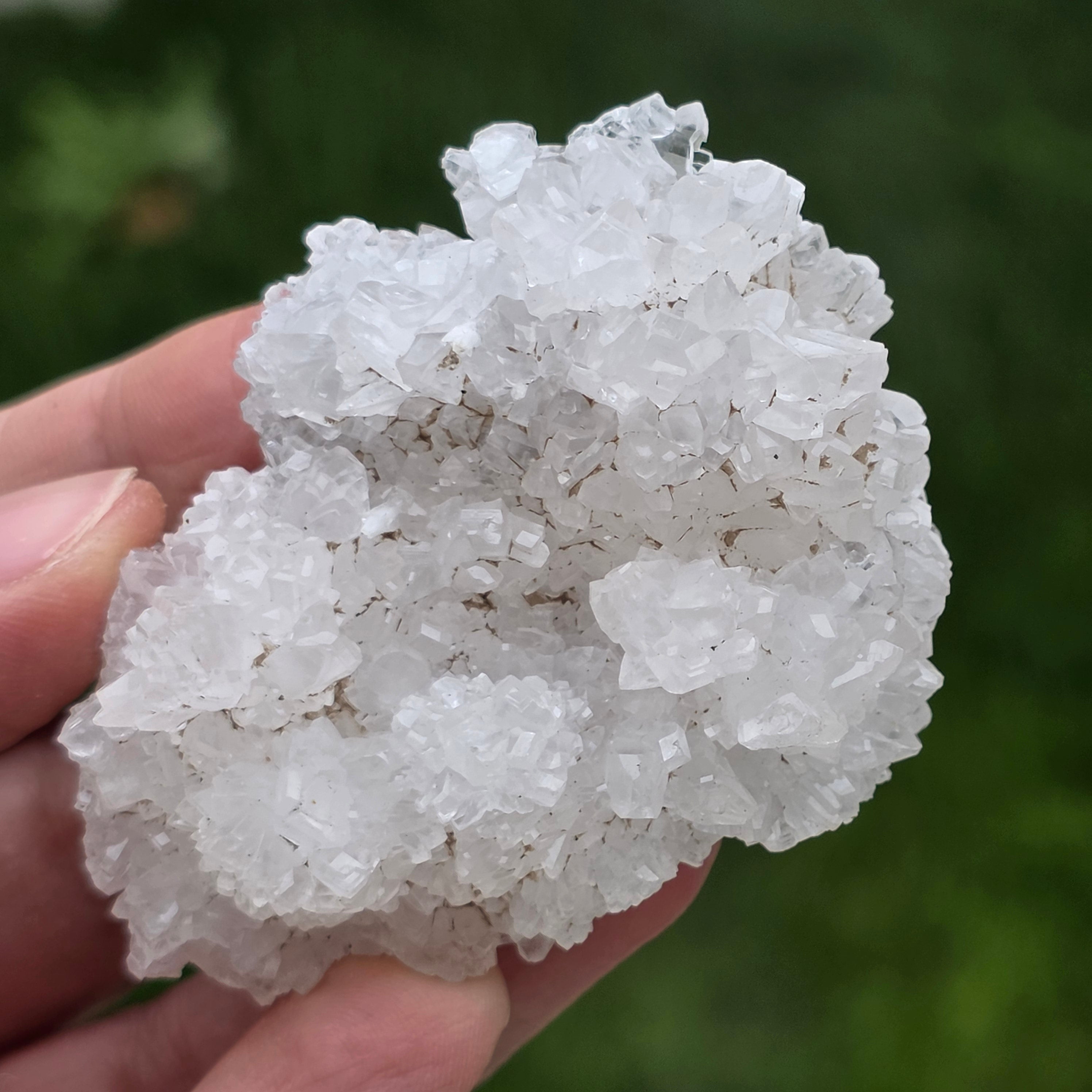 A kristályok szabálytalan, lekerekített struktúrákba rendeződnek, enyhén csillogó felületekkel, amelyek a barlangok belsejében előforduló képződményekre emlékeztetnek. A gazdag textúra és a jól definiált térfogat autentikus és kifejező jelleget ad minden példánynak, ami nagyon értékelt az ásványgyűjteményekben és természetes díszdarabként.