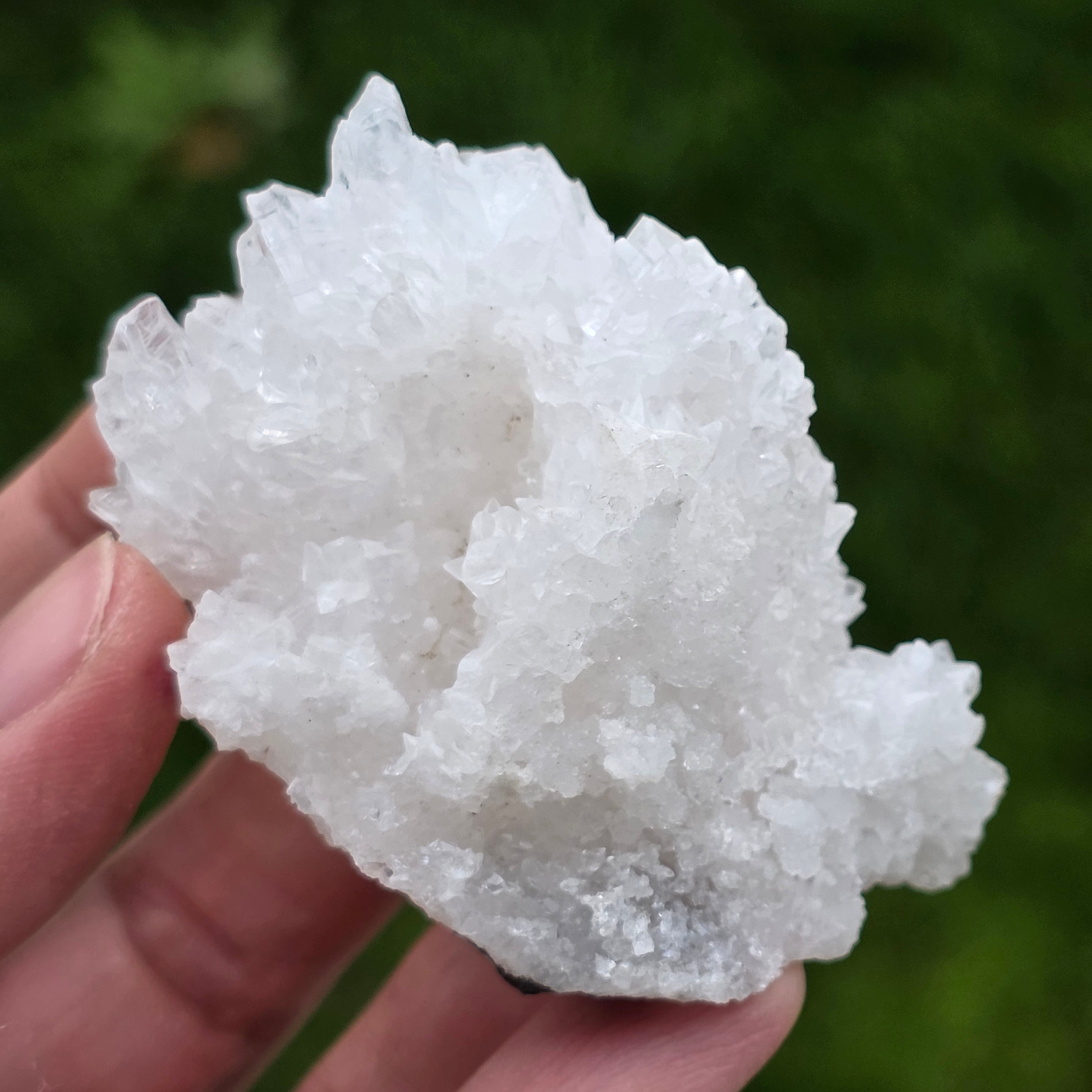 A kristályok szabálytalan, lekerekített struktúrákbanhelyezkednek el, enyhén csillogó felülettel, emlékeztetve a barlangok belsejében található képződményekre. A gazdag textúra és a jól definiált térfogat minden példánynak autentikus és kifejező karaktert kölcsönöz, amely nagyra értékelt az ásványgyűjteményekben és természetes dekorációként.