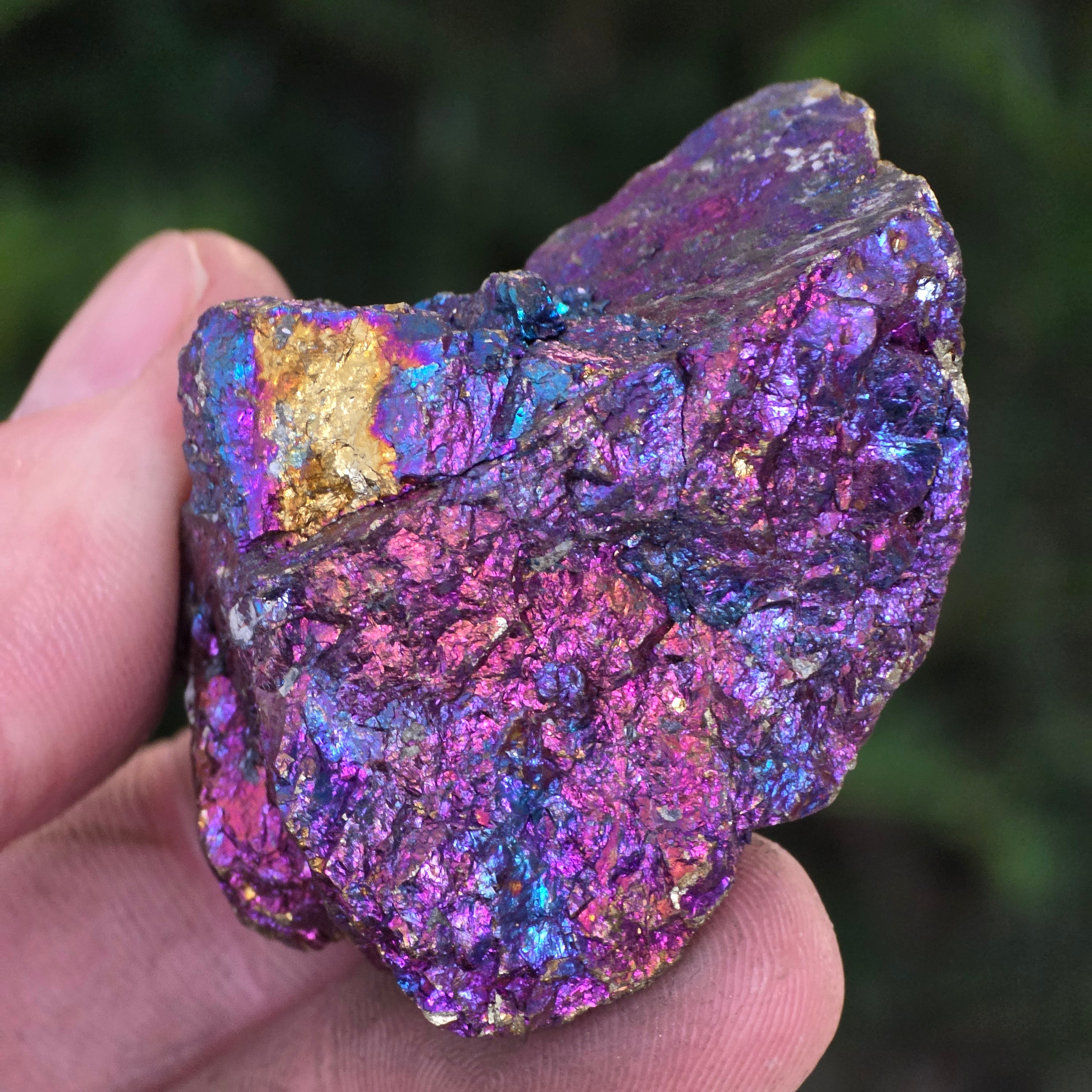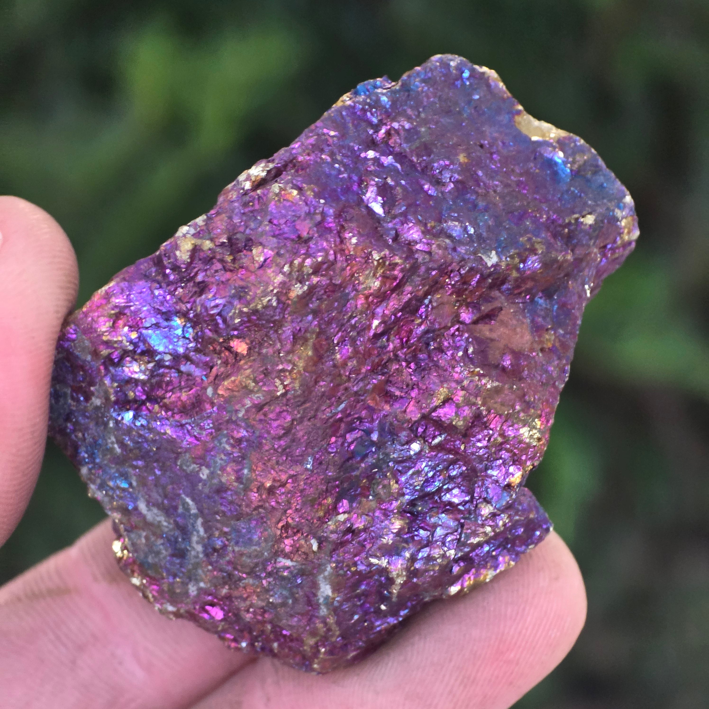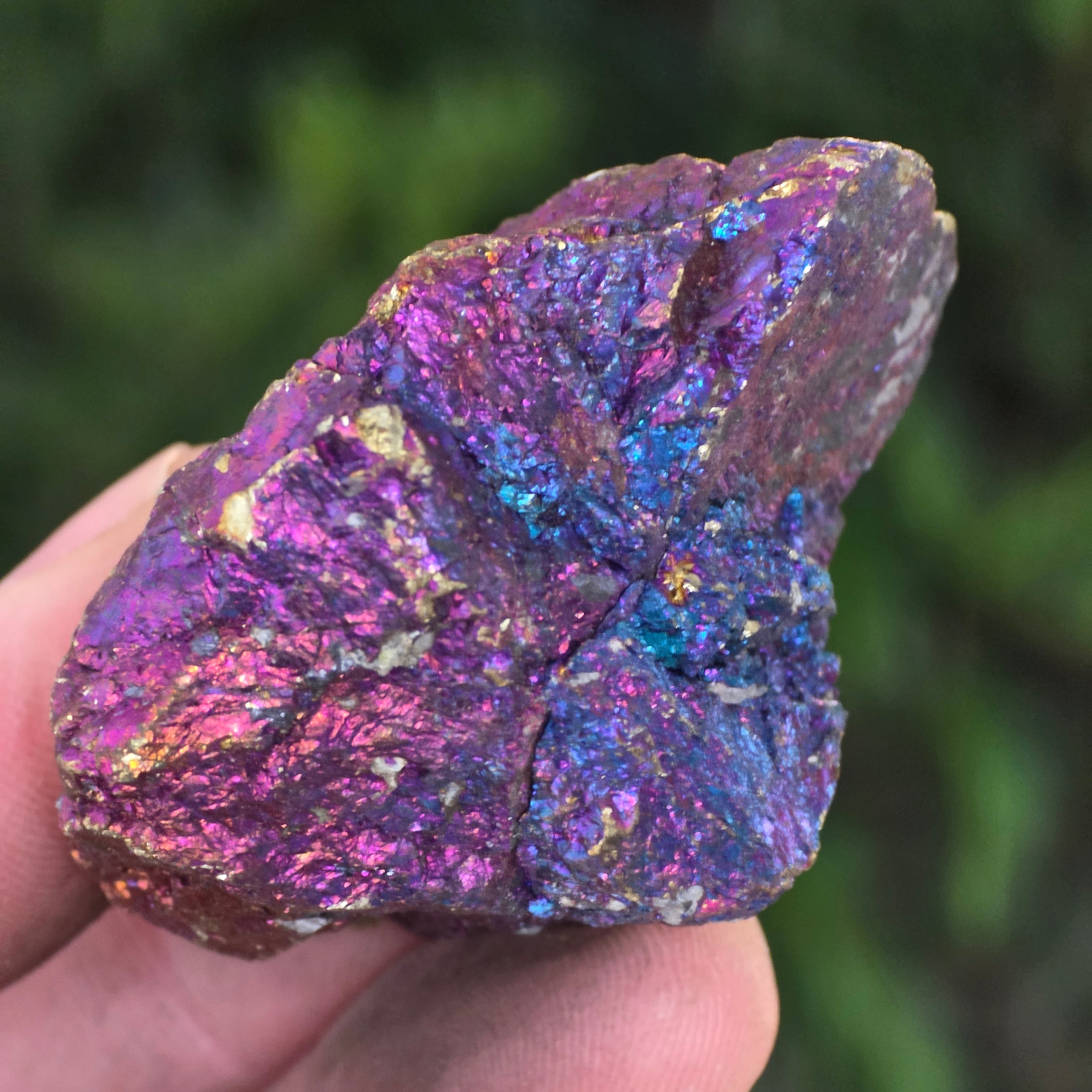 A kék és a lila chalkopirit a spirituális növekedéssel, az intuícióval és a felsőbb energiákkal való kapcsolódással társítják. Úgy tartják, hogy segít megnyugtatni az elmét és serkenti a kreativitást. Irizáló árnyalatai szimbolikusan az egyensúlyhoz és harmóniához kapcsolódnak.