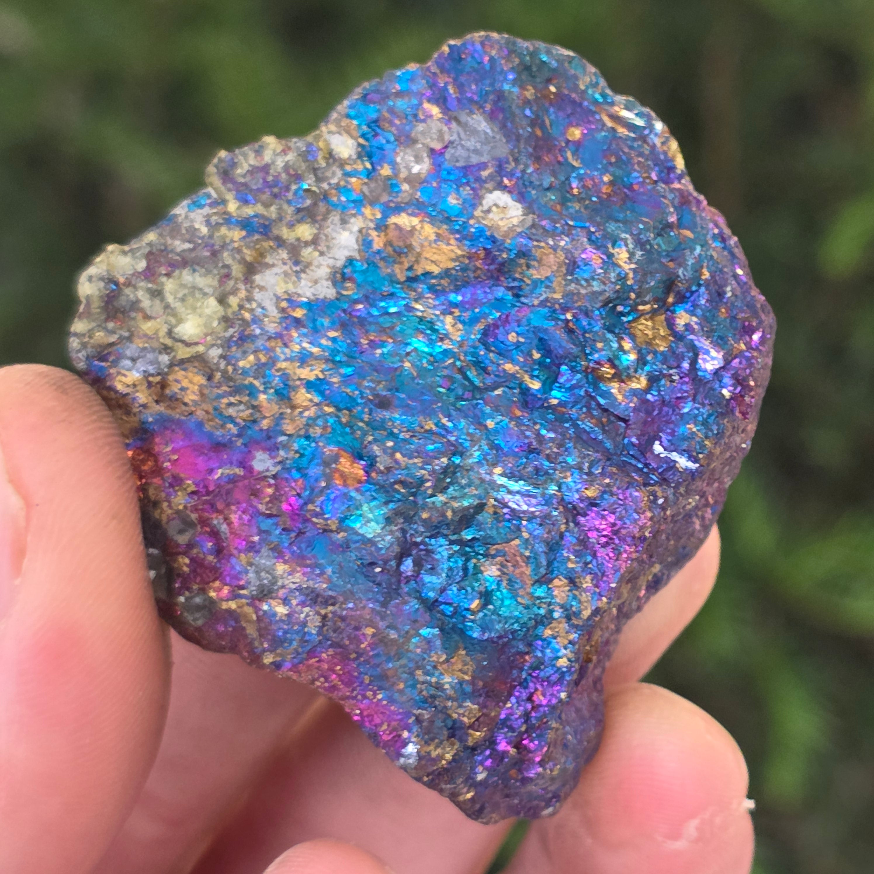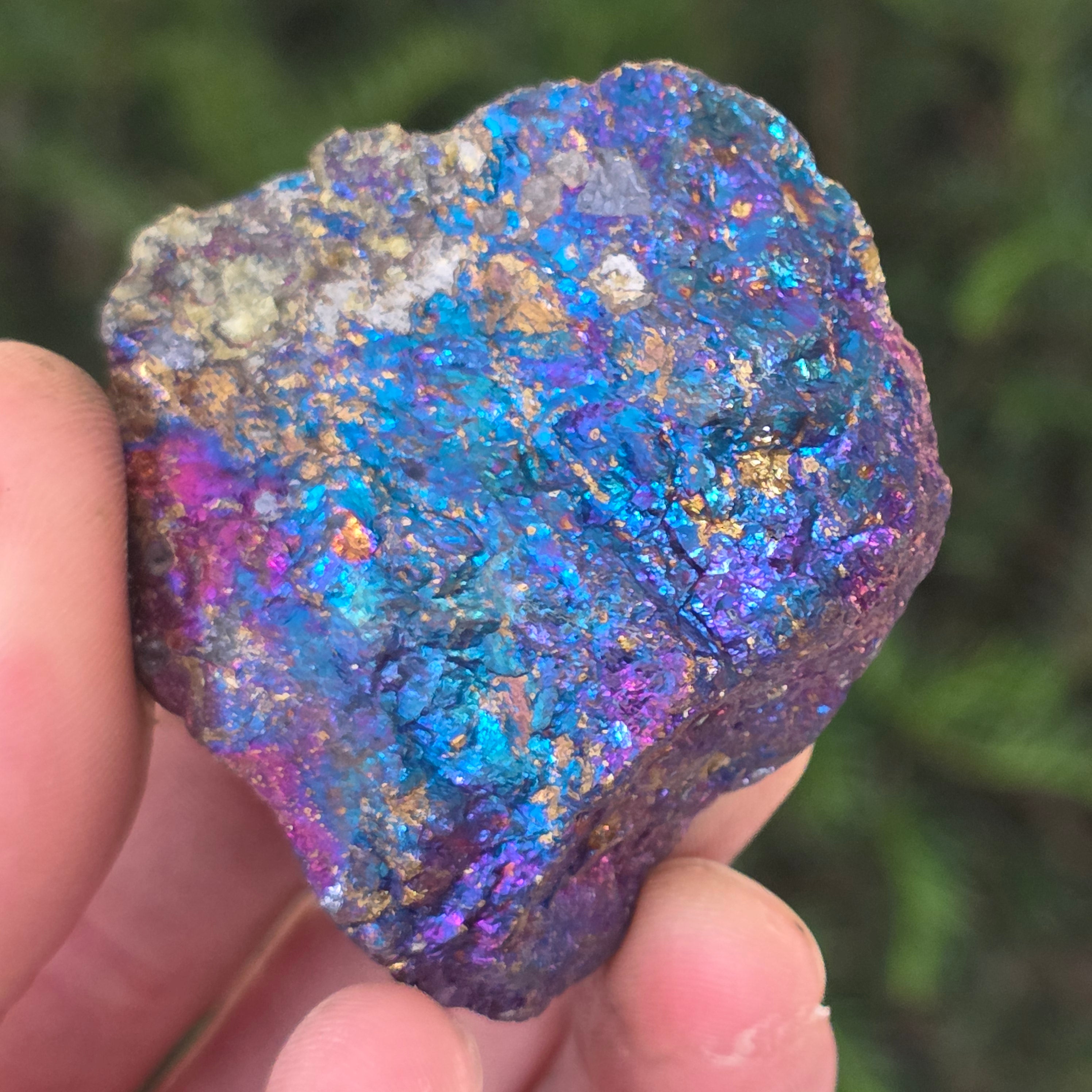 A kék és lila kalkopirit a spirituális növekedéssel, az intuícióval és a felső energiaforrásokkal való kapcsolódással társul. Úgy tartják, hogy segít az elme megnyugtatásában és a kreativitás ösztönzésében. Irizáló színei szimbolikusan az egyensúlyhoz és harmóniához kötődnek.
