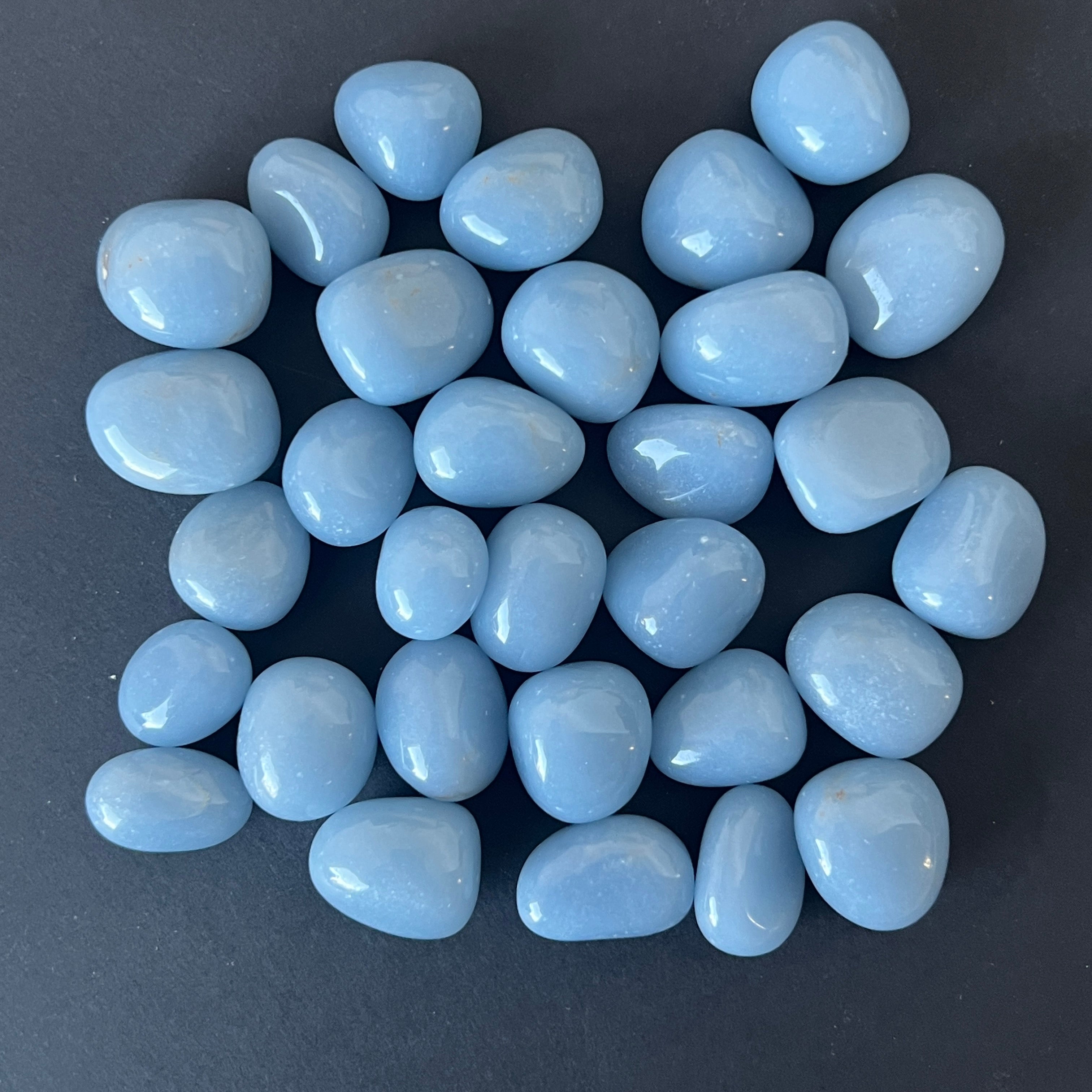 Mini angelit görgetett kő, méretei 2,5 cm és 3 cm között.