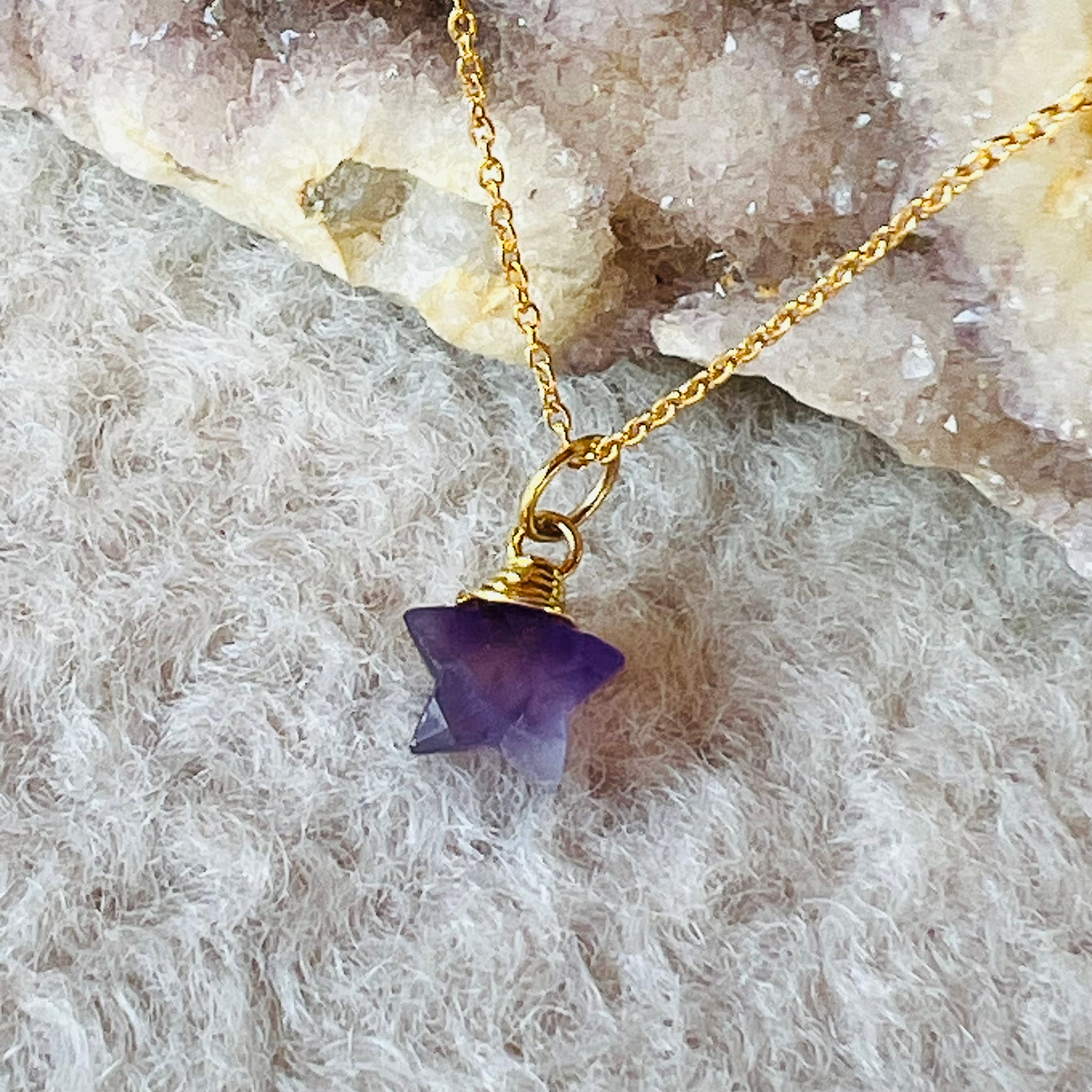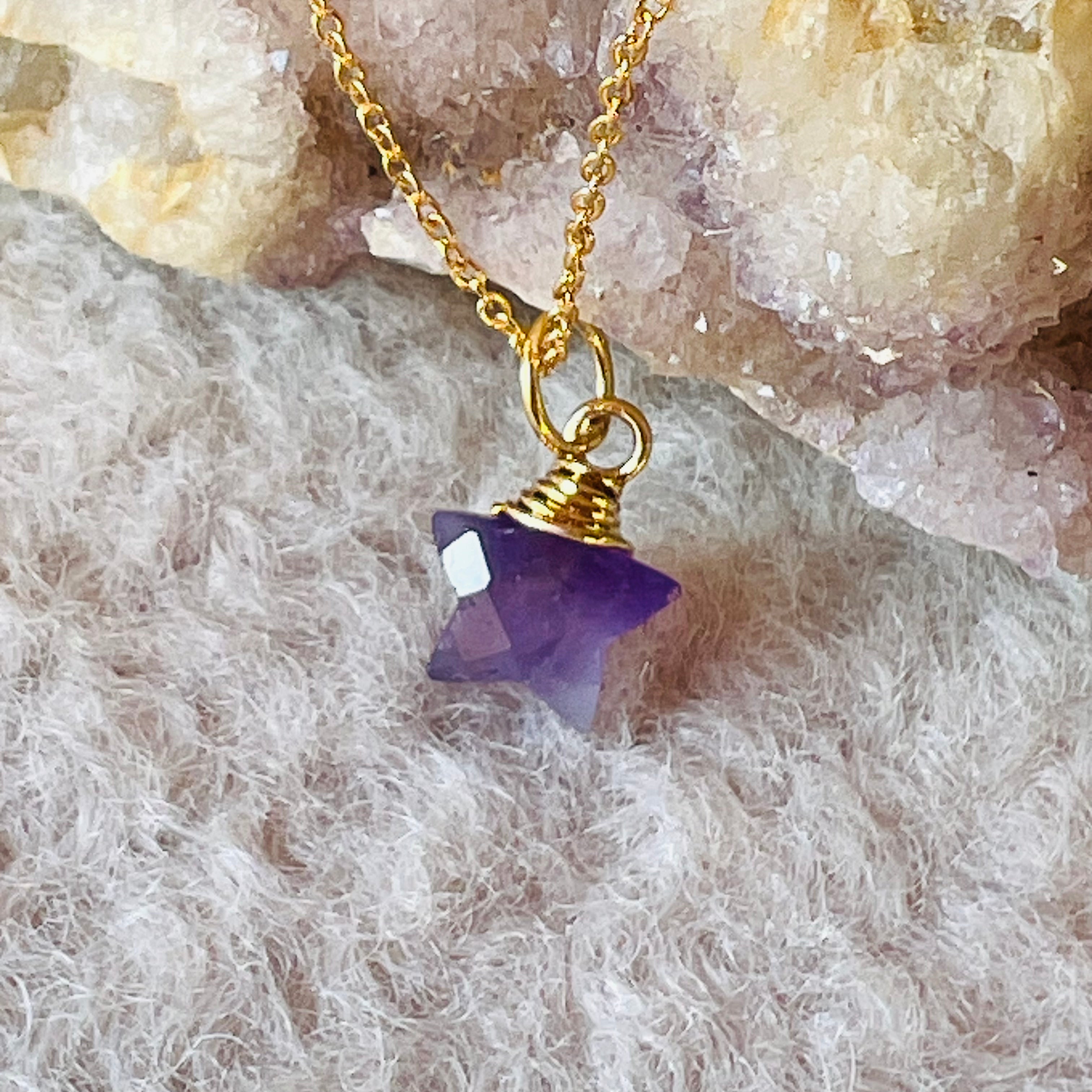 Mini csillag medál ametiszttel, 1 cm, februári hónap köve