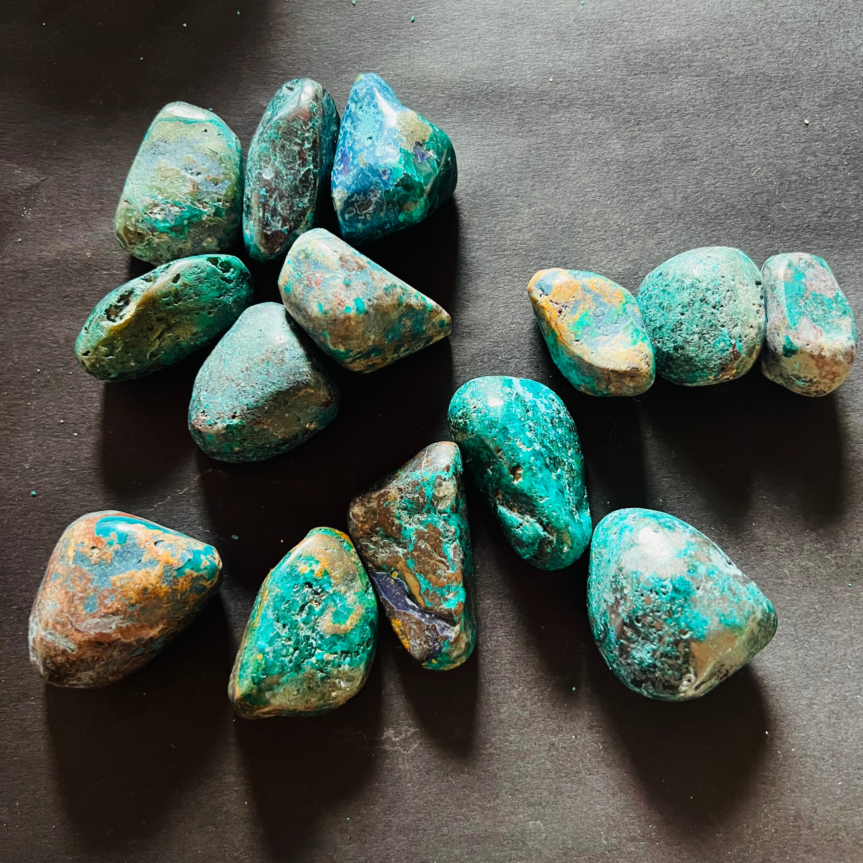 Mini csiszolt dioptáz, méretei 2-5 cm között változnak. Az ár a kő méretétől függ, kérjük, válassza ki a kívánt méretet.