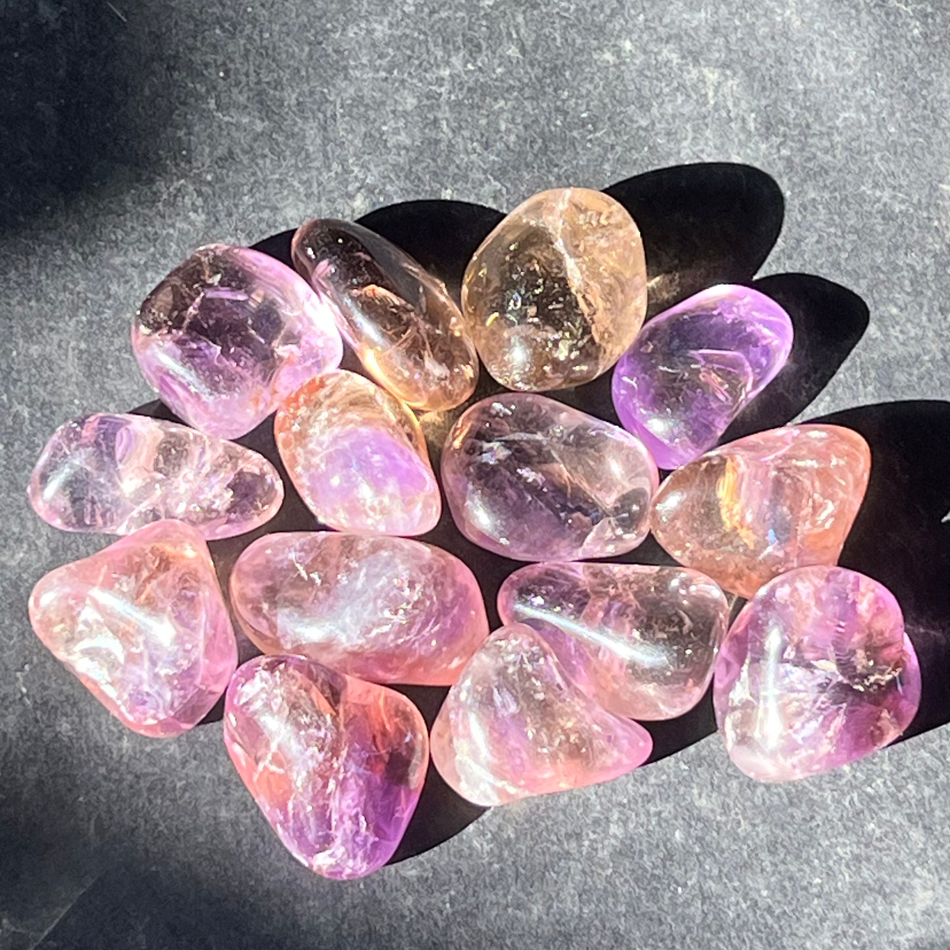 Mini gördített ametrin kő, 2,5-3,5 cm közötti méretekkel. Az ár a kő méretétől függ, kérjük, válassza ki a kívánt méretet. Az ár egy darabra vonatkozik.