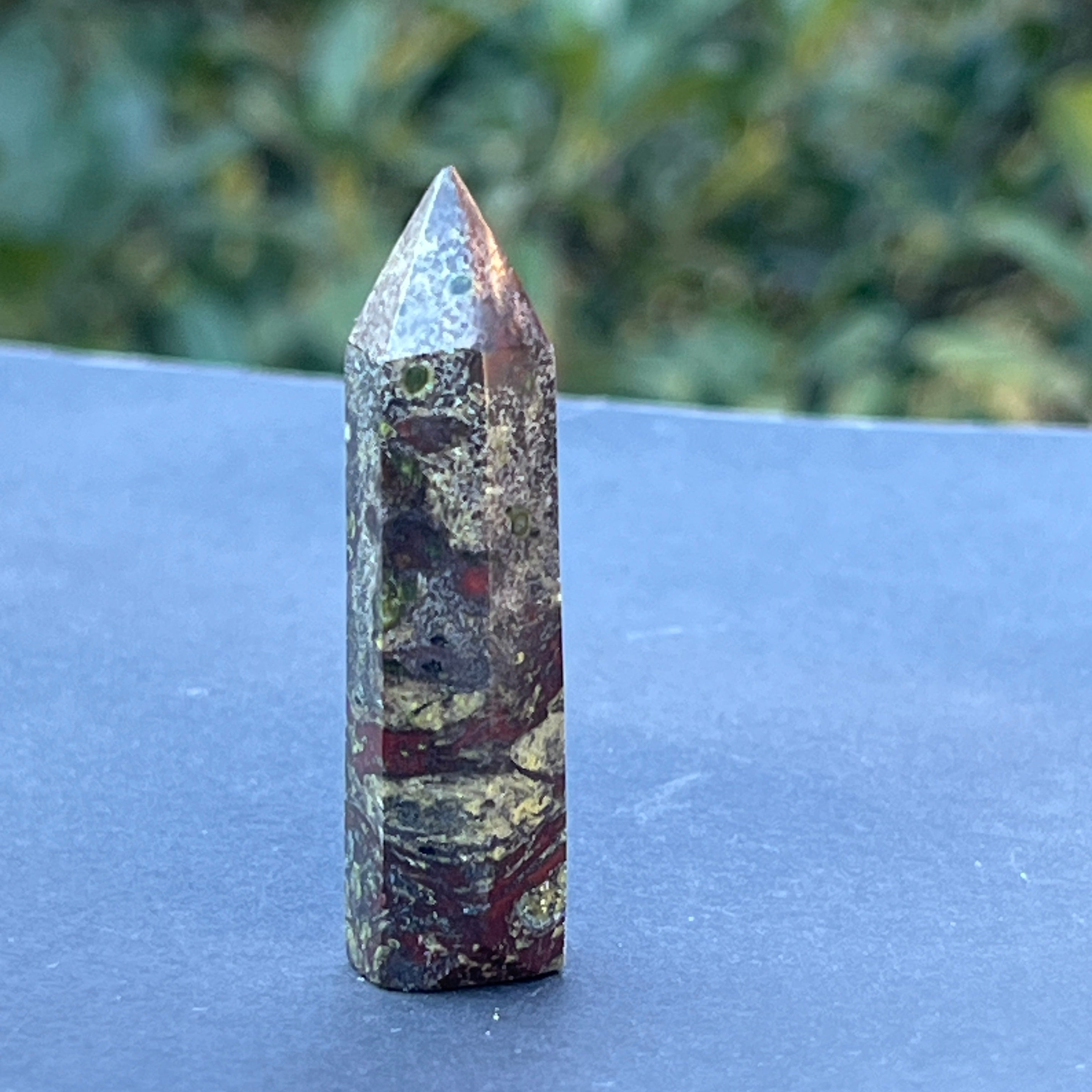 Mini obeliszk, sárkányevő kő (epidót & piedmontit) m7