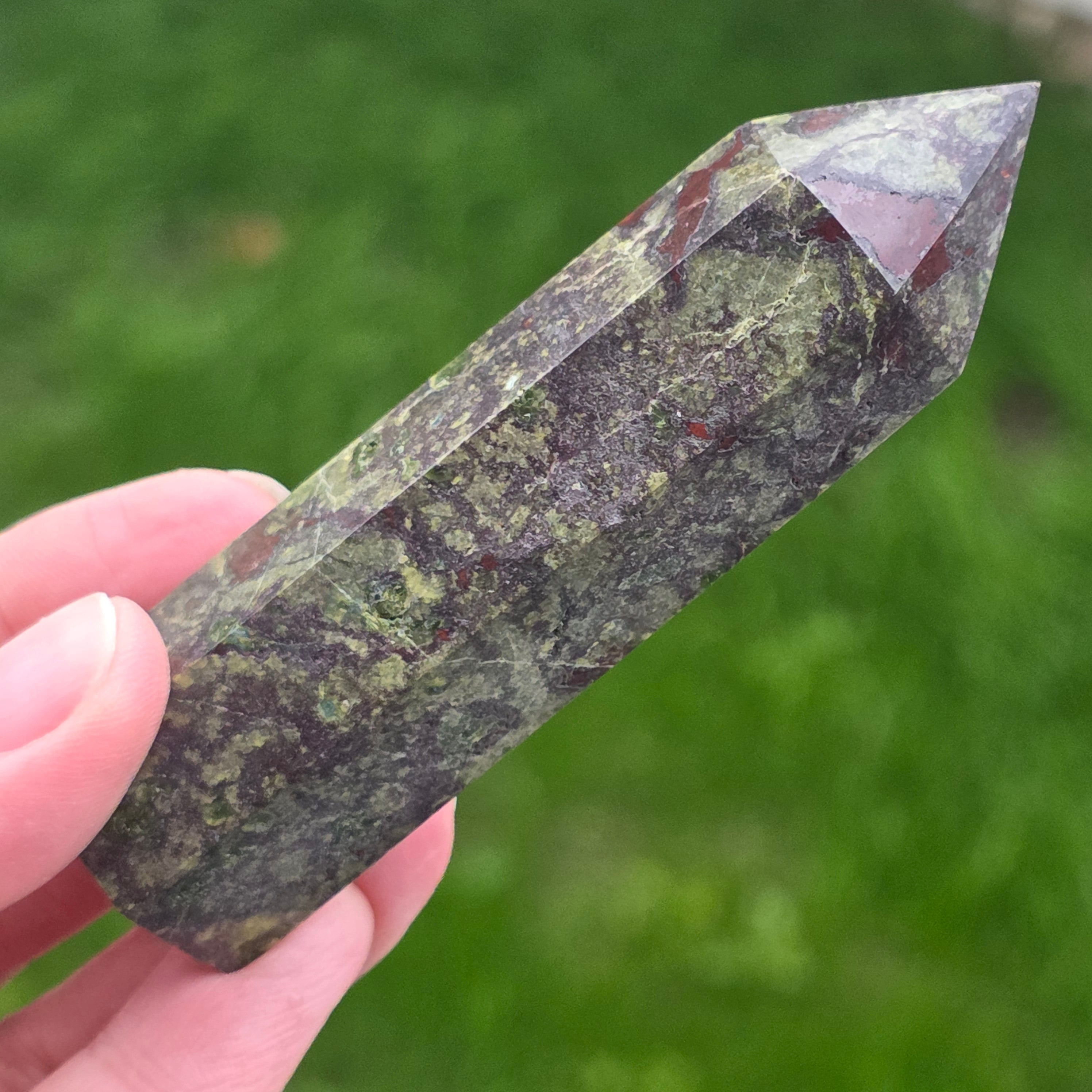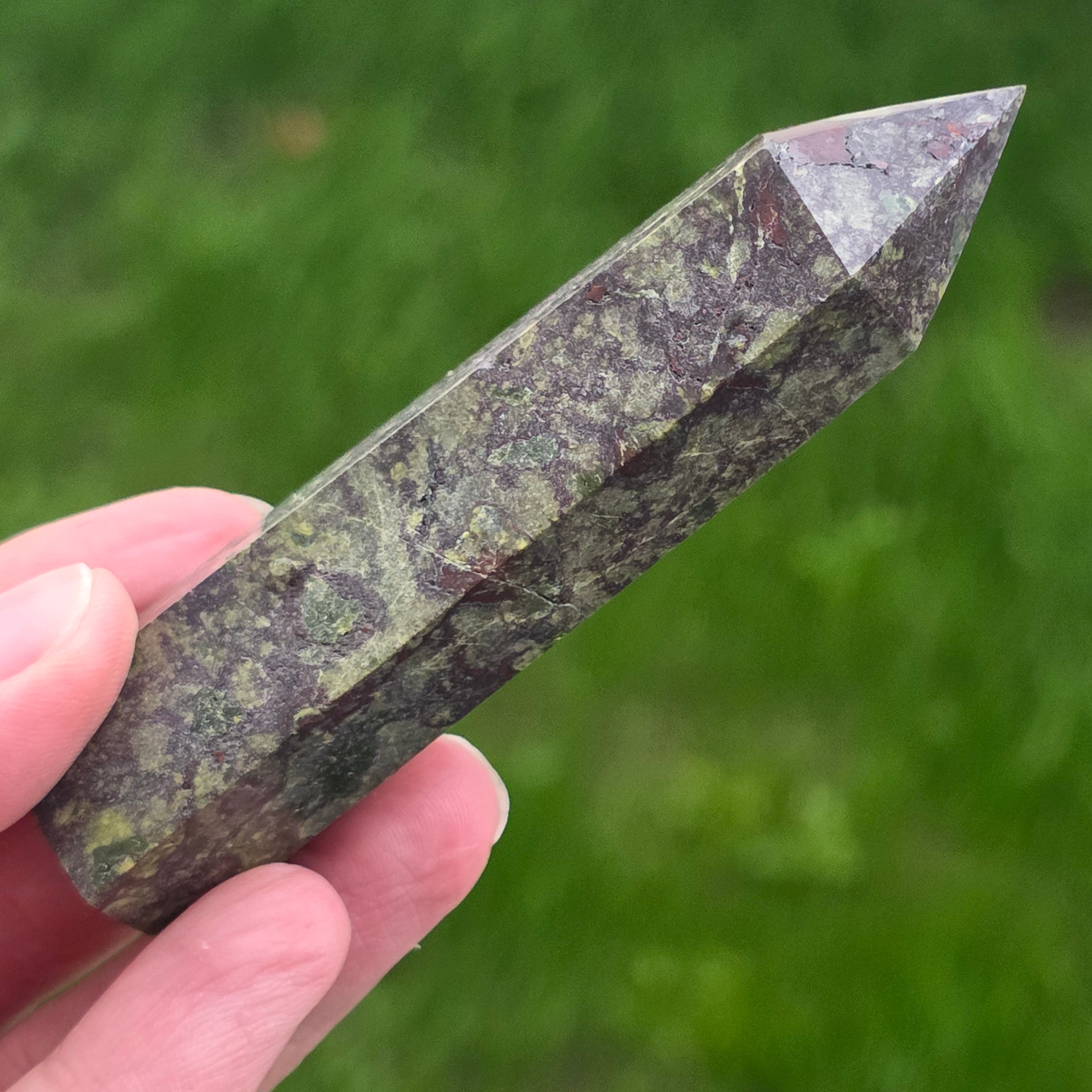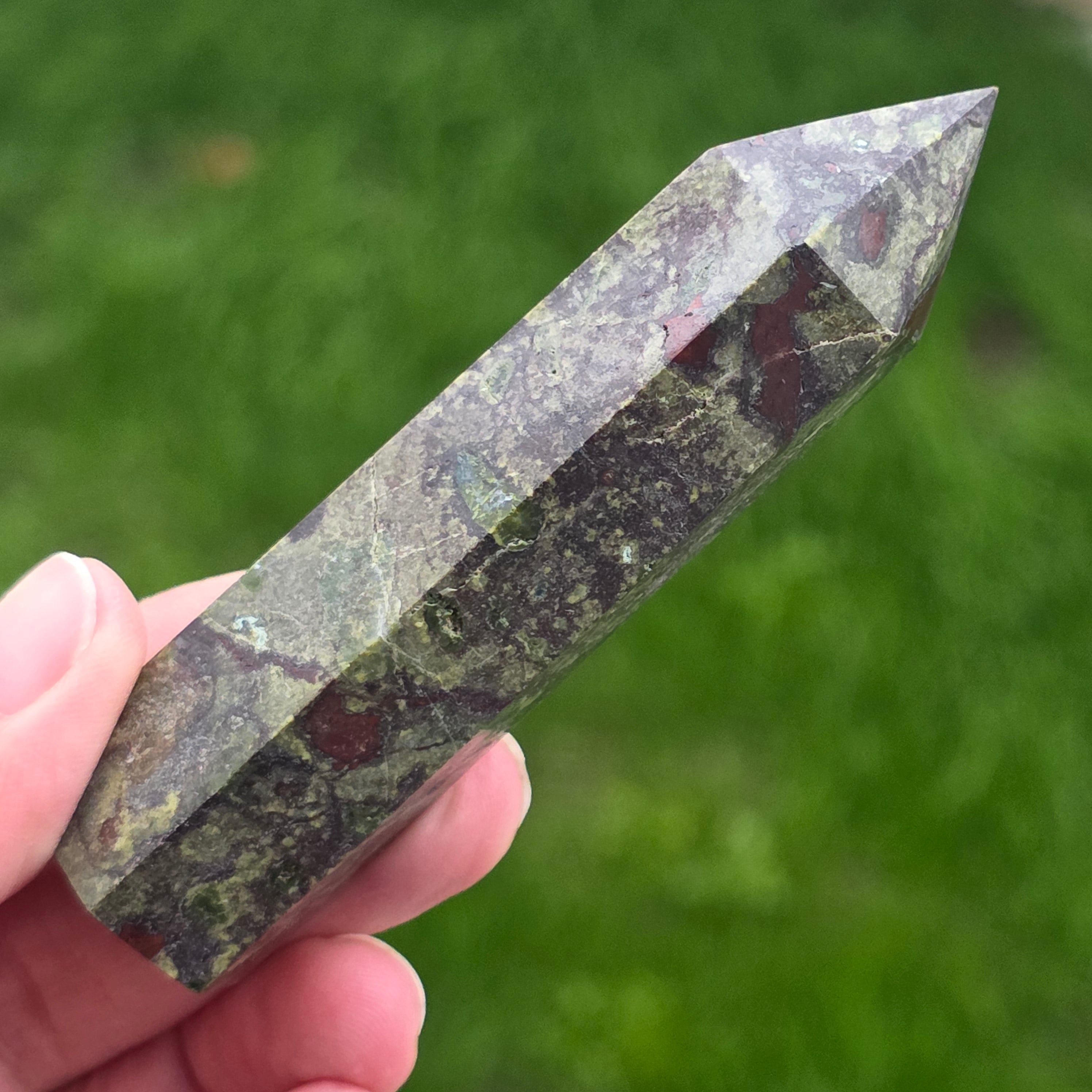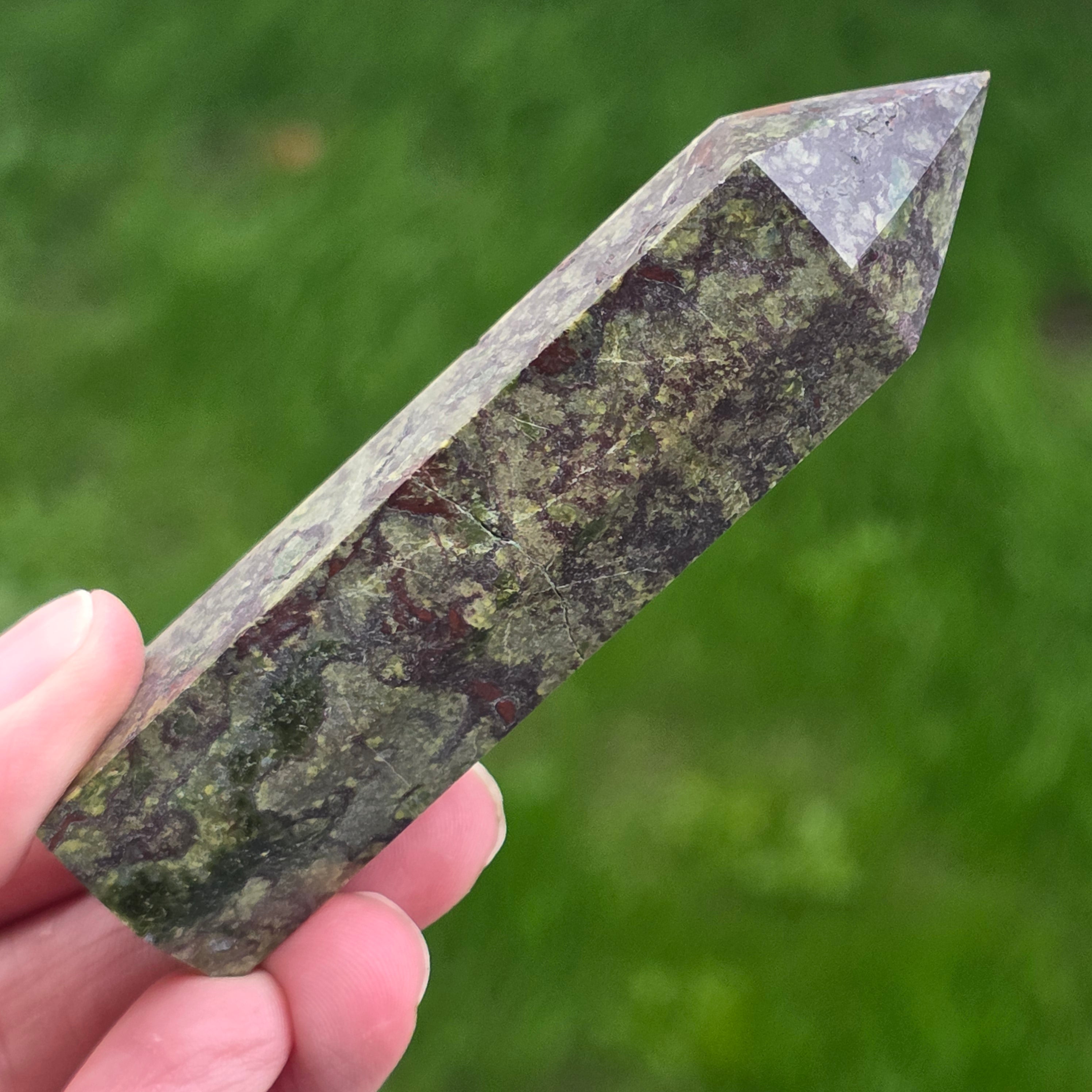 Mini obeliszk sárkányvér kő (epidót & piedmontit) m4
