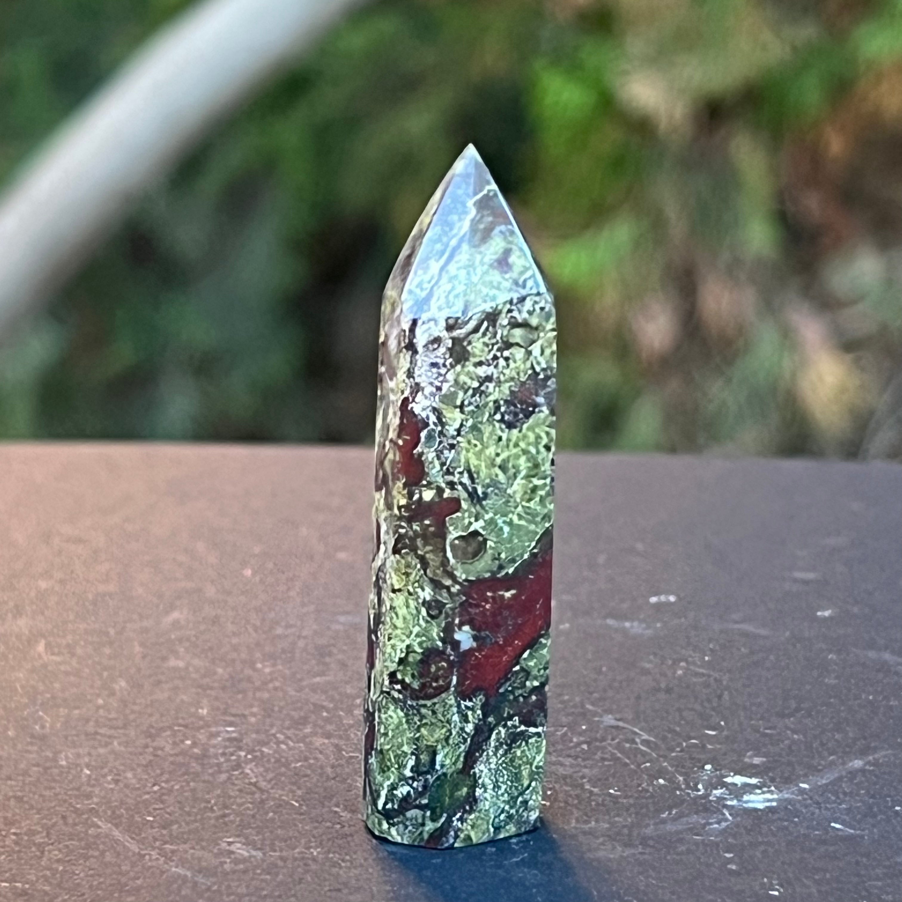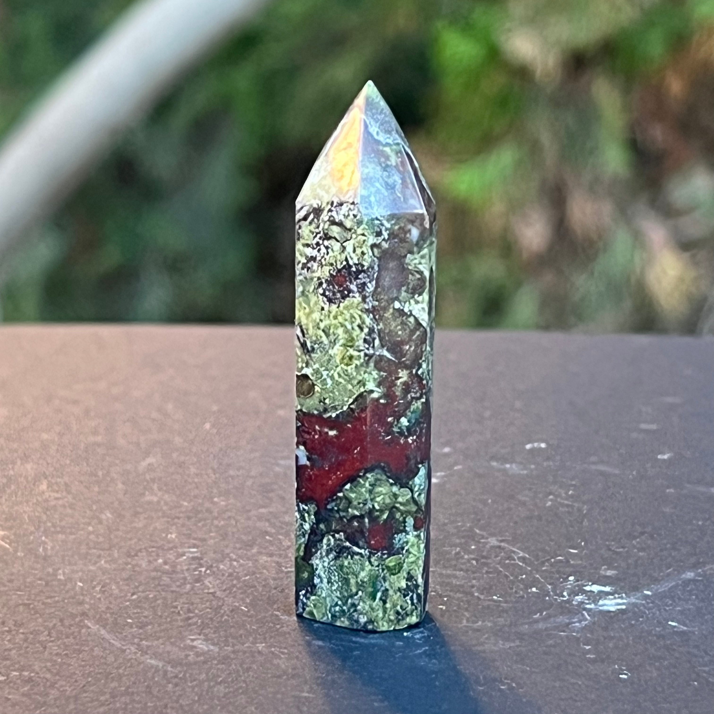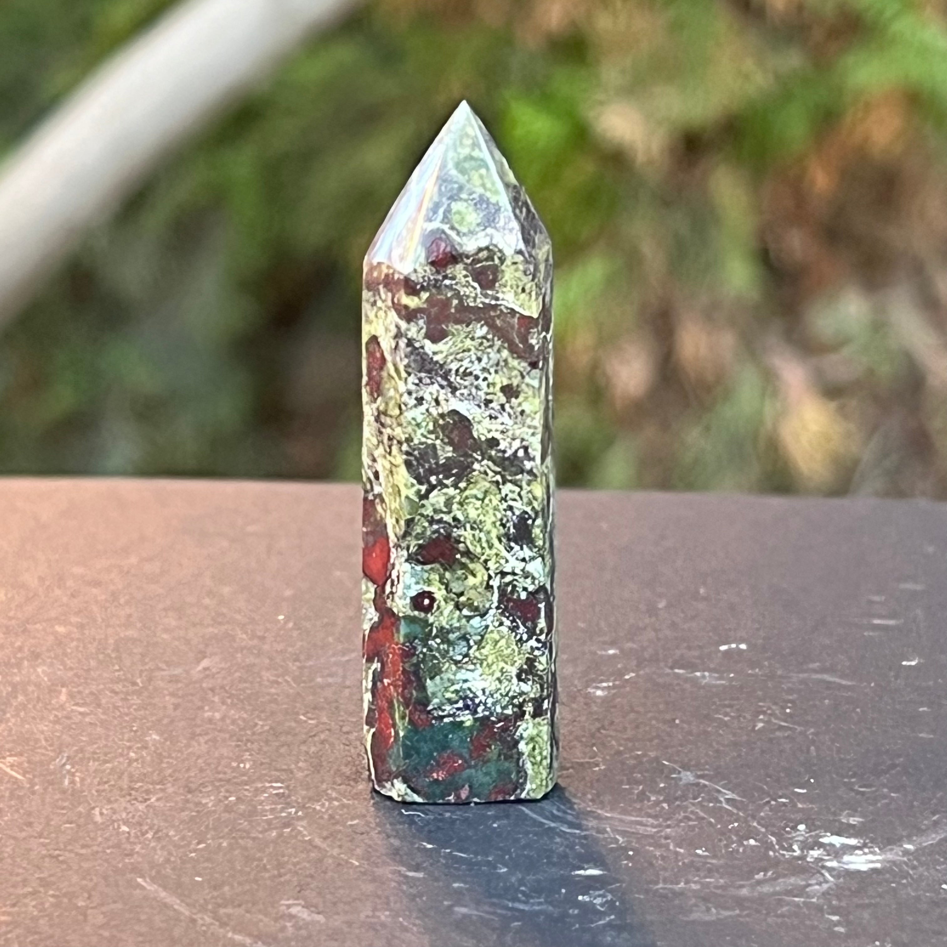 Mini obeliszk, sárkányvér kő (epidót & piedmontit) m8
