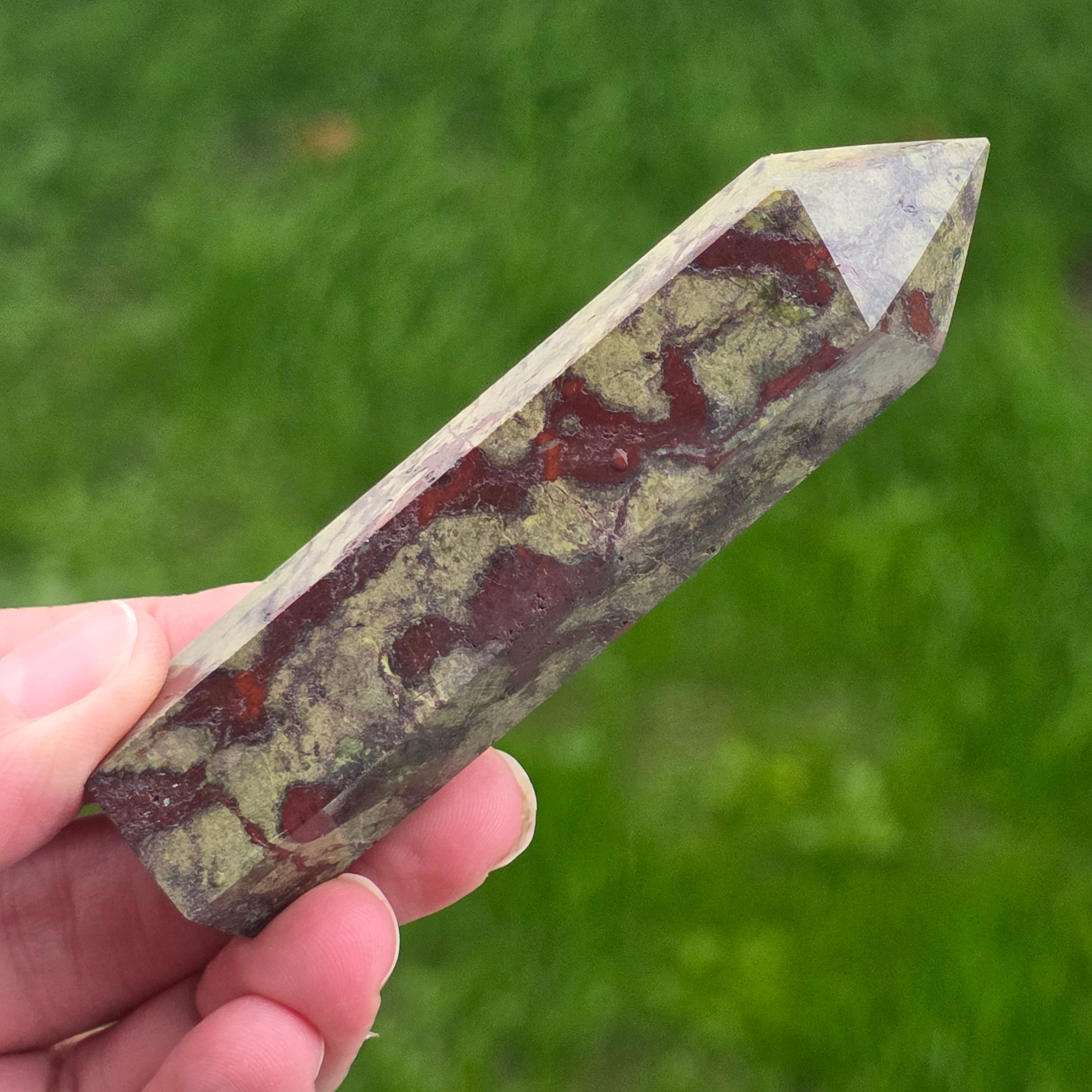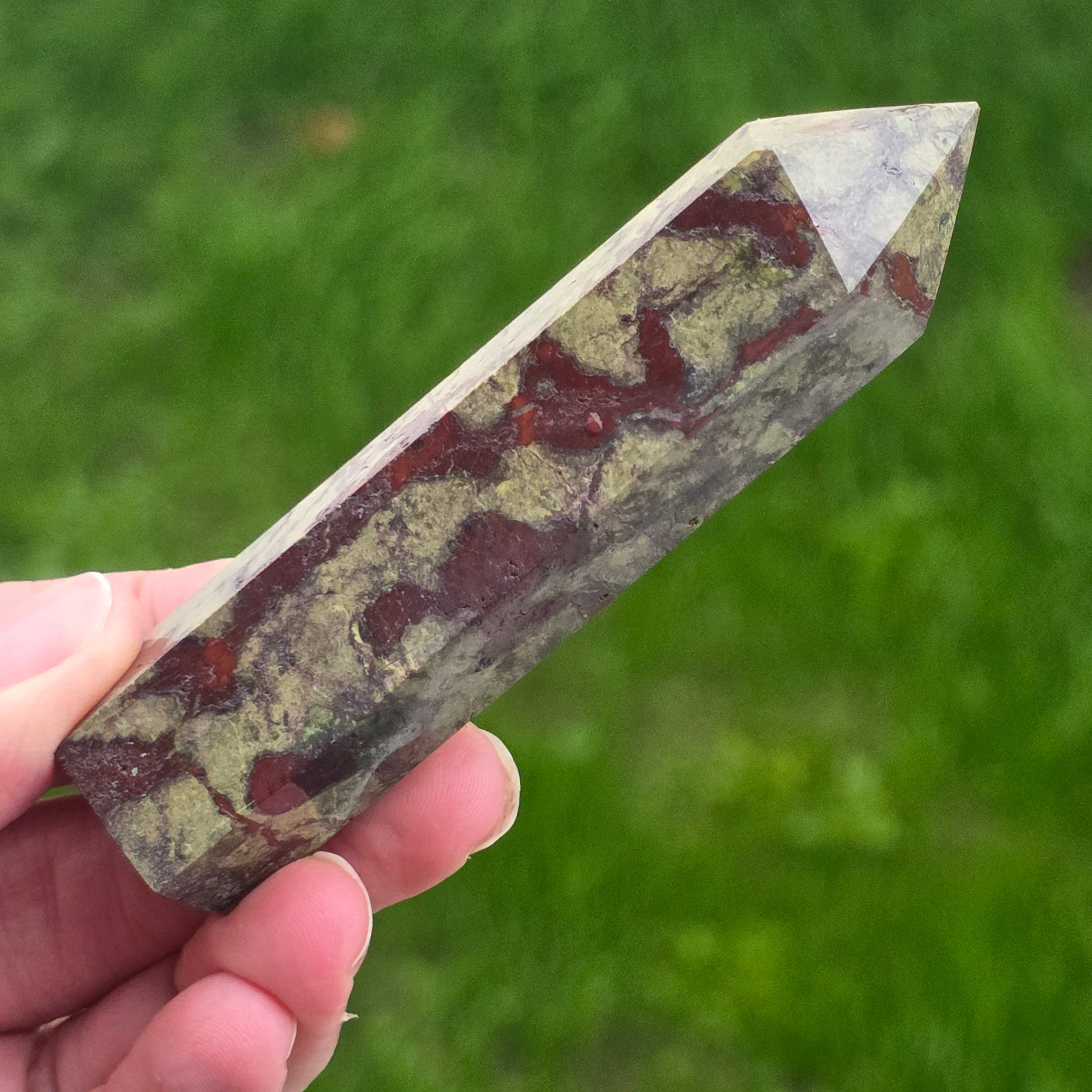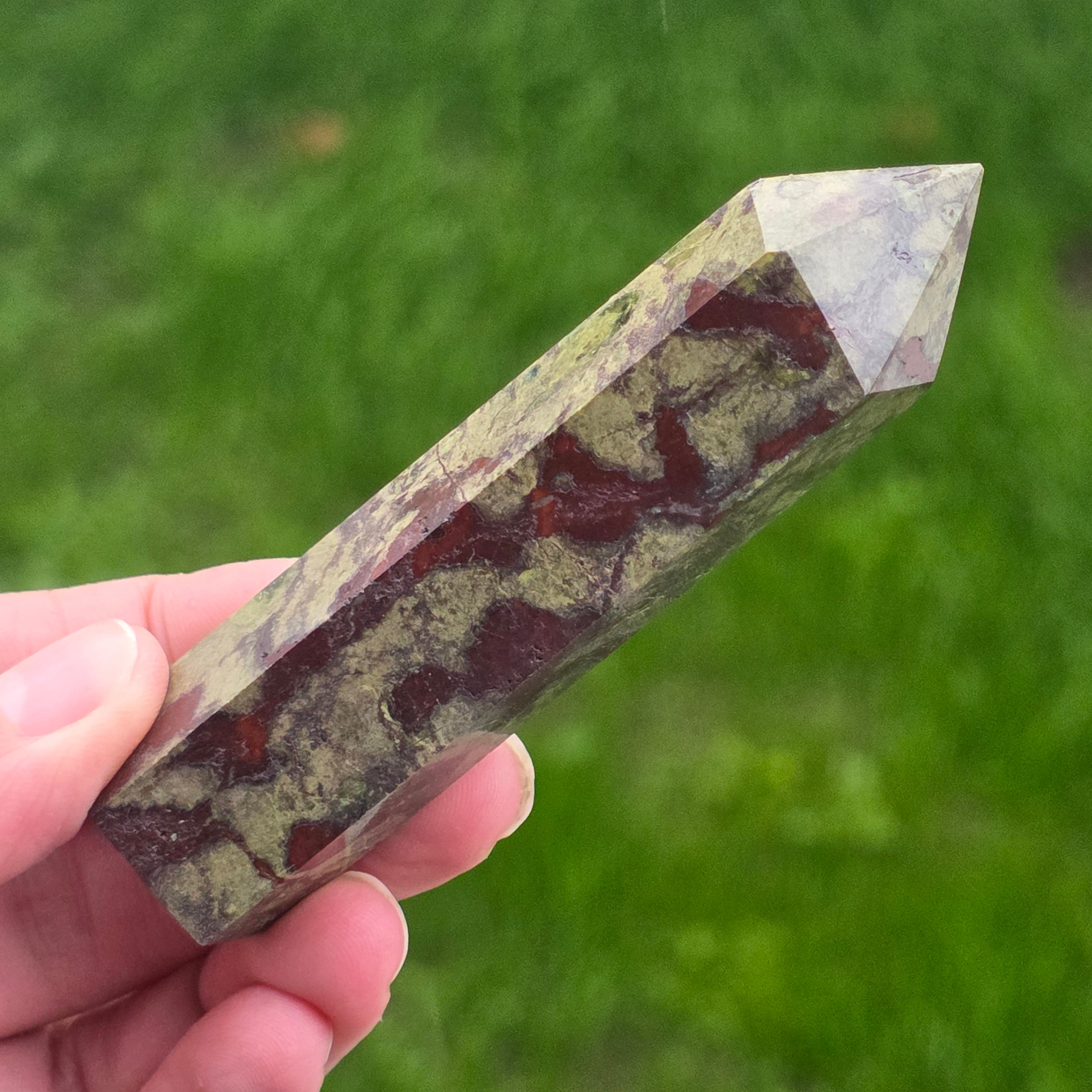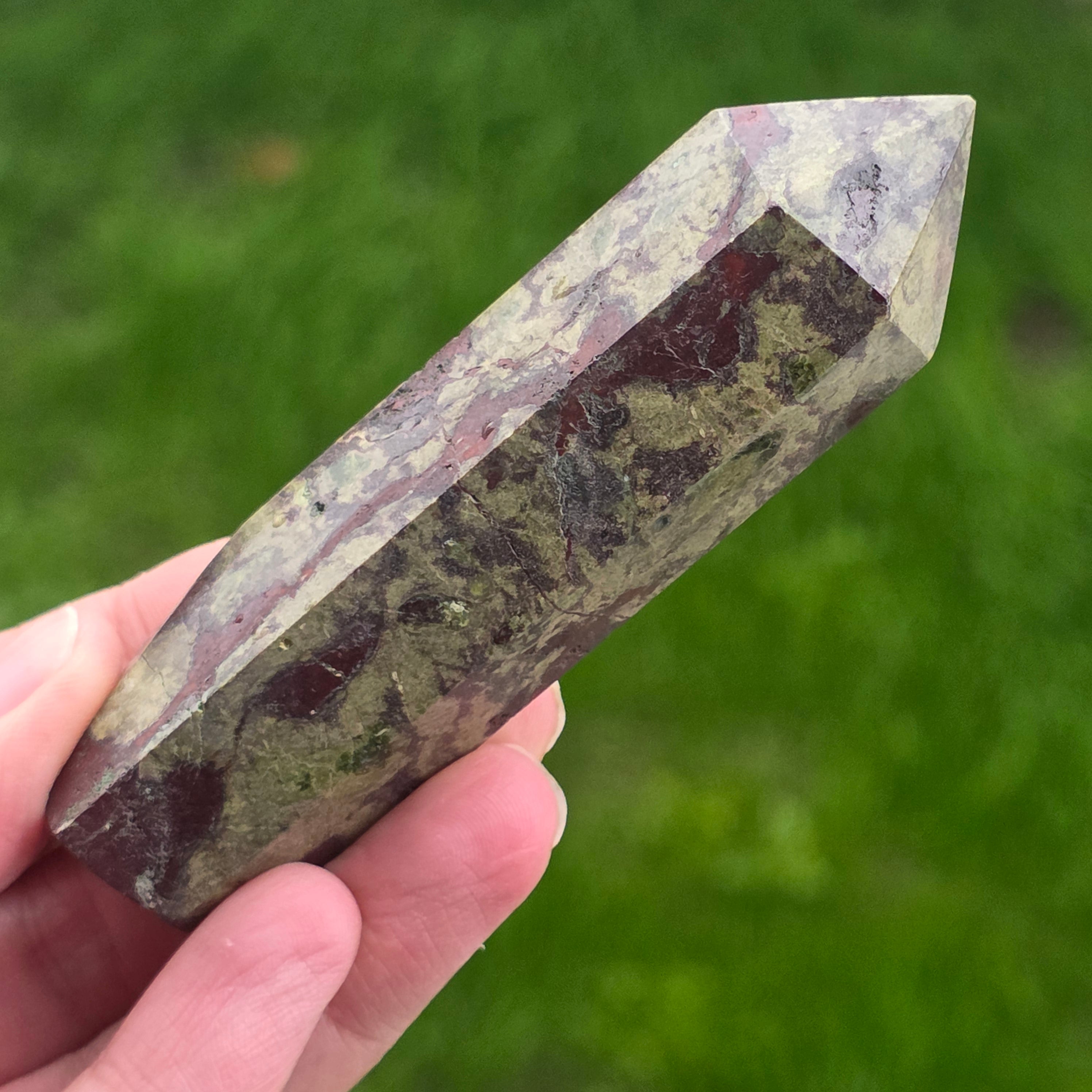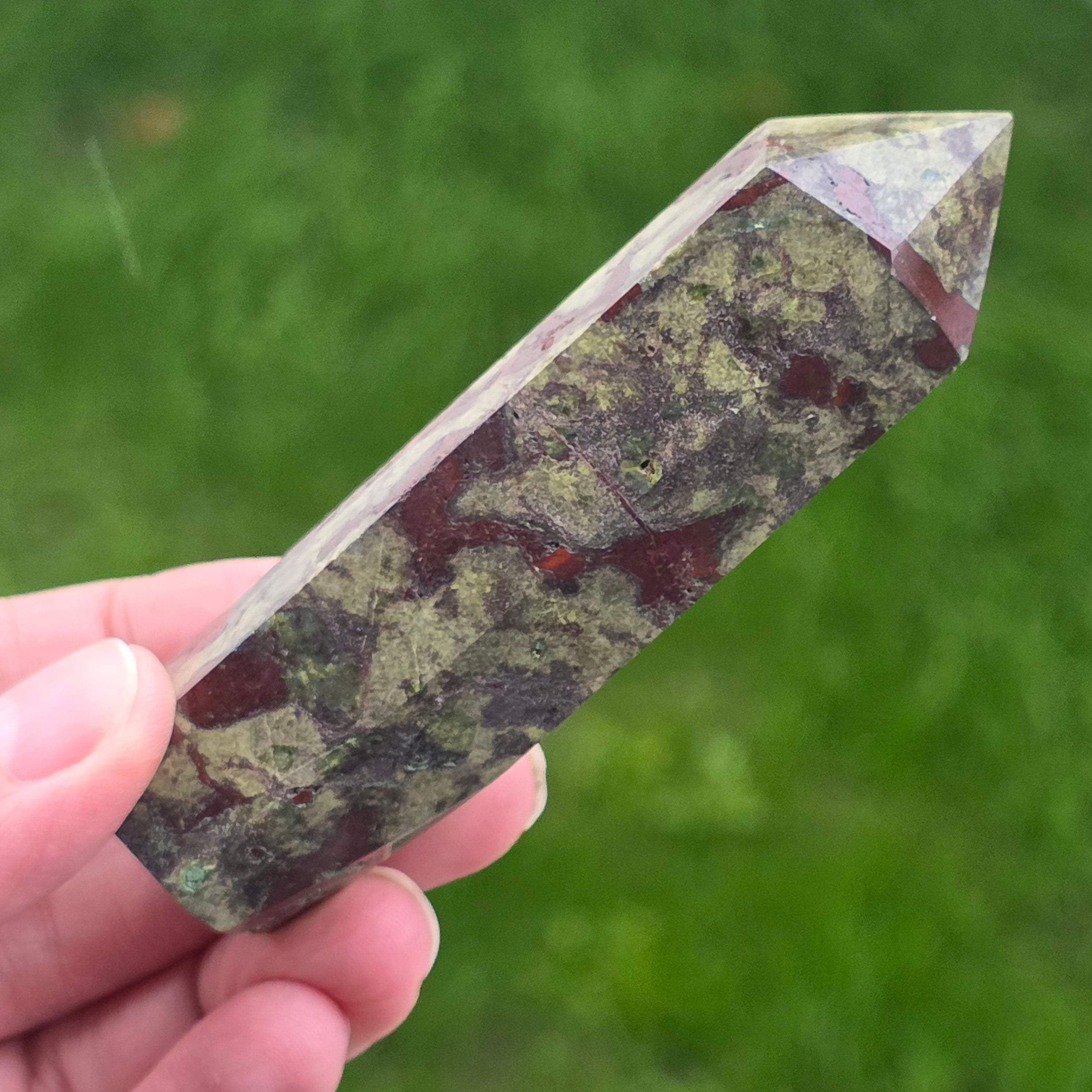 Mini obeliszk, sárkányvér kő (epidót & piemontit) | 13. modell