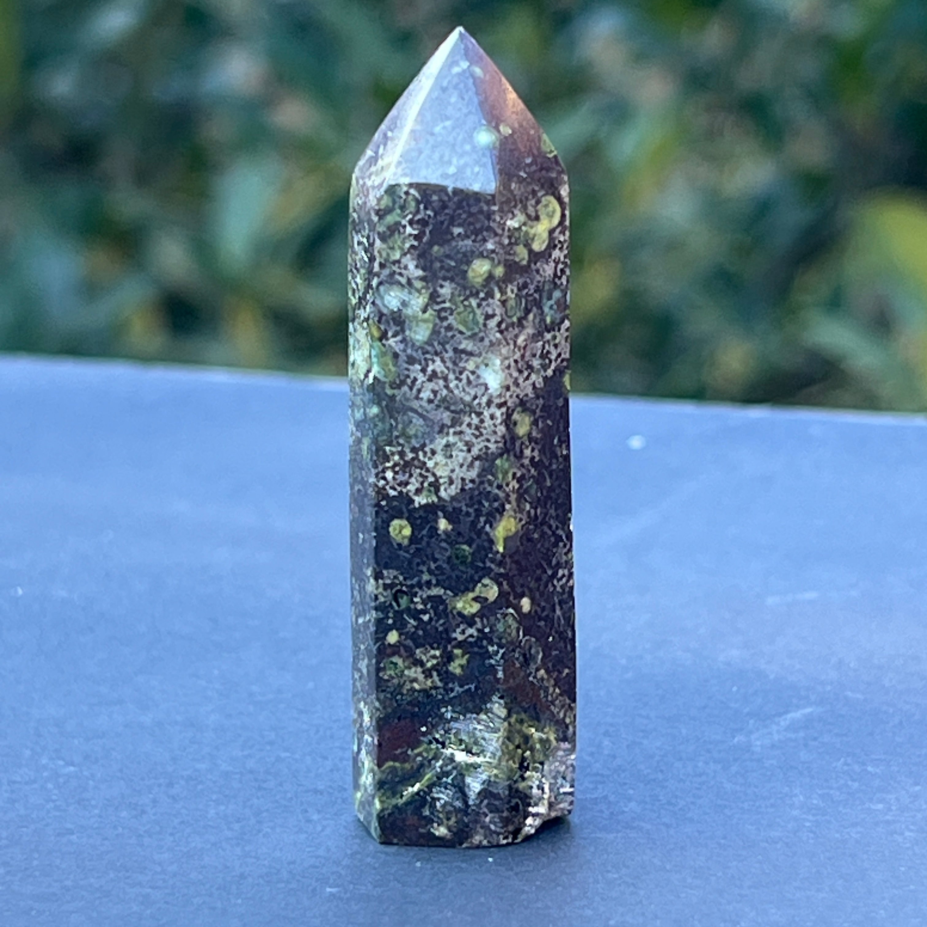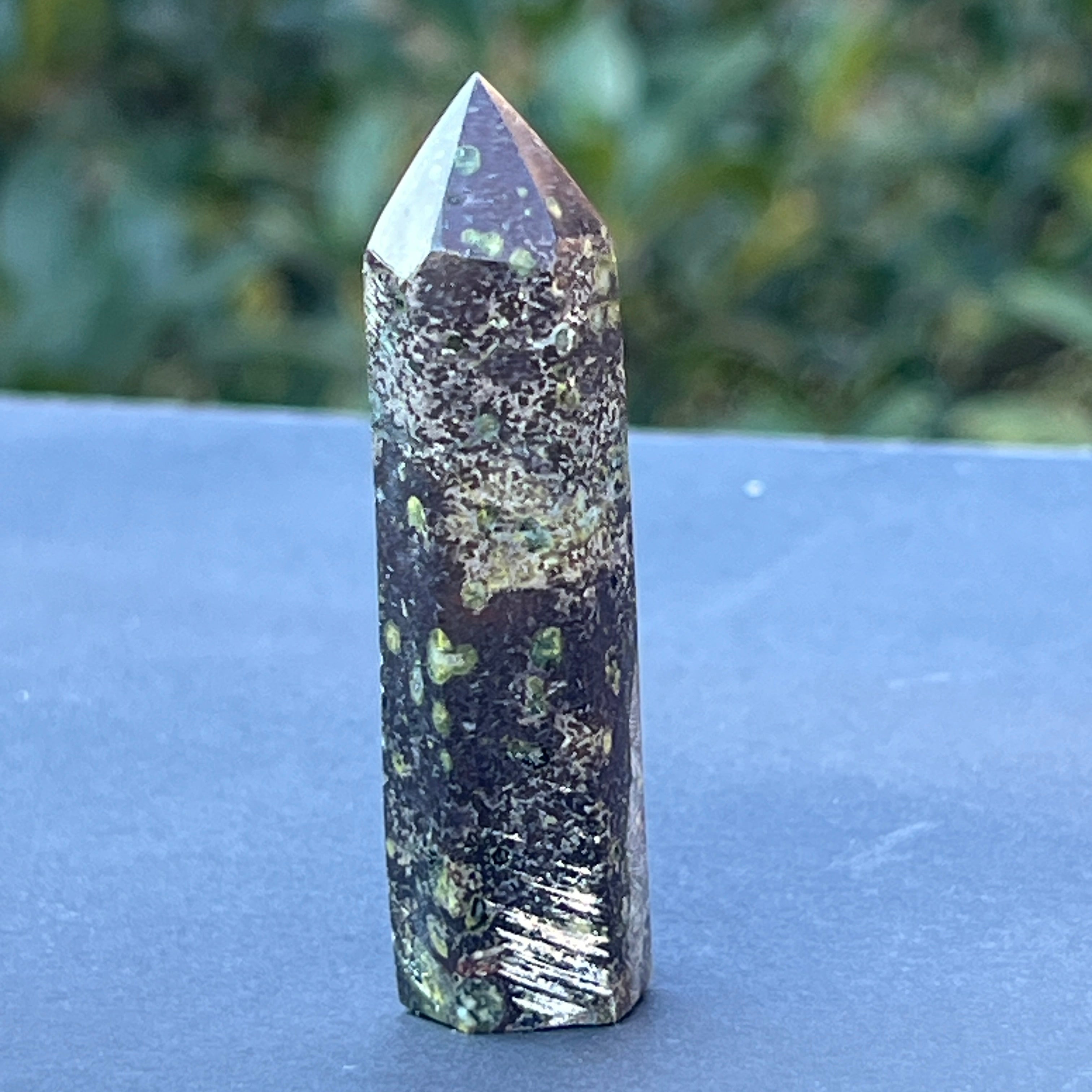 Mini obeliszk sárkányvér kőből (epidót & piedmontit) m2