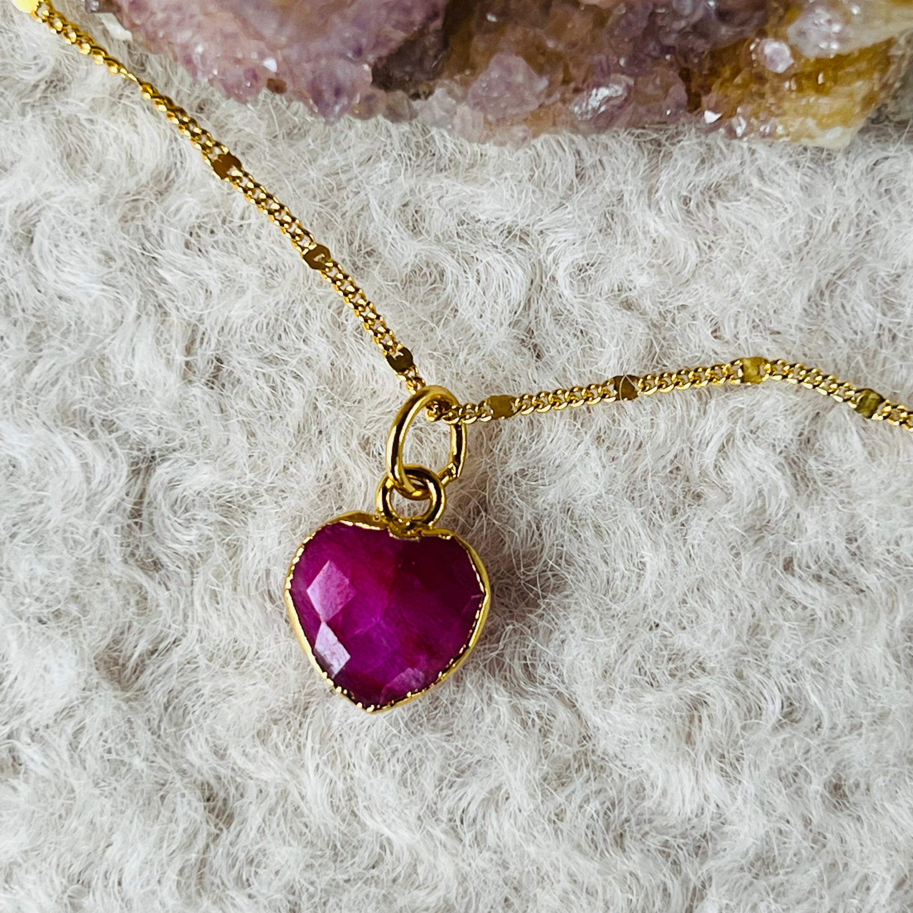 Mini rubin szív medál 1 cm, júliusi hónap köve, születési köv