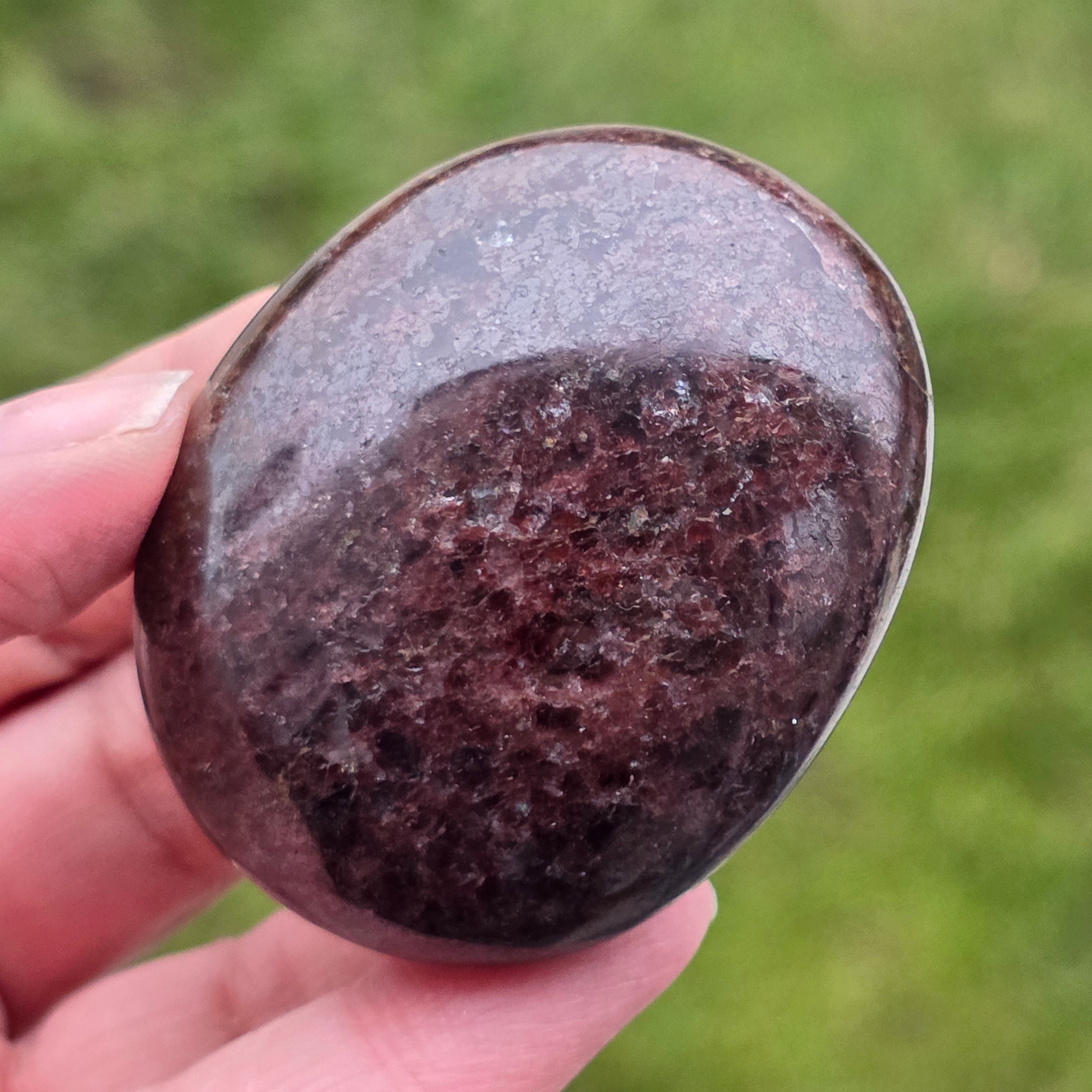 Ez a természetes gránát tenyérkő tökéletes a meditációhoz, az önvizsgálathoz, vagy egyszerűen csak, hogy a közelében tartsd azokat a pillanatokat, amikor rögzítésre és stabilitásra van szükséged. Mély energiája rezonál a gyökércsakrával, életerőt és védelmet hoz.