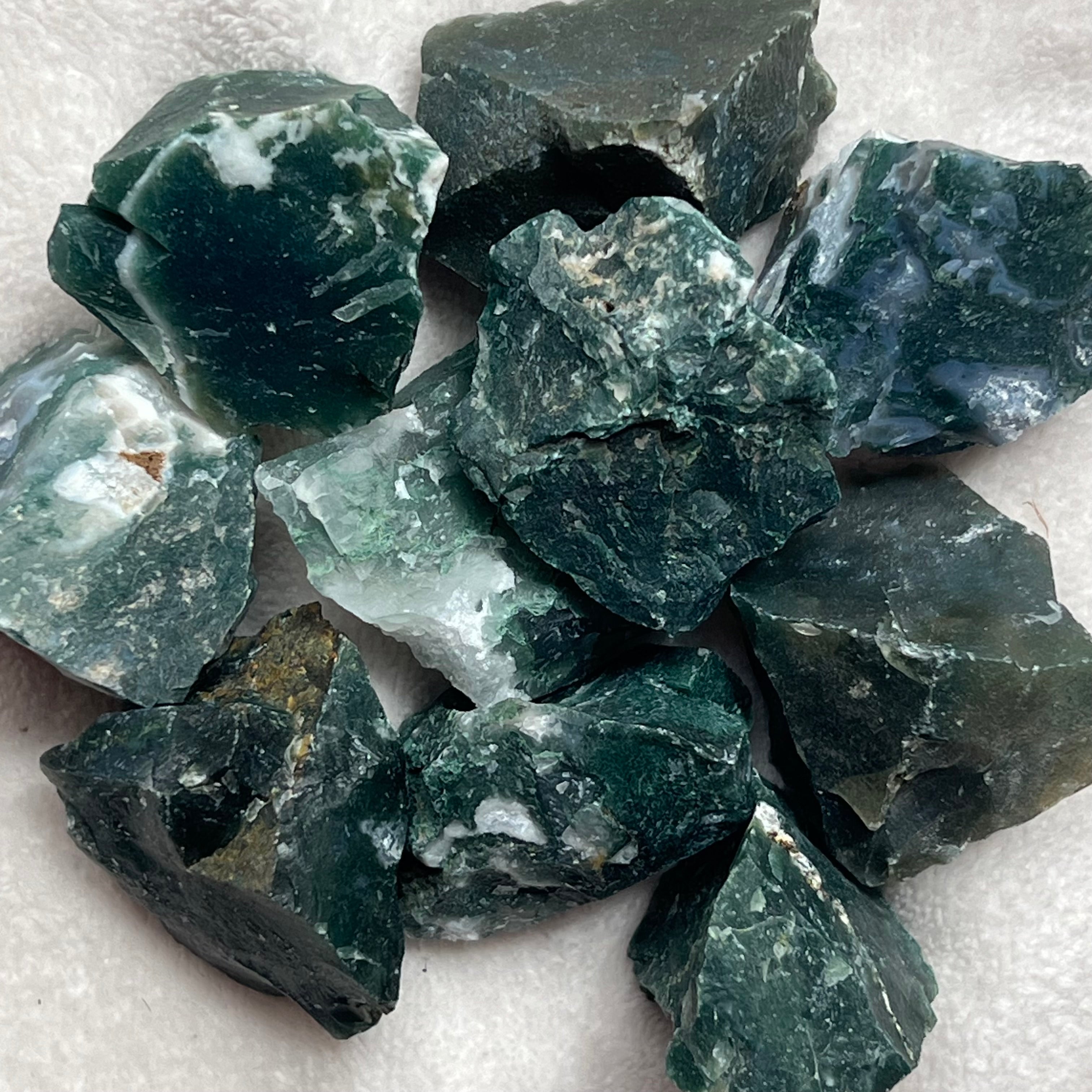 Úgy gondolják, hogy a moha/fa achát segít megerősíteni a kapcsolatot a Földdel. Segít abban, hogy felszínre hozzuk a gyermekkor örömét, és tudjunk élvezni az élet egyszerű dolgait.