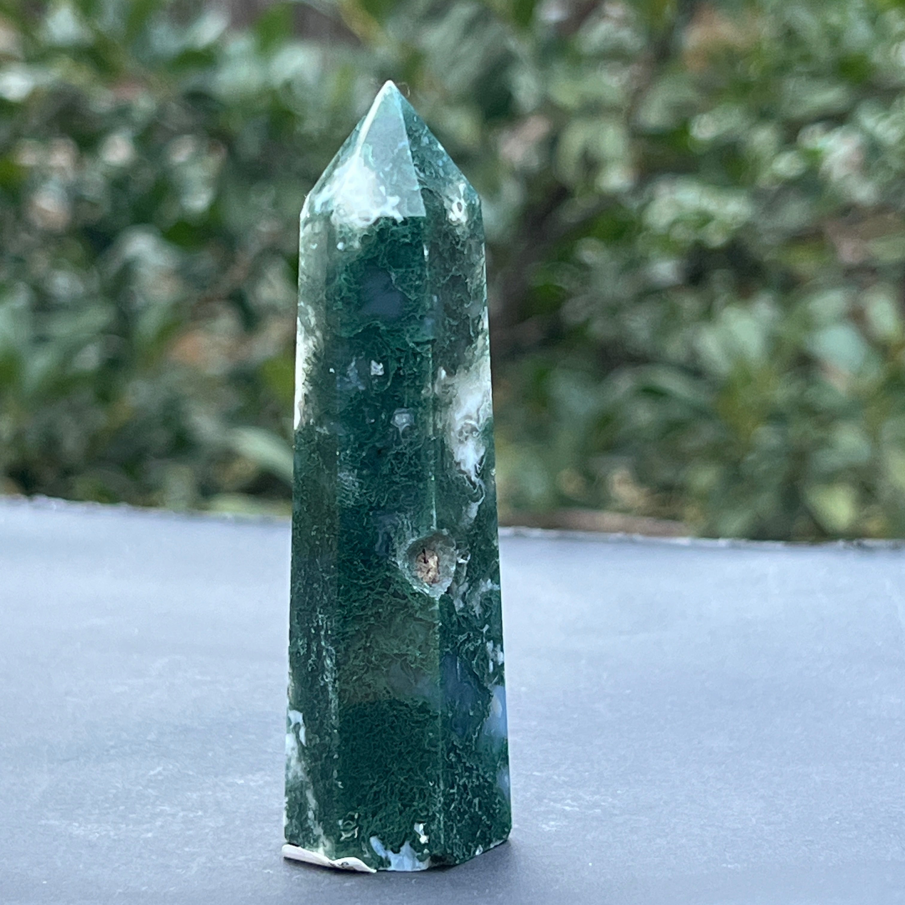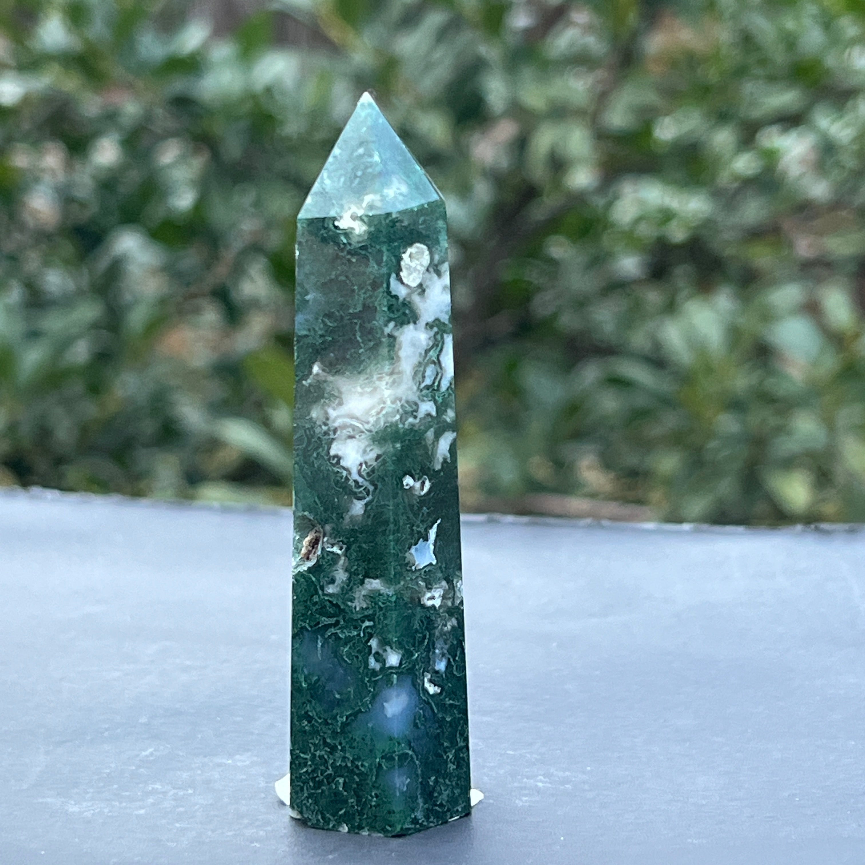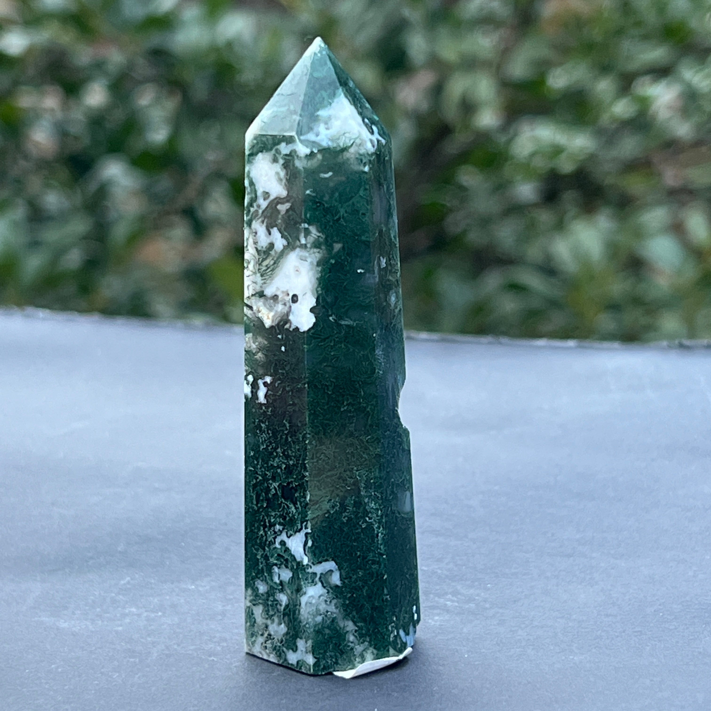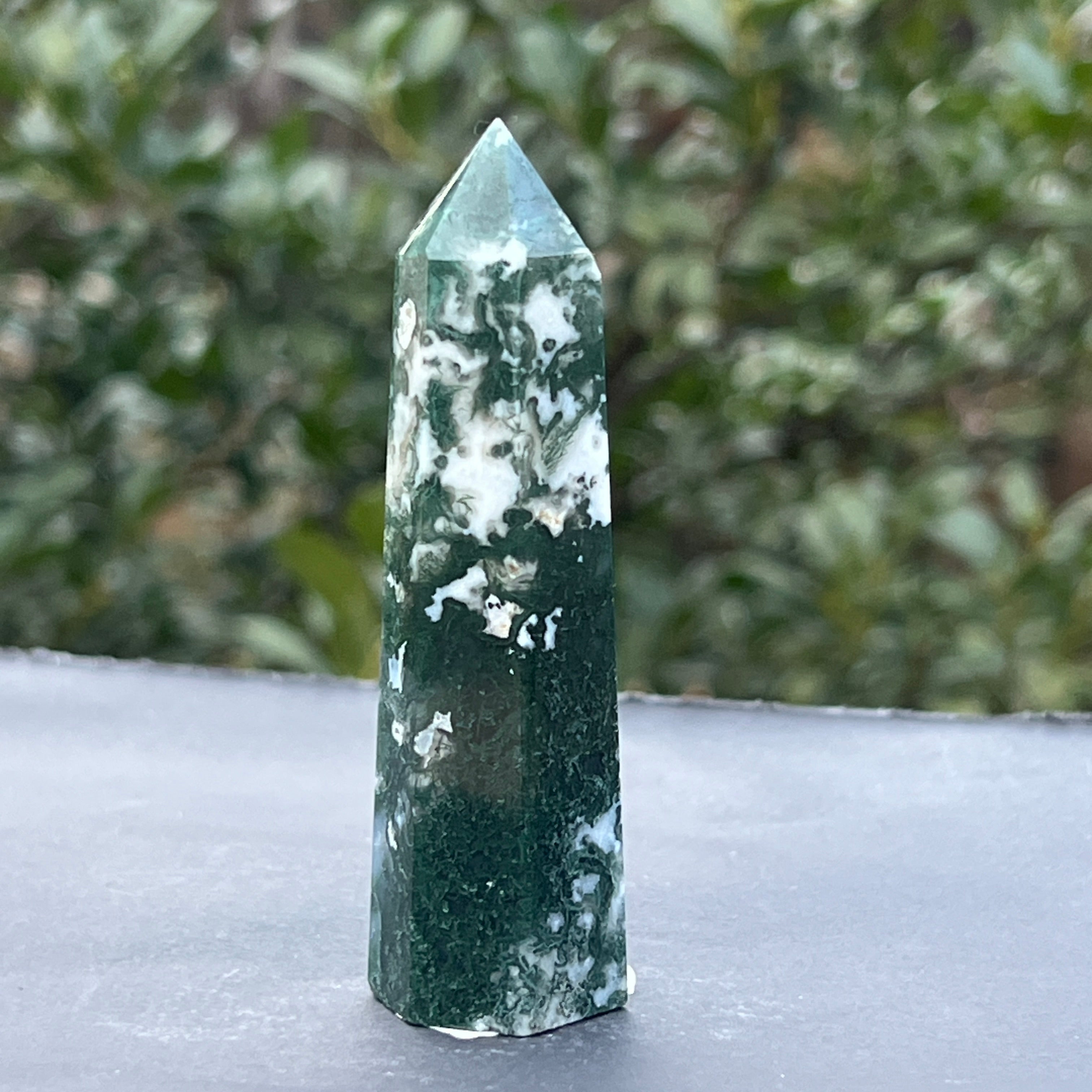 Úgy gondolják, hogy a moha/fa achát segít megerősíteni a kapcsolatot a Földdel. Segít abban, hogy felszínre hozzuk a gyermekkor örömét, és tudjunk élvezni az élet egyszerű dolgait.